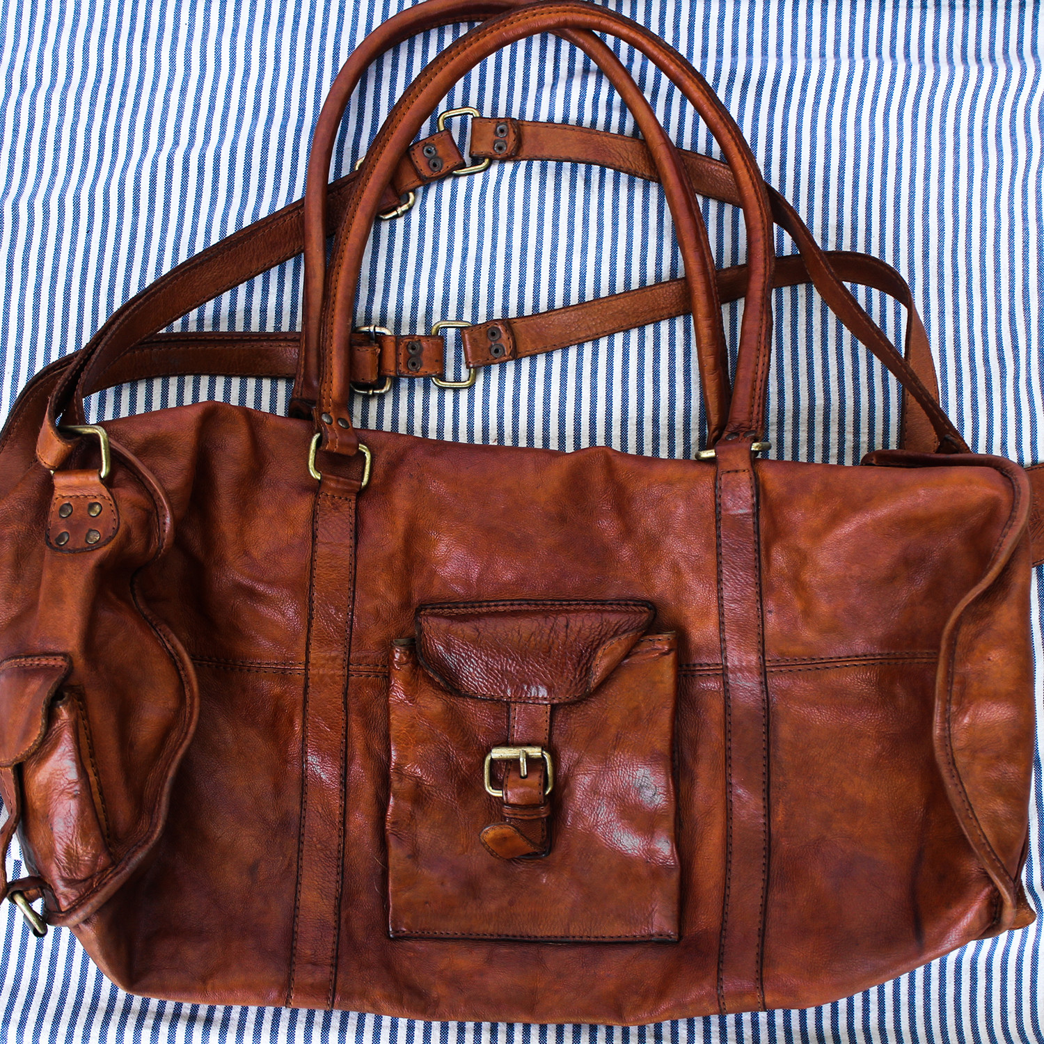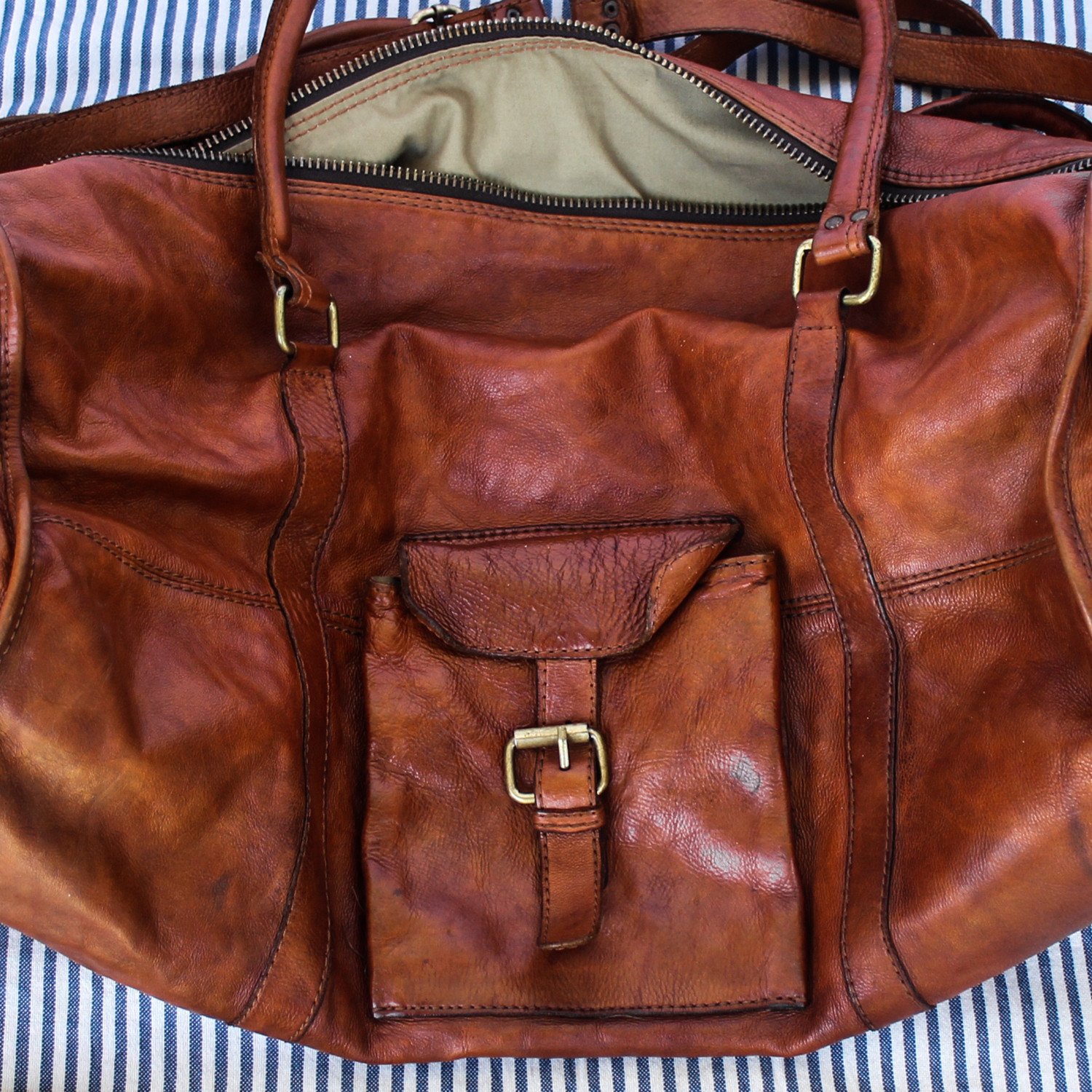 Gym, work trips, overseas deployment, whatever. This is Duffel is your new go-anywhere bag, large enough to fit quite a bit of gear in, but still sized to sneak past most airlines' carry-on restrictions. This bag is designed to be a story teller, so give it a story to tell. This aged brown edition has been stone washed and finished by hand.
