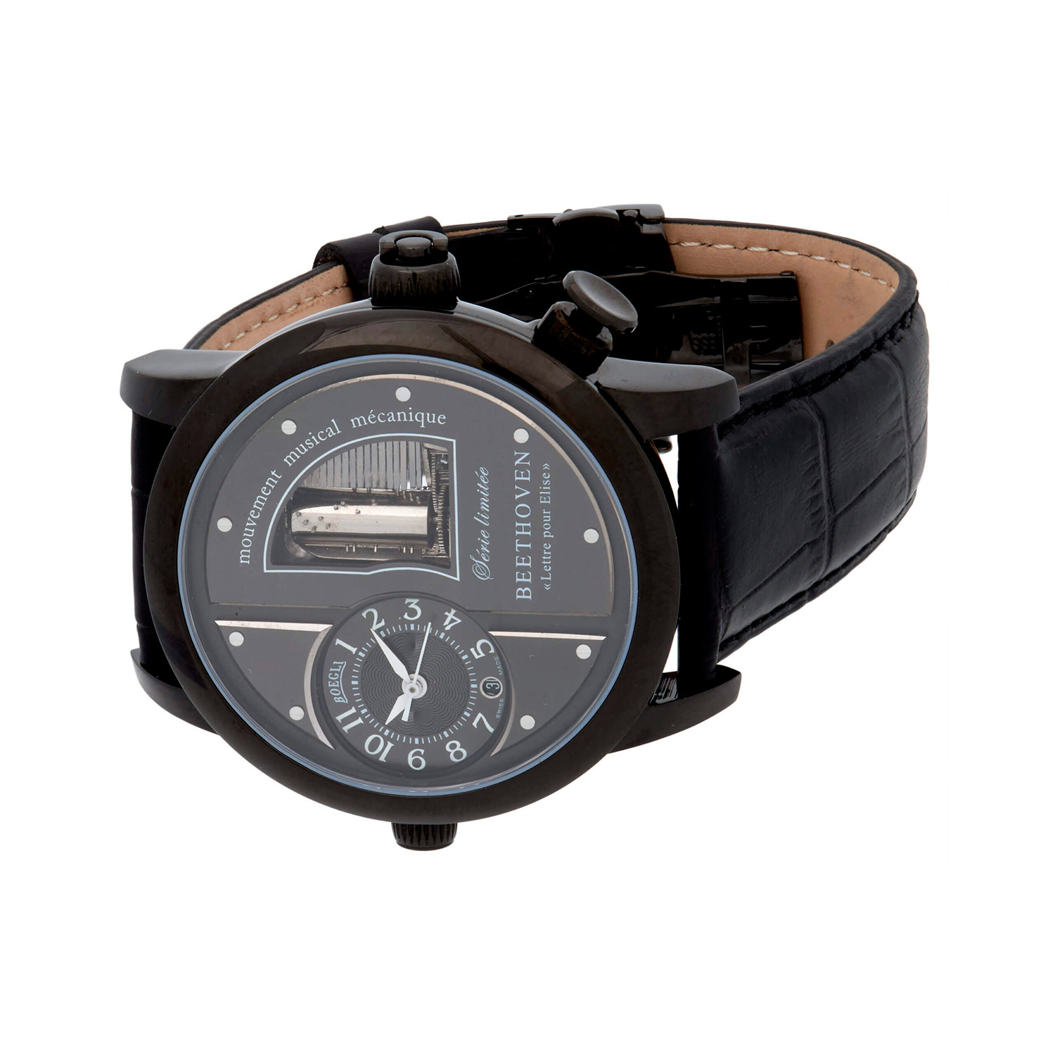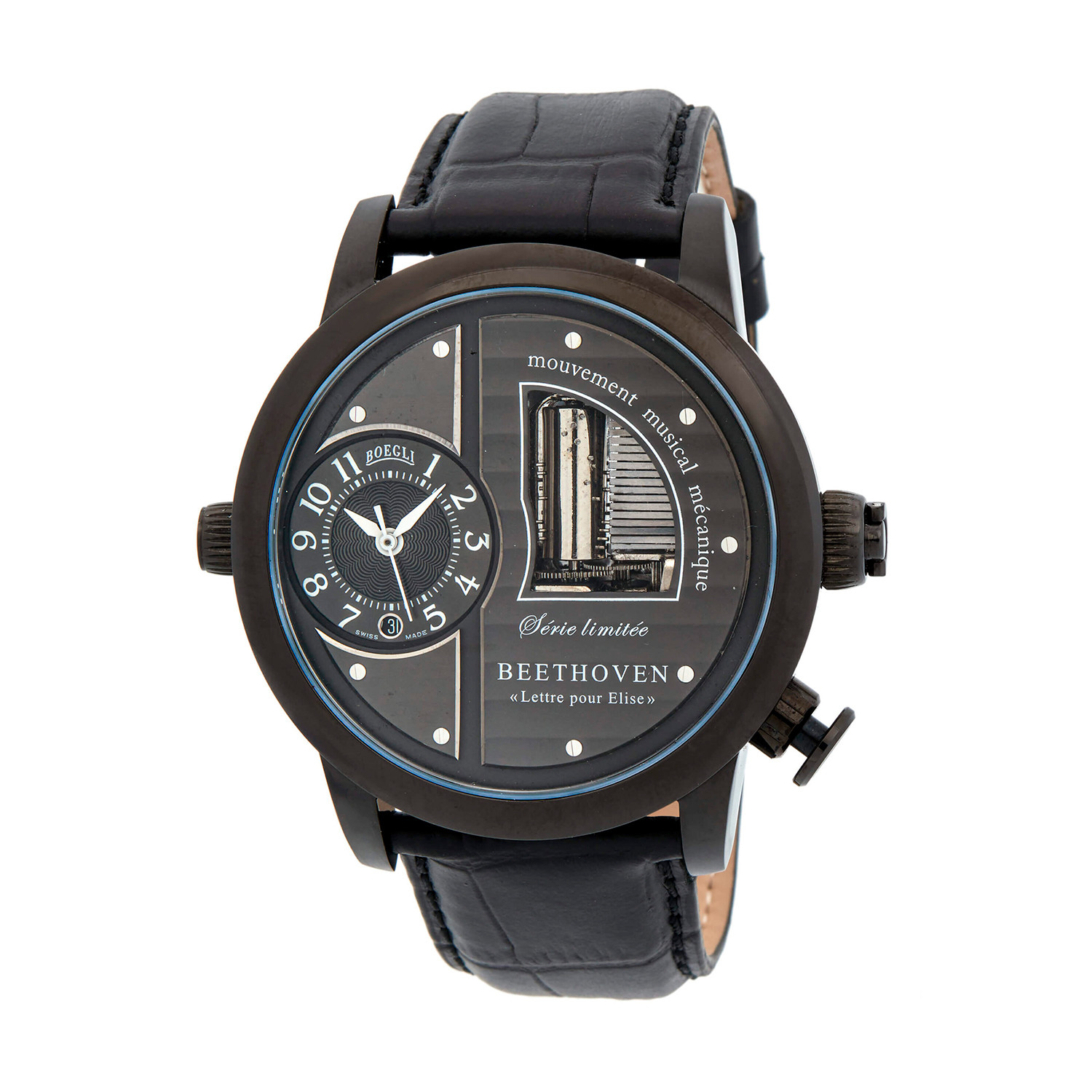 Boegli creates immaculate and classic timepieces with a twist. Each wrist watch and pocket watch in this collection contains a mechanical musical movement that plays selections from several of the most iconic pieces of classical music.