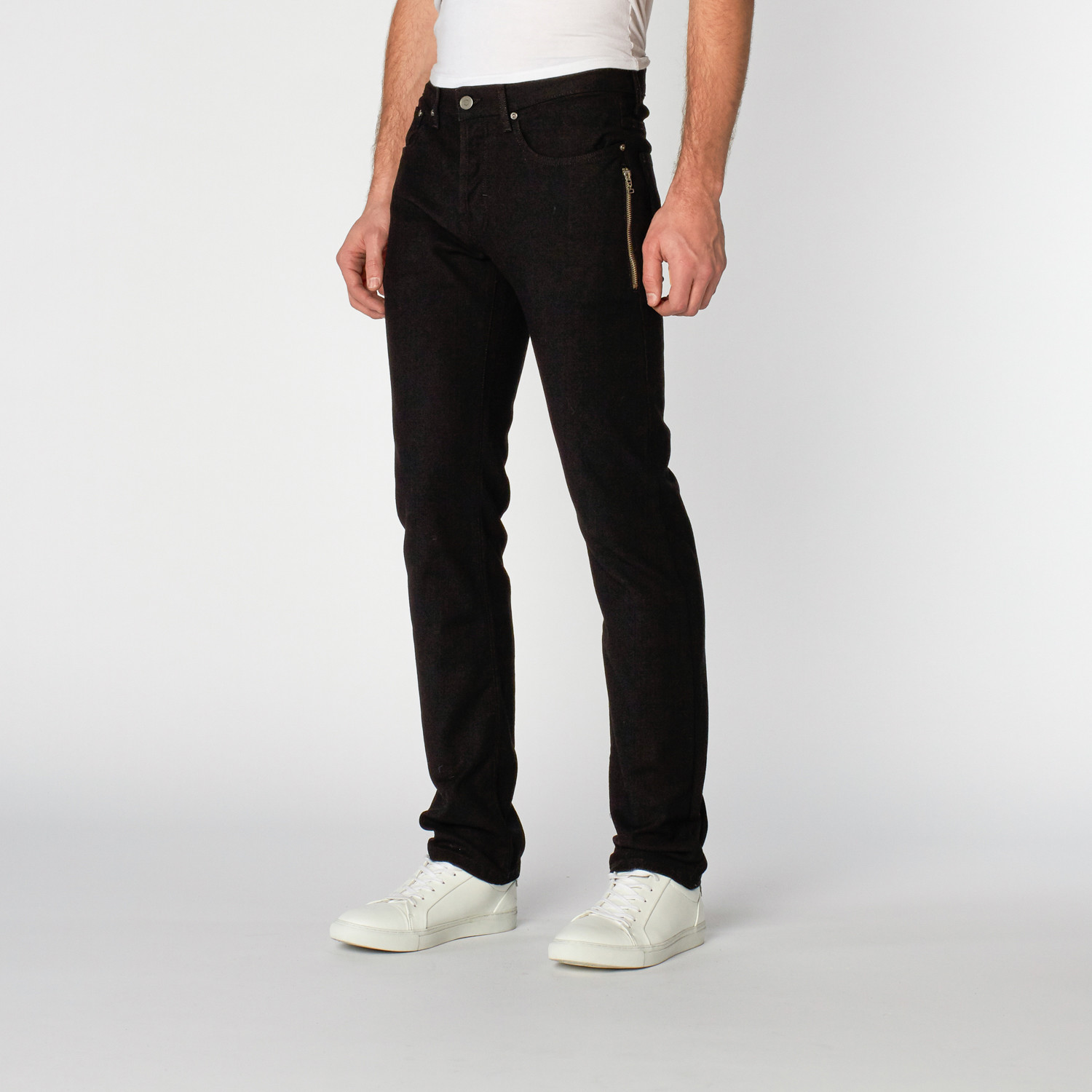 This premium 5-pocket denim features a clean, non-distressed finish for an elevated casual look perfect for work and play. This style is custom tailored for guys with a medium build.