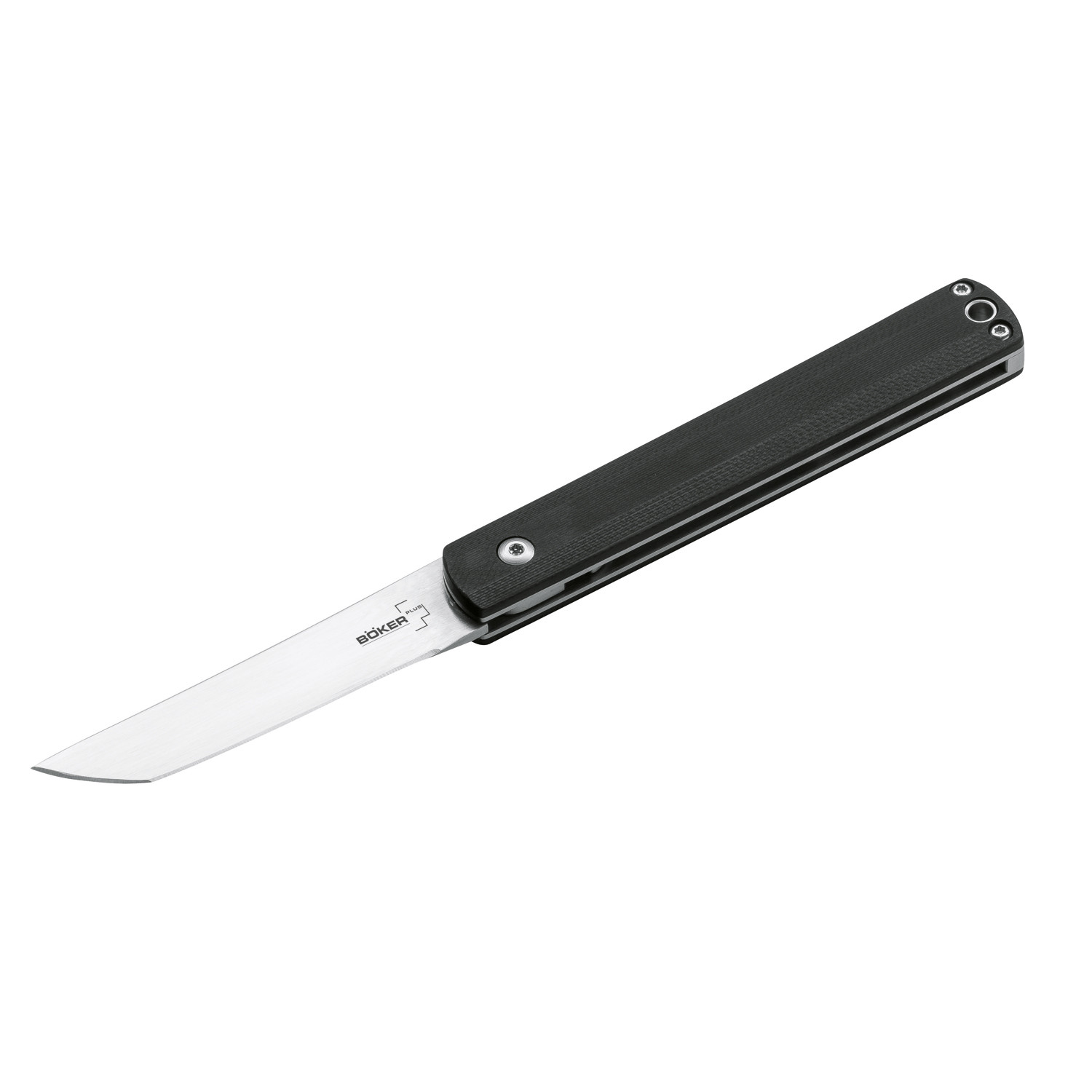 The slender build and lightweight construction of the Boker Wasabi complement the straightforward design and classic Japanese blade to make an elegant everyday knife. The blade opens with ball bearings and a front flipper, and is kept open as a slipjoint with a detent ball.