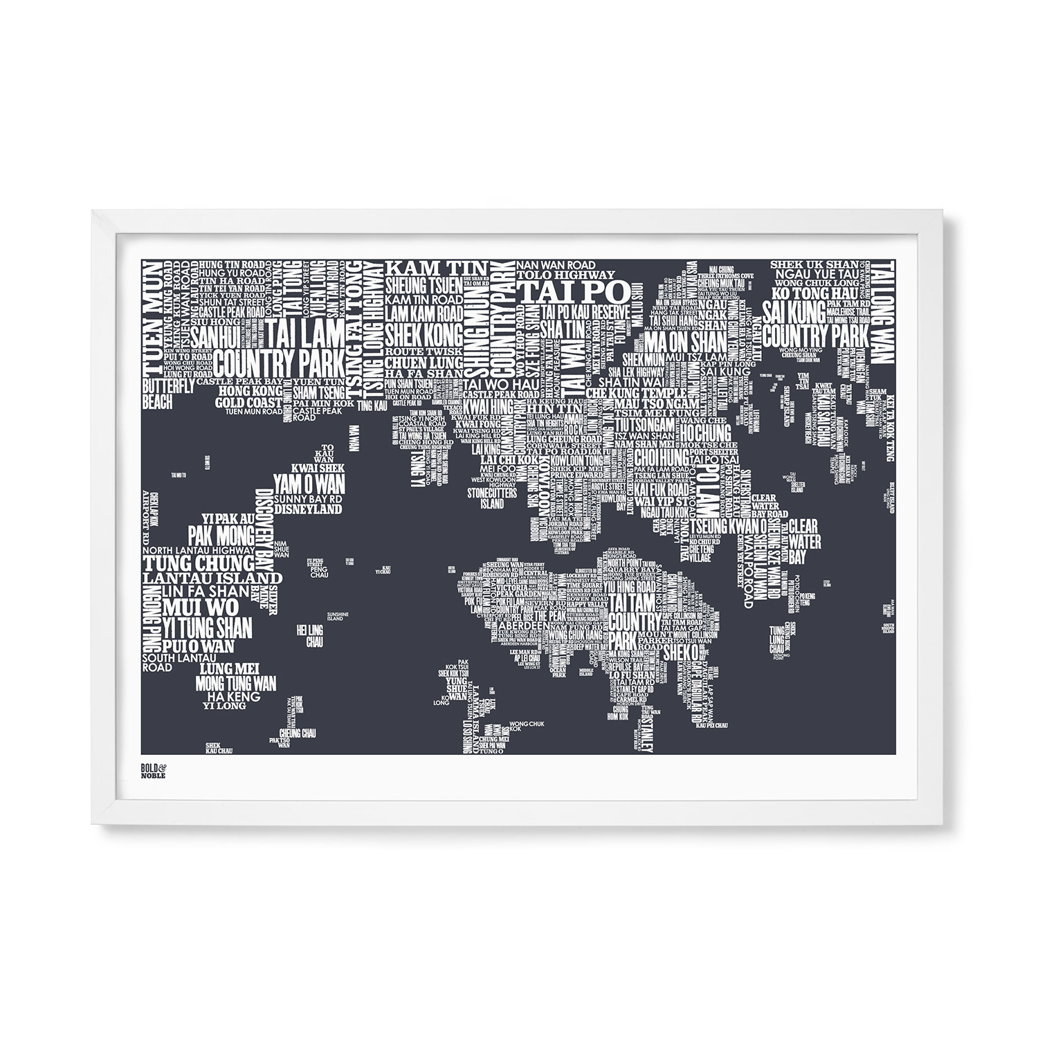 Explore Hong Kong from the air with this Hong Kong Typography Map. This print is silk screen printed in Hertfordshire, using a traditional method resulting in unsurpassed ink density. All its inks are hand-mixed, they may vary slightly from one print to the next. The end result is a silk screen piece of perfection.