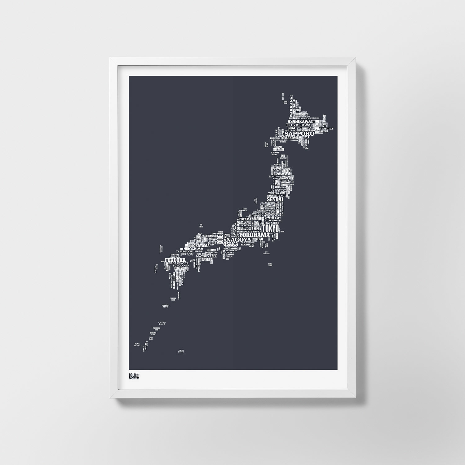 Explore Japan from the air with this Japan Typography Map. This print is silk screen printed in Hertfordshire, using a traditional method resulting in unsurpassed ink density. All its inks are hand-mixed, they may vary slightly from one print to the next. The end result is a silk screen piece of perfection.