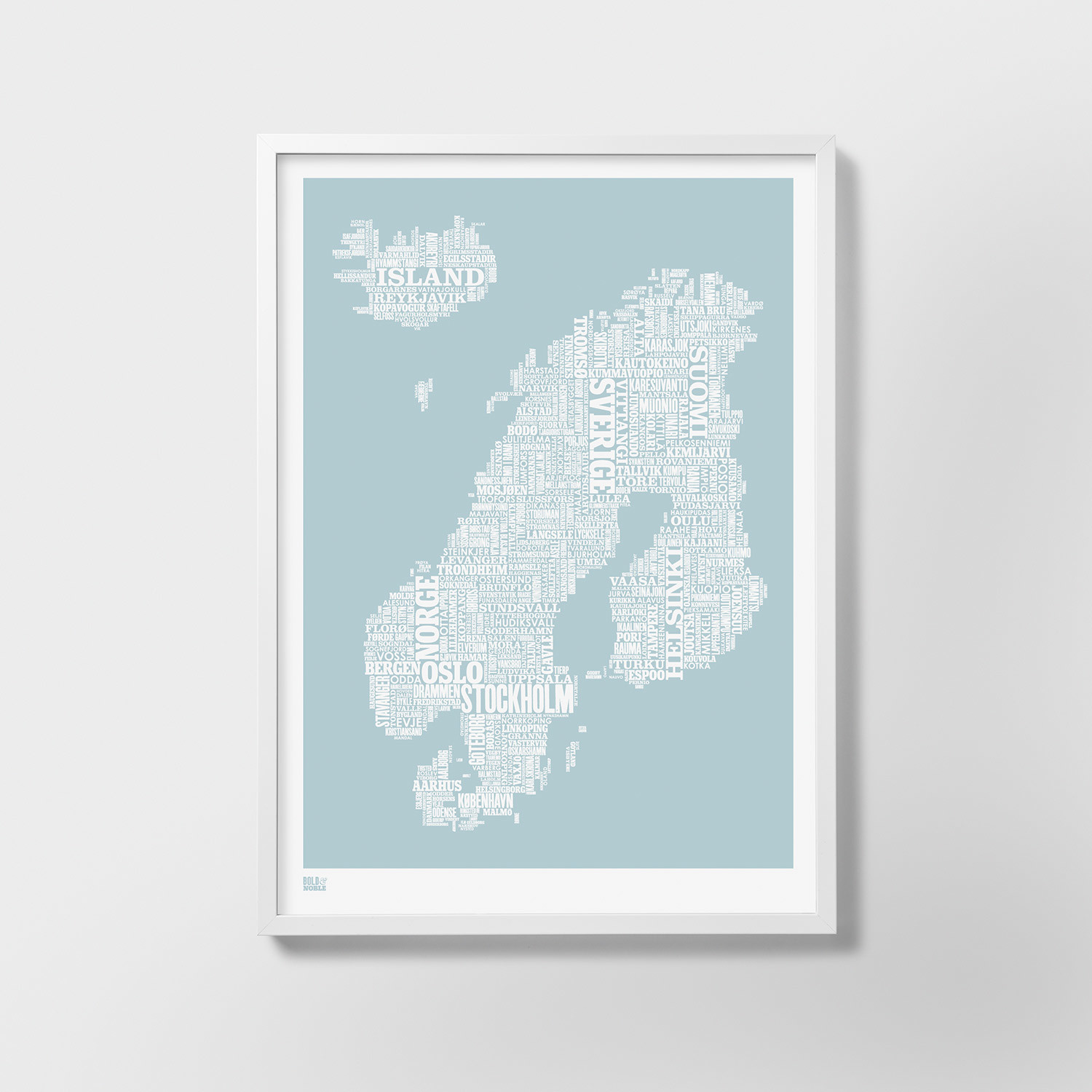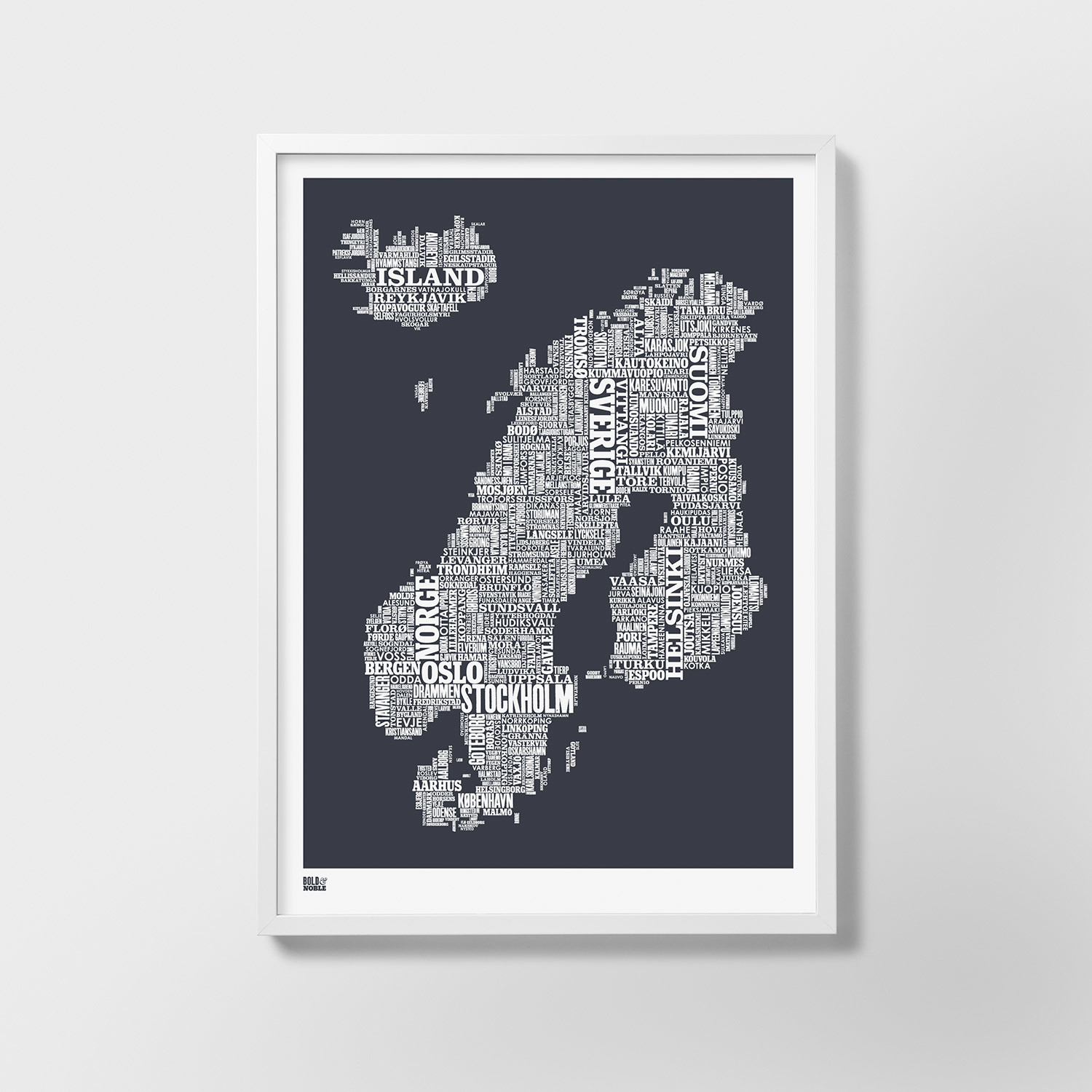 Explore Nordic Europe from the air with this Nordic Europe Typography Map. This print is silk screen printed in Hertfordshire, using a traditional method resulting in unsurpassed ink density. All its inks are hand-mixed, they may vary slightly from one print to the next. The end result is a silk screen piece of perfection.