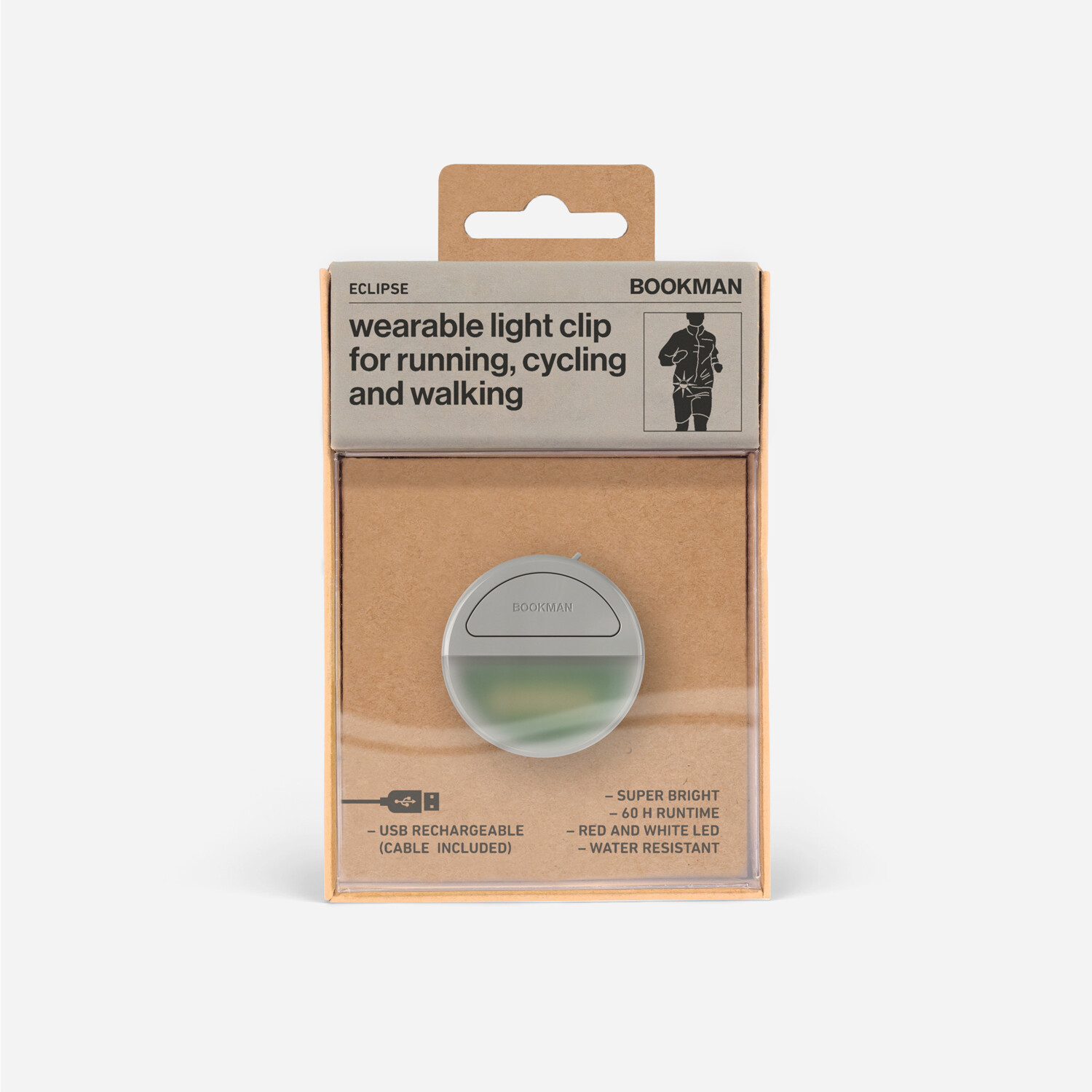 The Eclipse is a rechargeable and powerful wearable light clip for visibility and safety in traffic during urban outdoor activities such as running, cycling, or walking. Eclipse clips on securely to your jacket, jersey, baby stroller, or bag. Every light is equipped with both white and red LEDs so you can switch between white light for front mount or red light for rear mount.