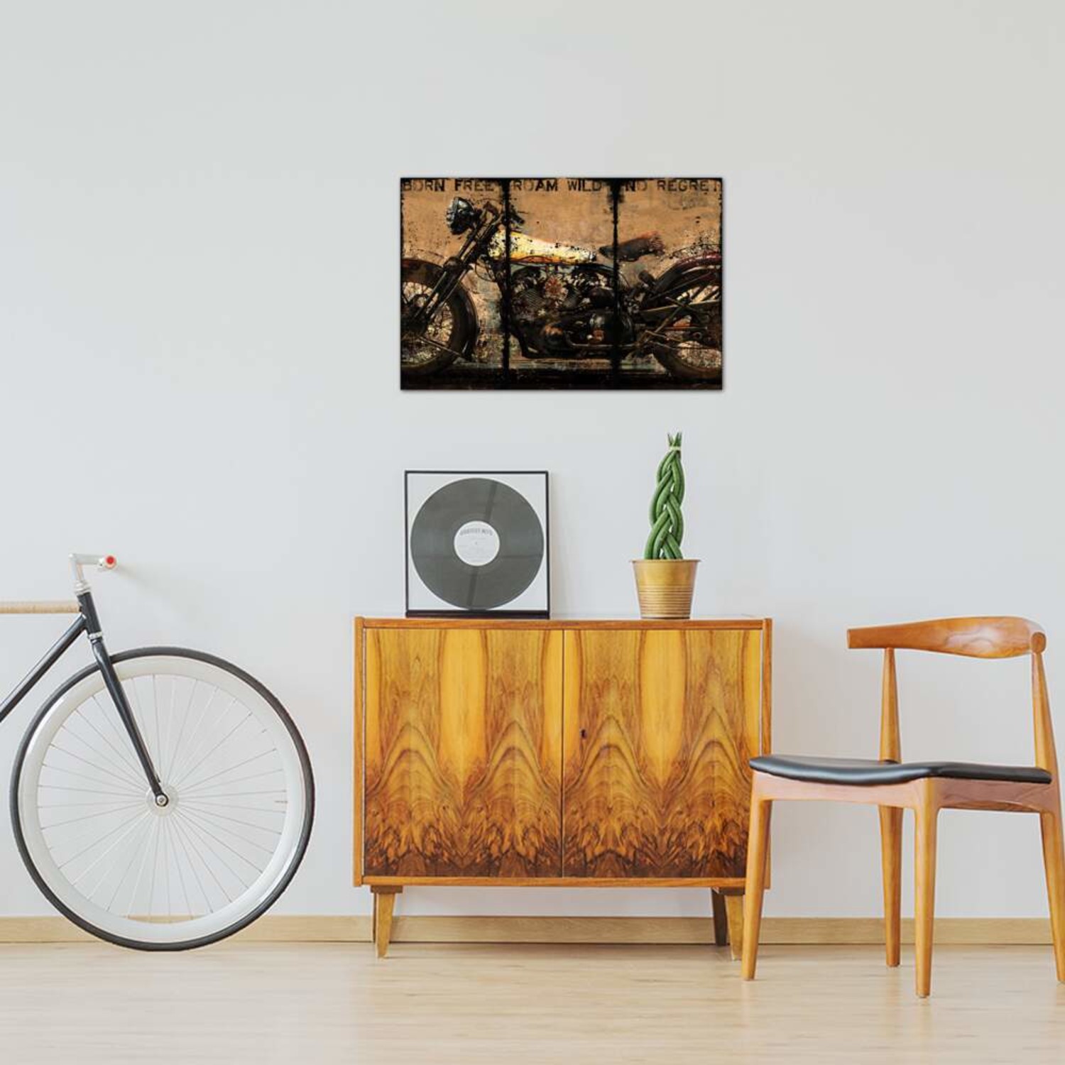 There's nothing like the open road. Riding a hog out on the open road is a quintessentially American experience. This collection of gallery quality canvas prints pay homage to motorcycles and the men and women who ride them with iconic, instantly classic images that will have you reminiscing about that indescribable thrill.