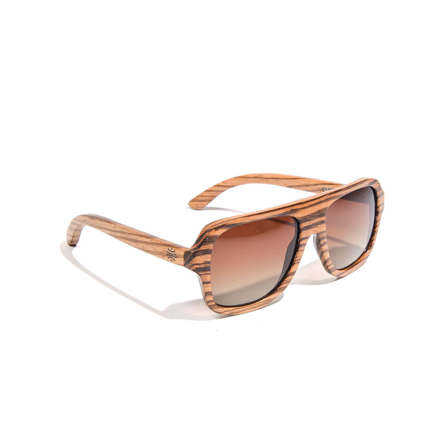Cornelius is the new answer to the aviator, made from Zebrawood with polarized polycarbonate brown gradient lenses. They don't just look good; with a recycled past and recyclable future, wearing Bosky Optics glasses does good, too.