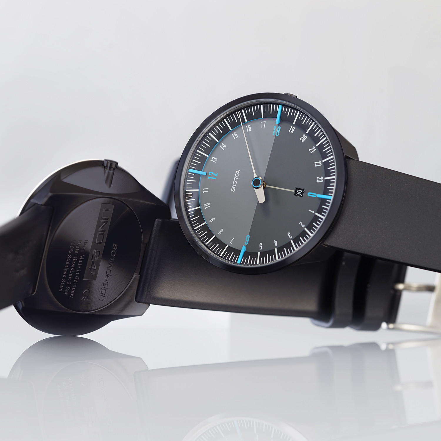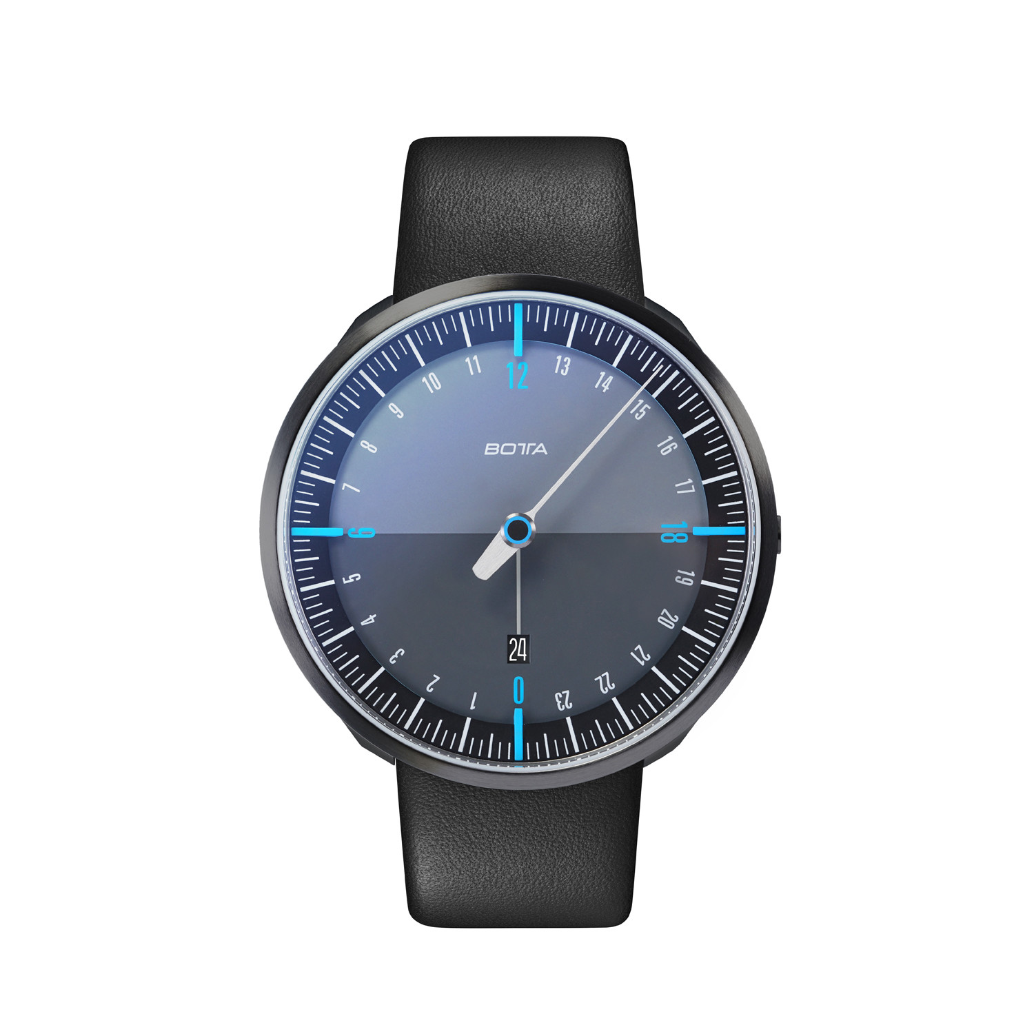 The UNO 24 NEO + is the an oversized dual one-hand watch for two time zones from designer Klaus Botta. The newly designed dial of the NEO gives the UNO24 models an uncluttered, poised and high-precision readability. This watch is a must-have for frequent travelers and those adjusting to new time zones.