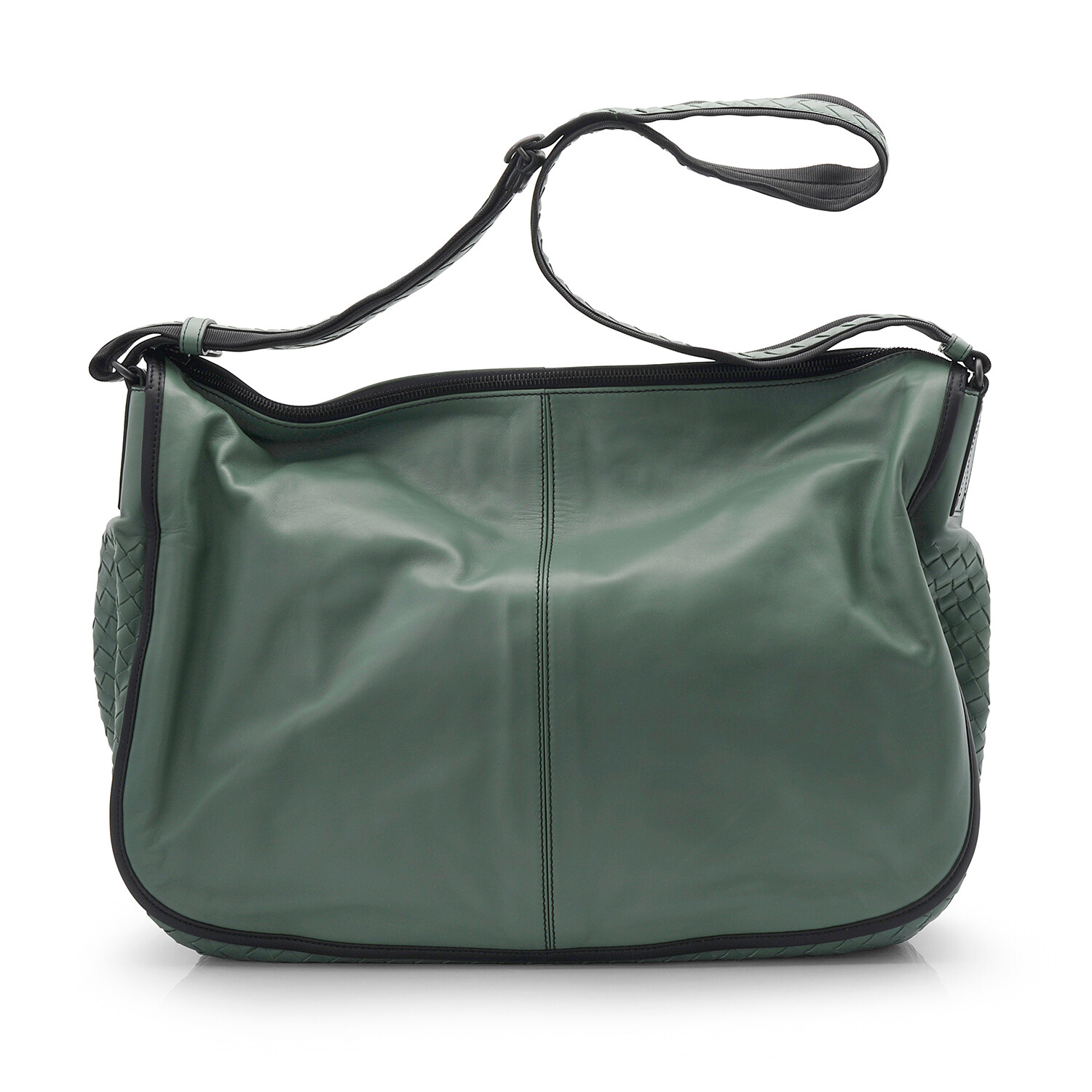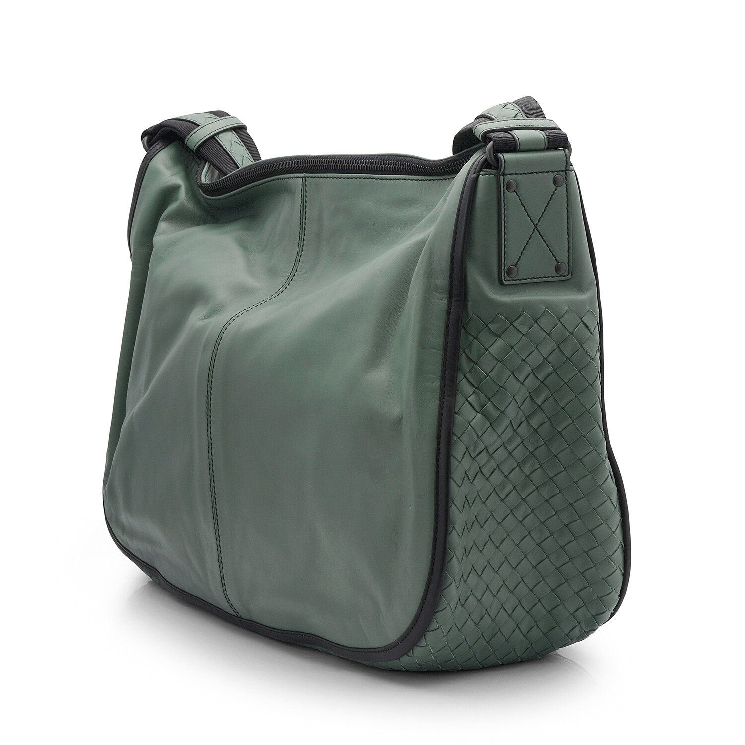 Intrecciato Leather Messenger Bag // Green // Store Display