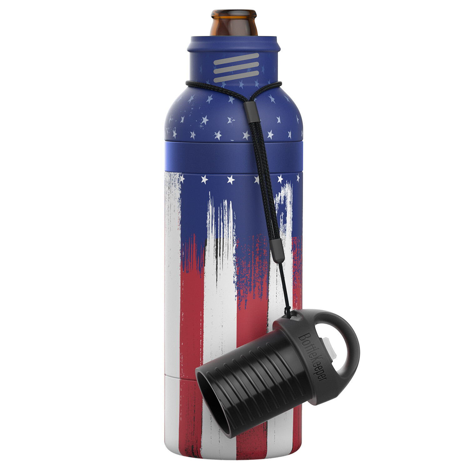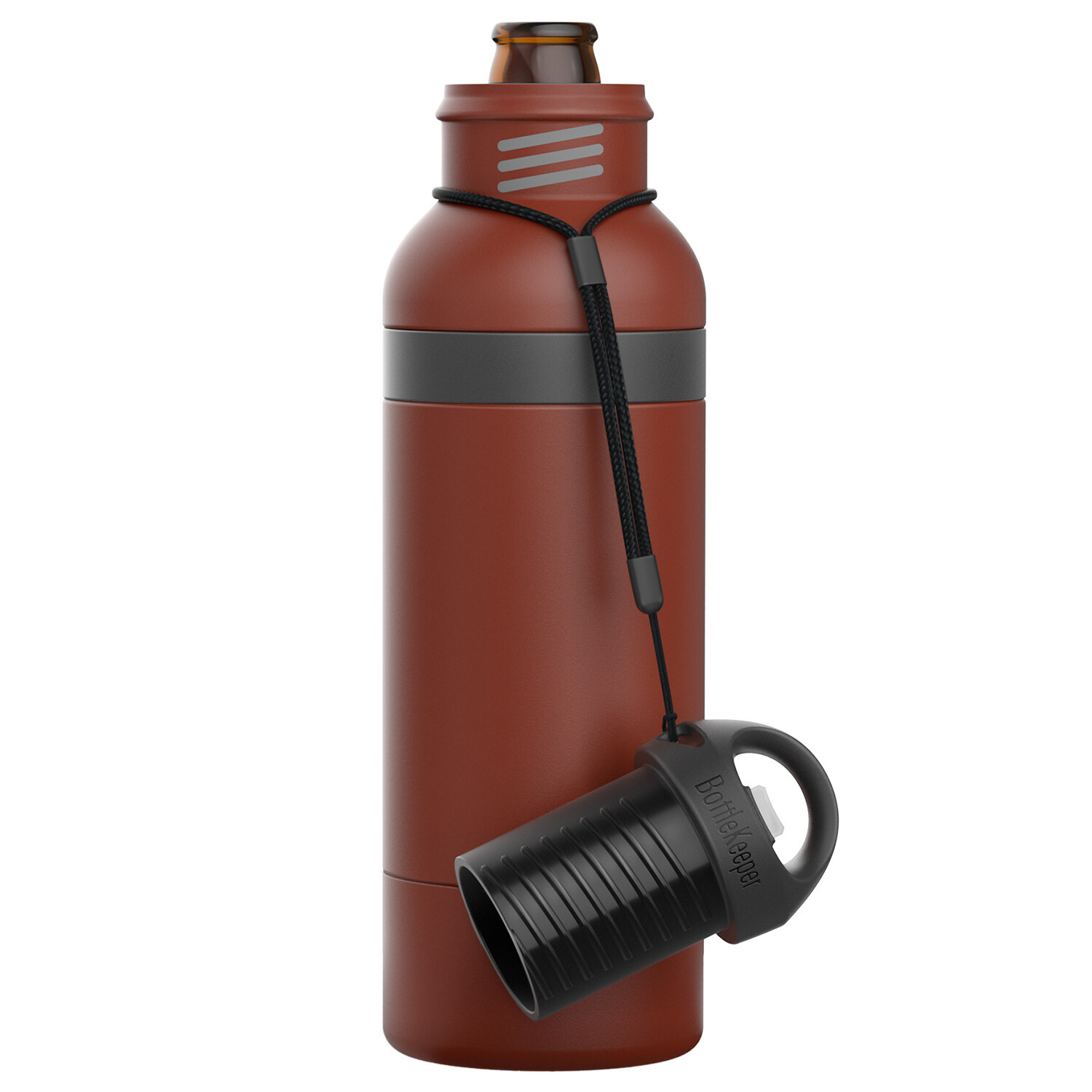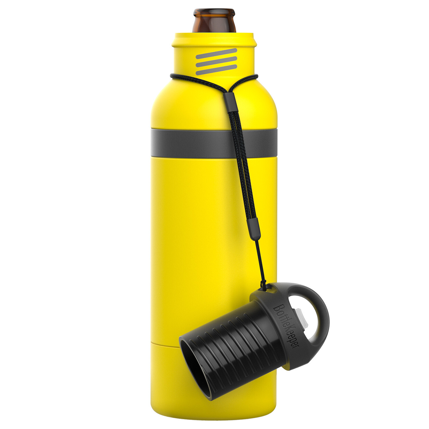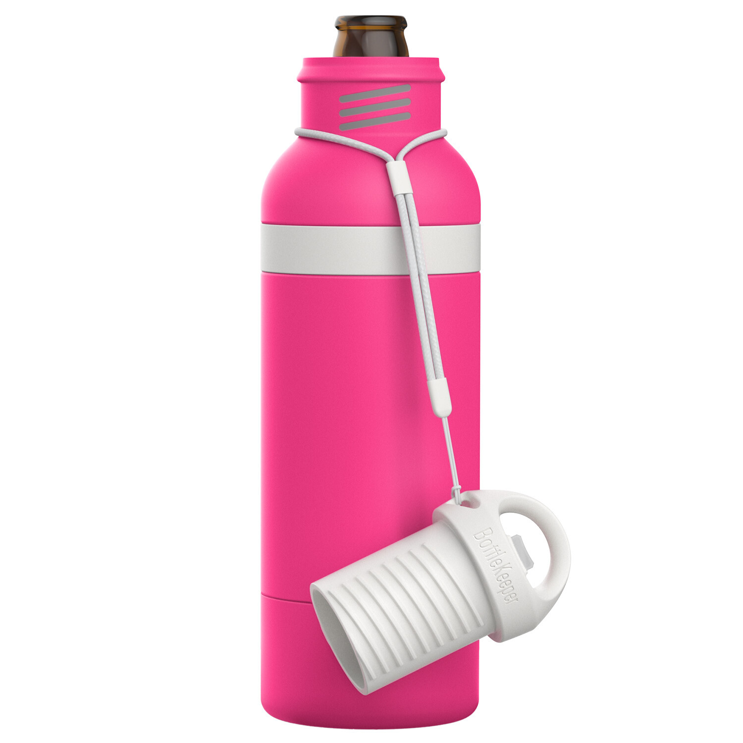The BottleKeeper X fits 99% of beer bottles and is double walled and vacuum insulated to keep your beer colder and longer than ever before—up to 6 hours. The BK X features a new quick access cap and a built-in bottle opener.