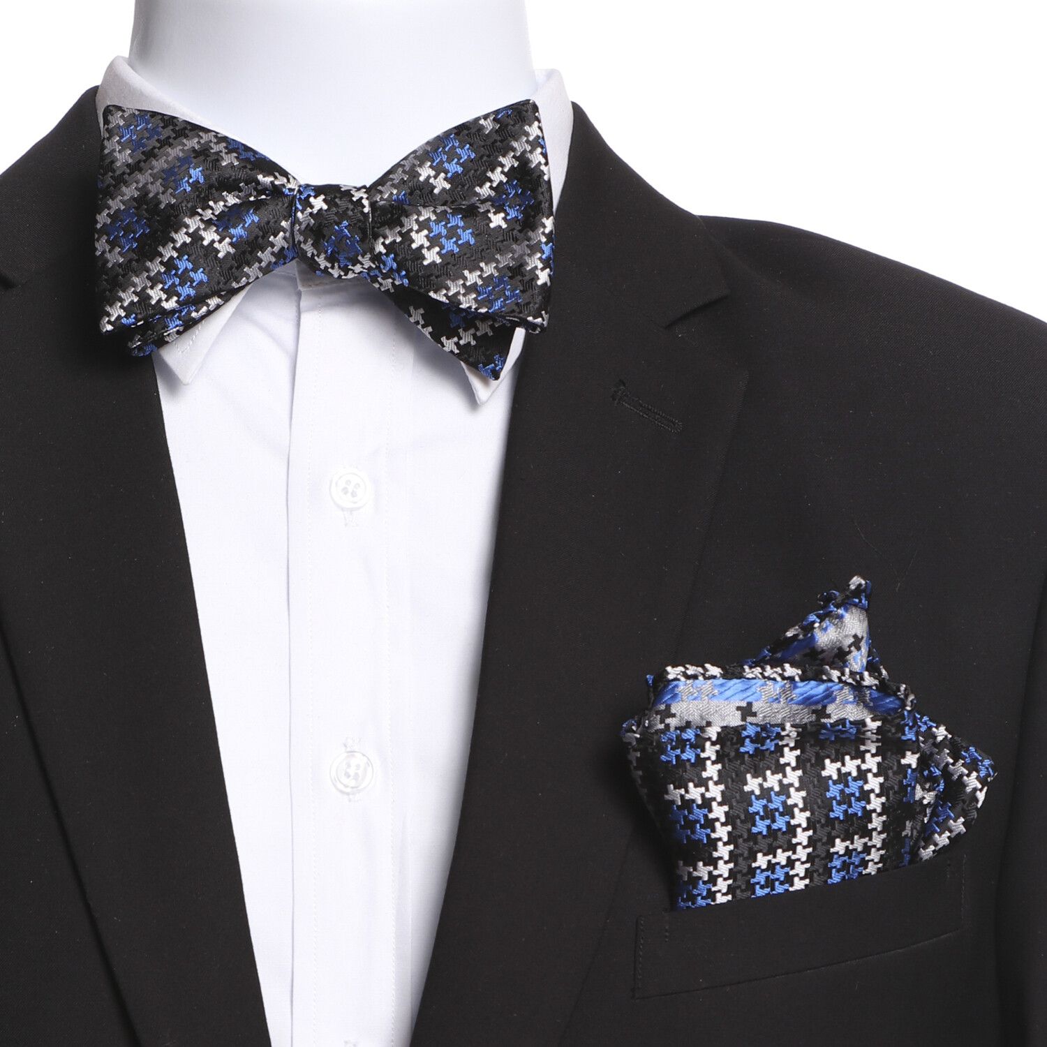 Make a fashion statement with an Amedeo Exclusive self-tie bow tie and hanky set. Each set is bold, but with a classic flair that offers an instant boost to dressier looks. Perfect for work or for your net big event, these timeless wardrobe accessories will never fail to impress.