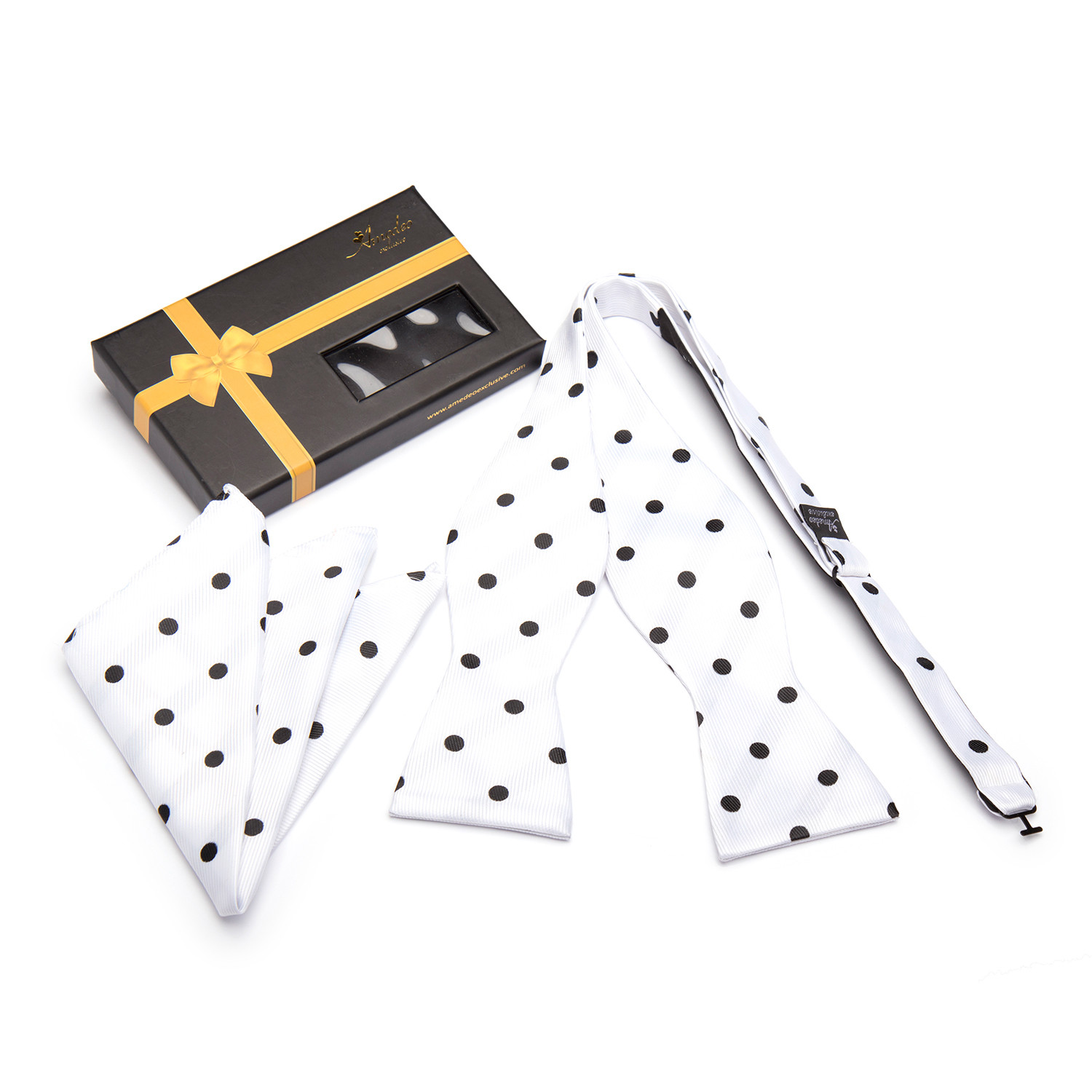 Make a fashion statement with an Amedeo Exclusive self-tie bow tie and hanky set. Each set is bold, but with a classic flair that offers an instant boost to dressier looks. Perfect for work or for your net big event, these timeless wardrobe accessories will never fail to impress.