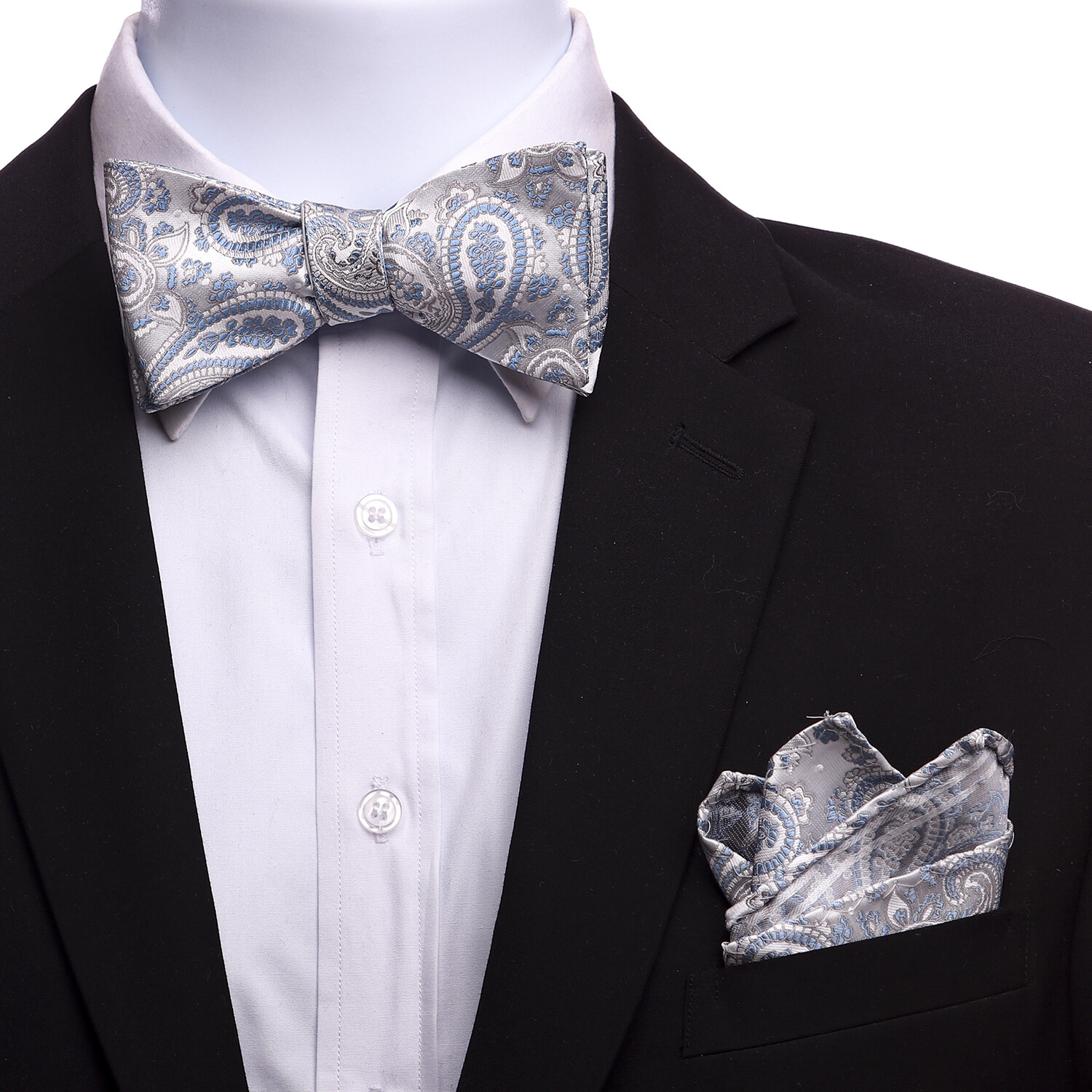 Bow Tie And Hanky Set // Grey + White + Blue Paisley