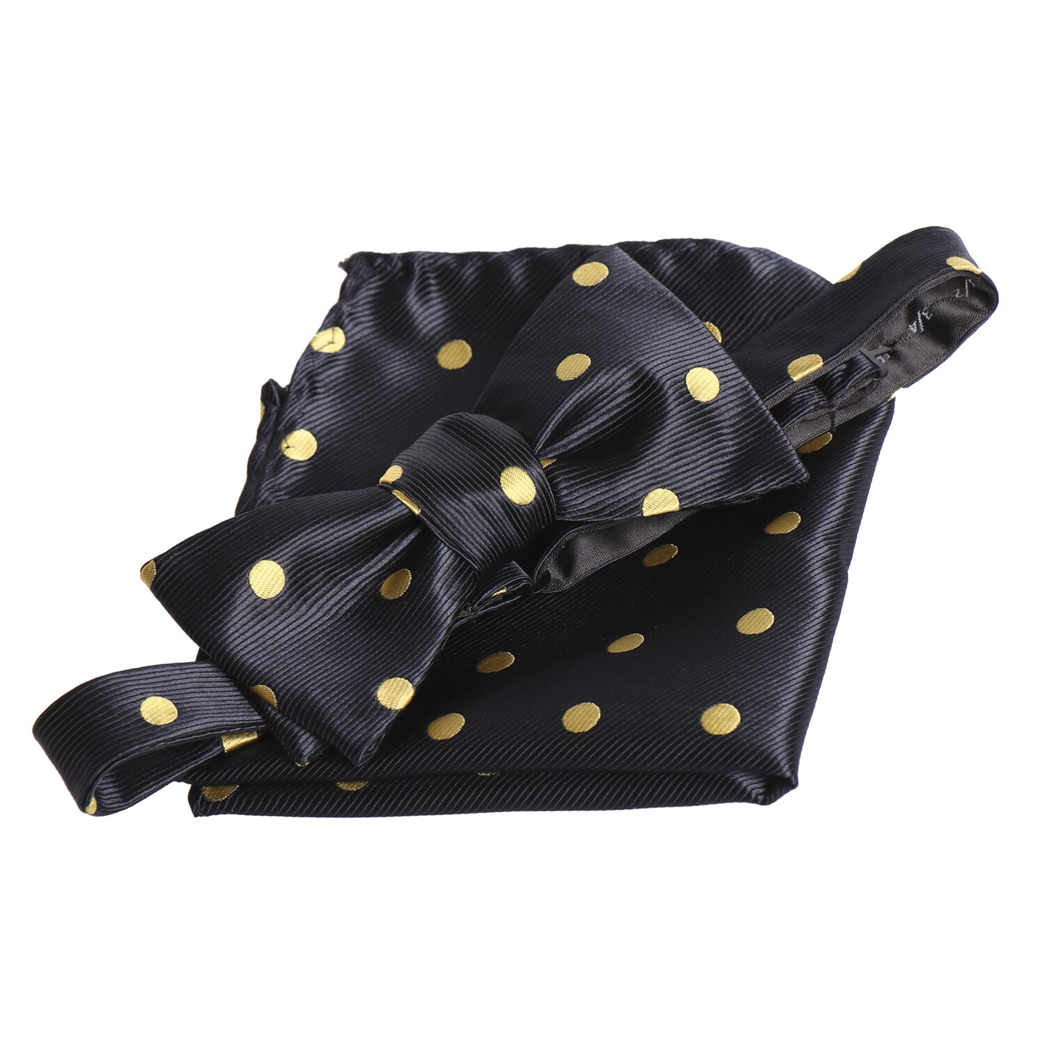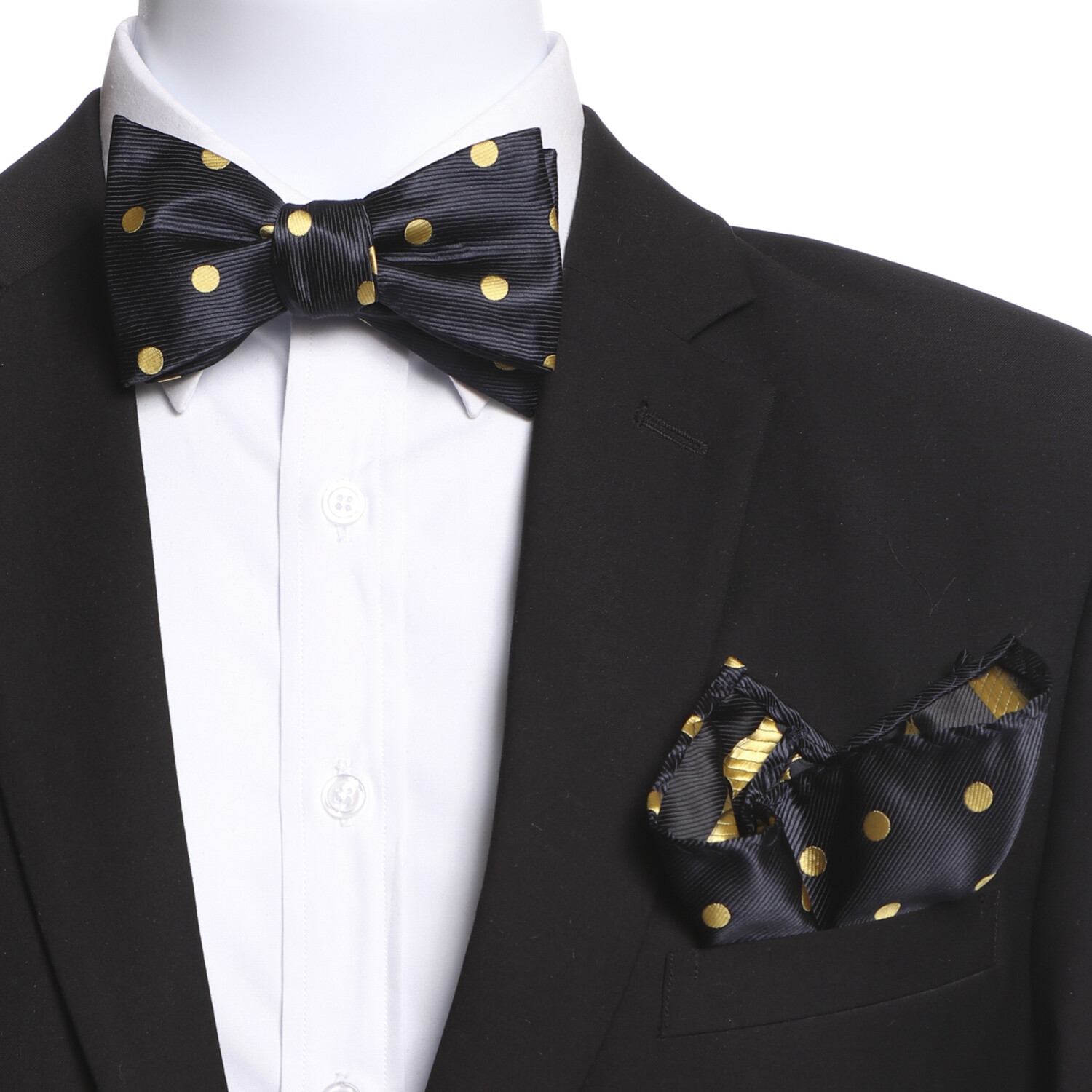 Bow Tie And Hanky Set // Yellow + Black Polka Dolts