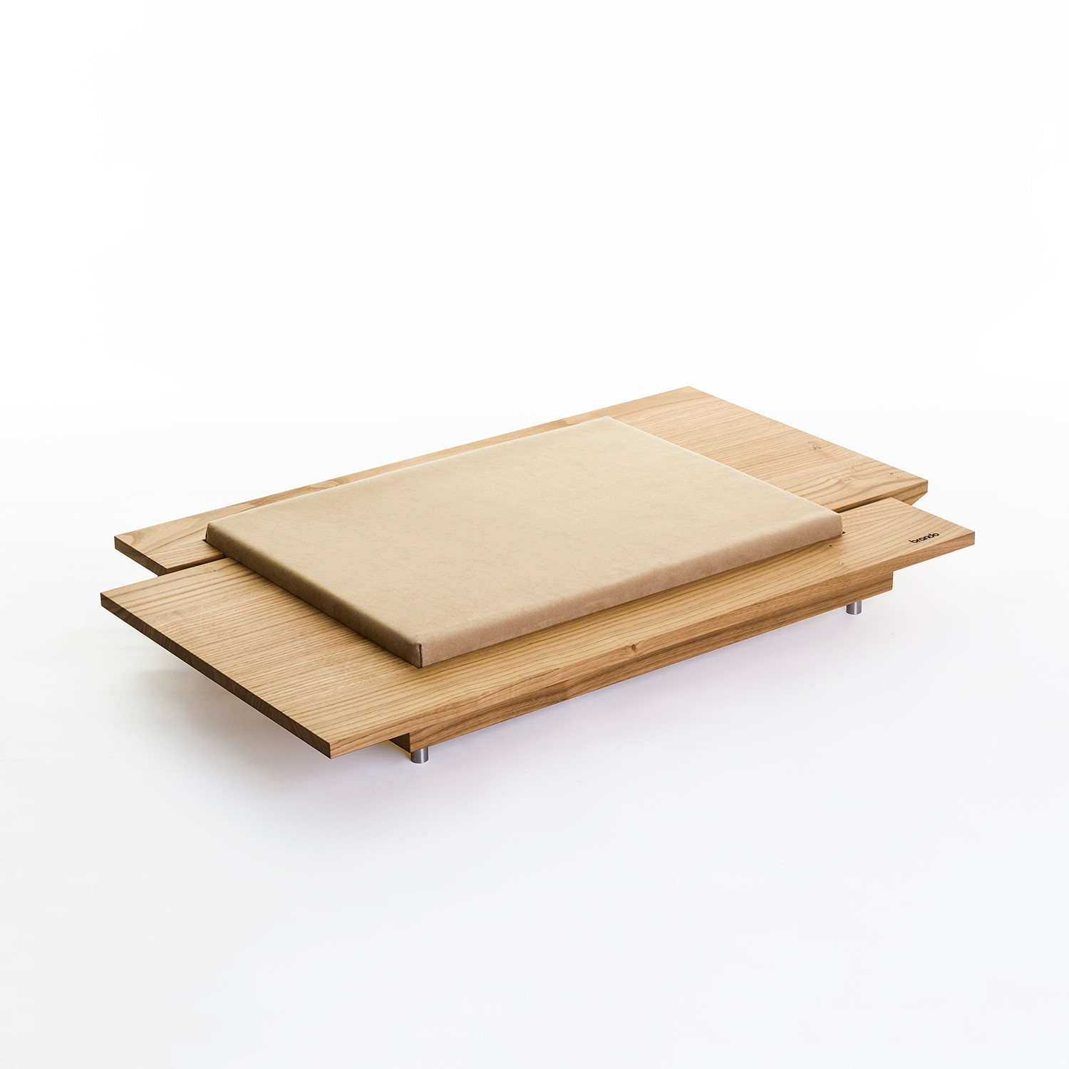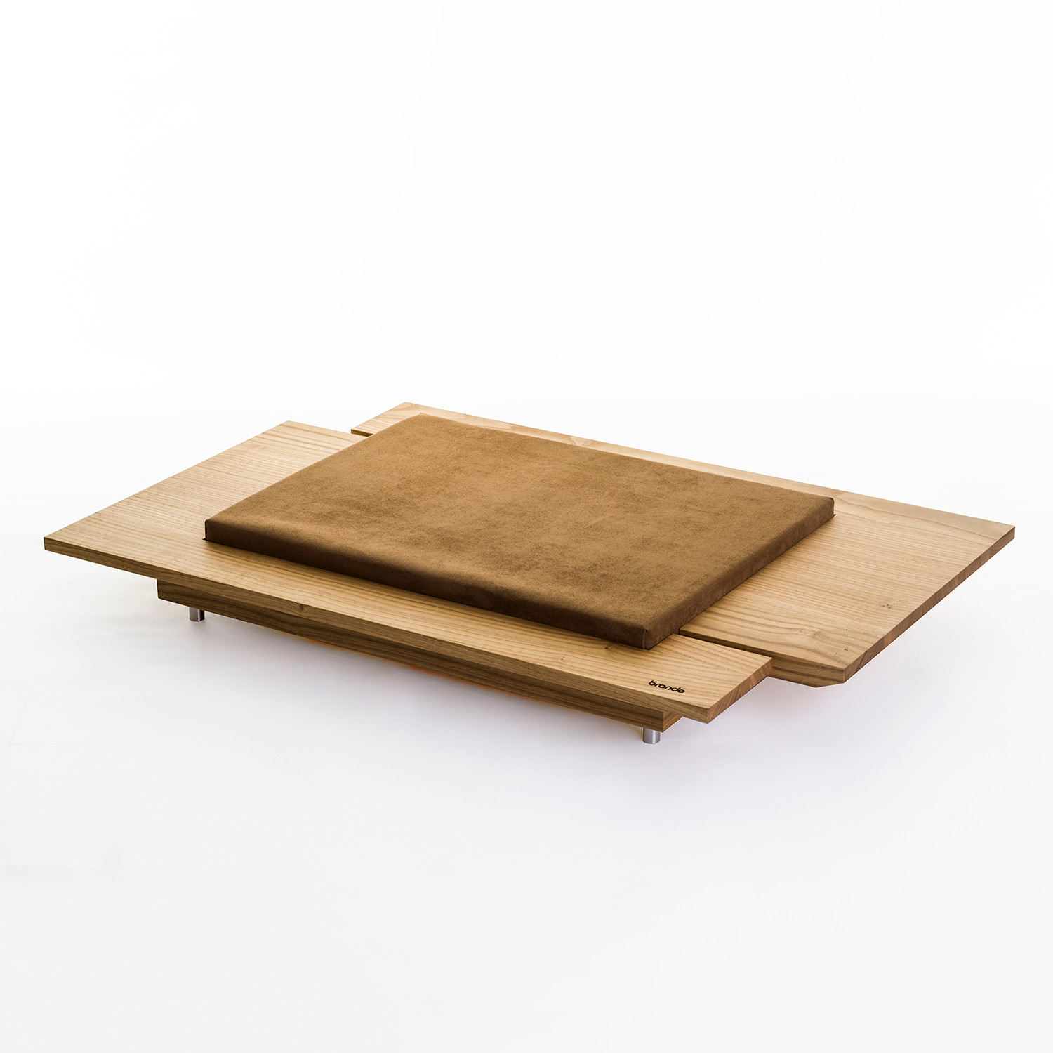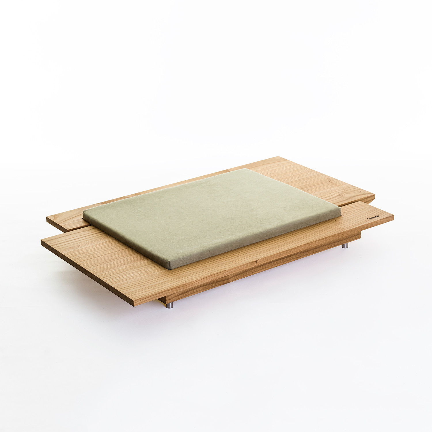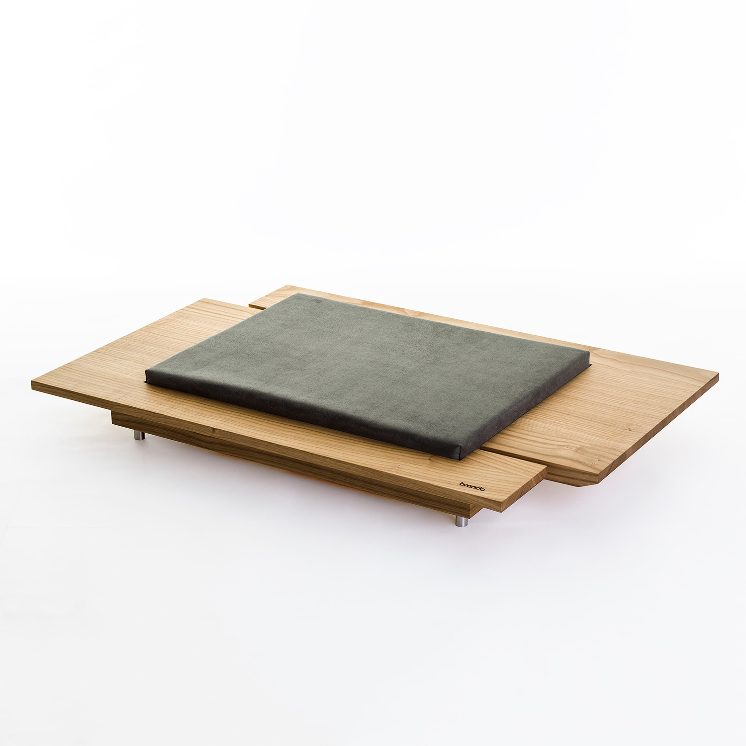 Featuring clean lines and a minimalist silhouette, Mira is a classic futon-inspired pet bed with elegant, modern style that gives your furry friend plenty of space to freely move about. The sturdy, solid wood frame and removable slatted base are expertly crafted for a rich, natural look, and gently elevated by durable stainless steel feet for enhanced ventilation. Finally, the Mira is finished with a soft, plush cushion— complete with a removable cover that is hand sewn in Italy— resulting in a luxurious and aesthetically pleasing piece of furniture that gives your pet the total comfort they deserve and won't clash with your home decor.