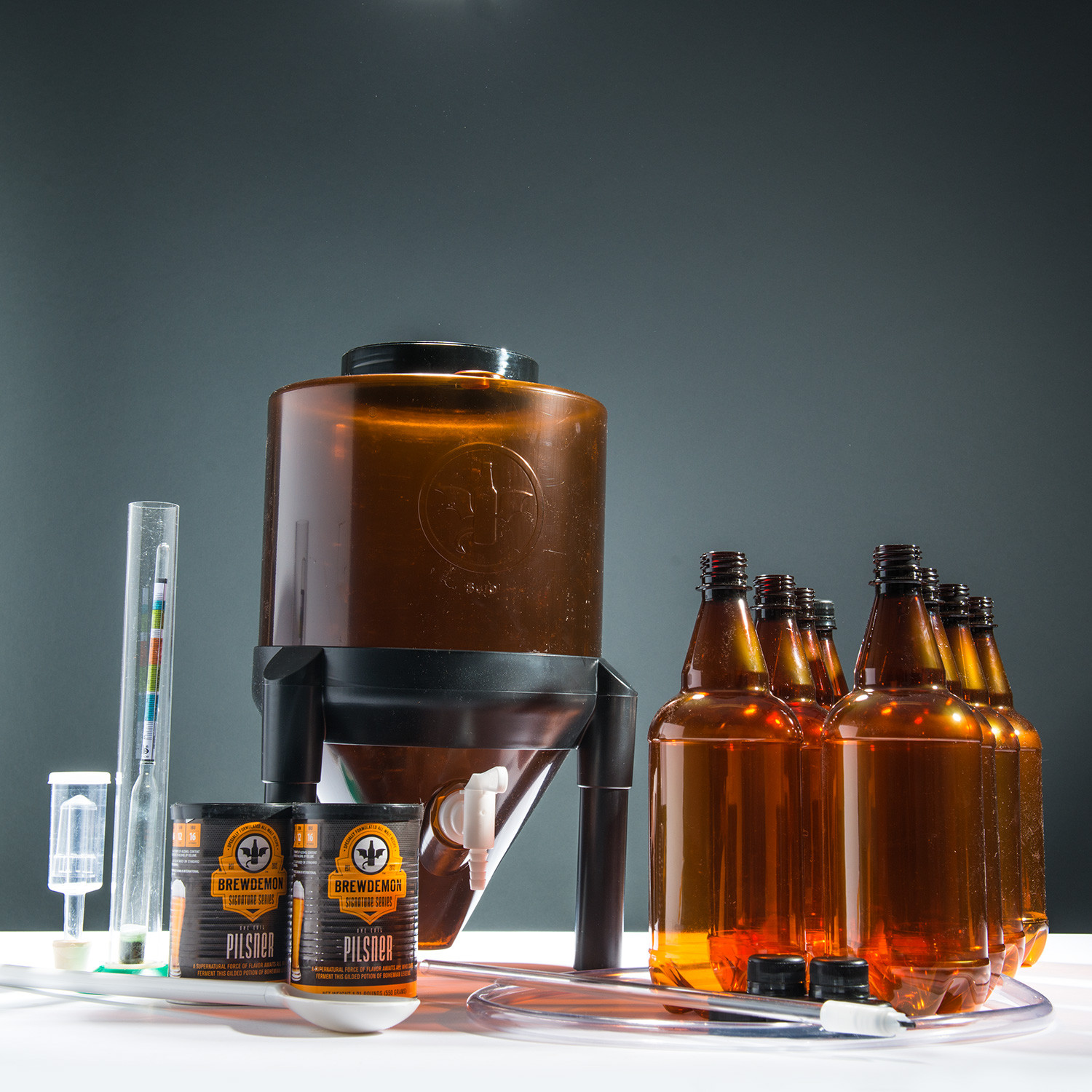 Now you can start your own craft beer revolution by brewing it yourself with your own BREWDEMON Signature Kit Extra. This kit includes Brew Demon's most incredible malt recipe for two total gallons of deliciousness, as well as the world’s first (patent pending) small batch conical fermenter. This gadget allows you to brew batch after batch, always with great results. You'll love the ease with which you can brew your own batch — after all, everything you need is already included.