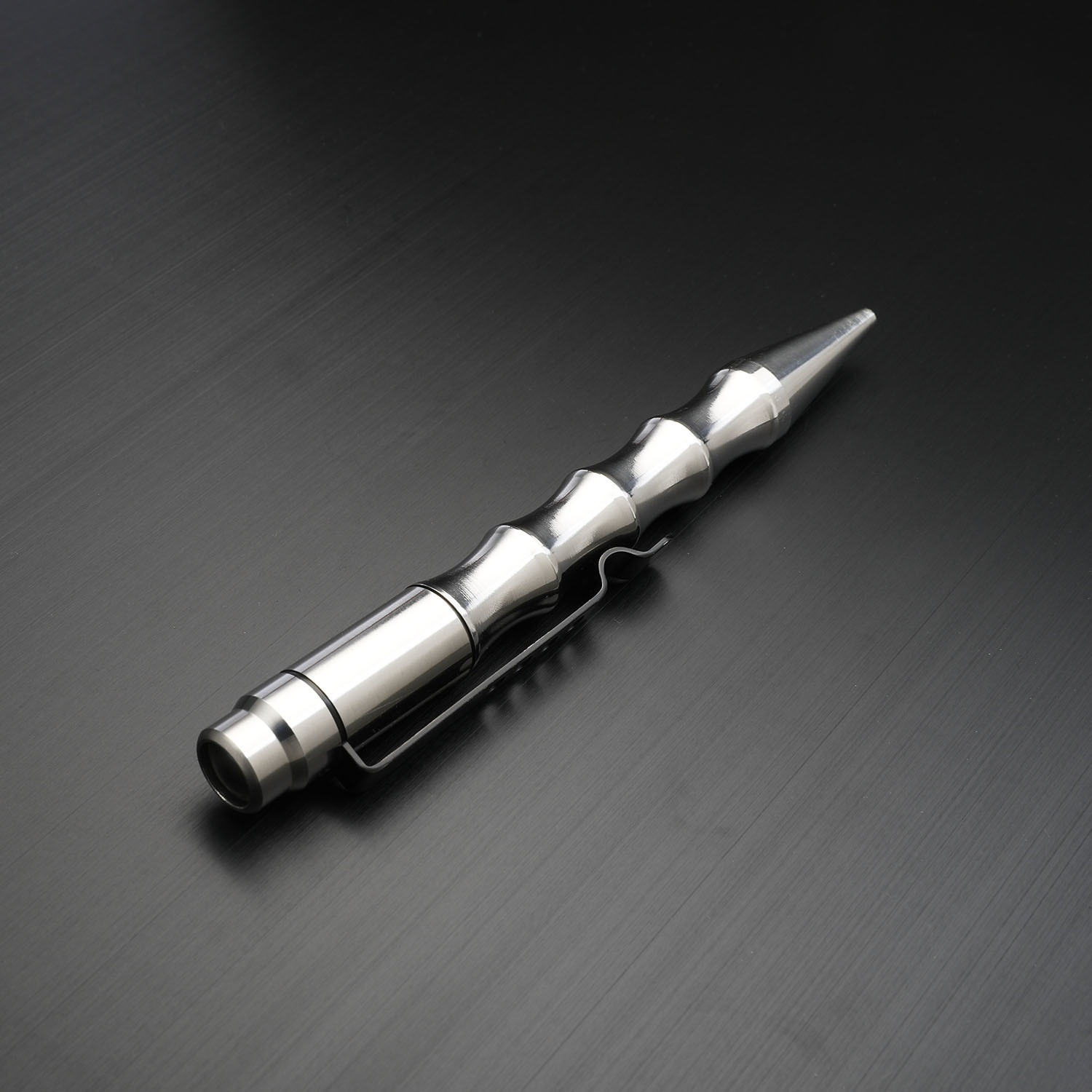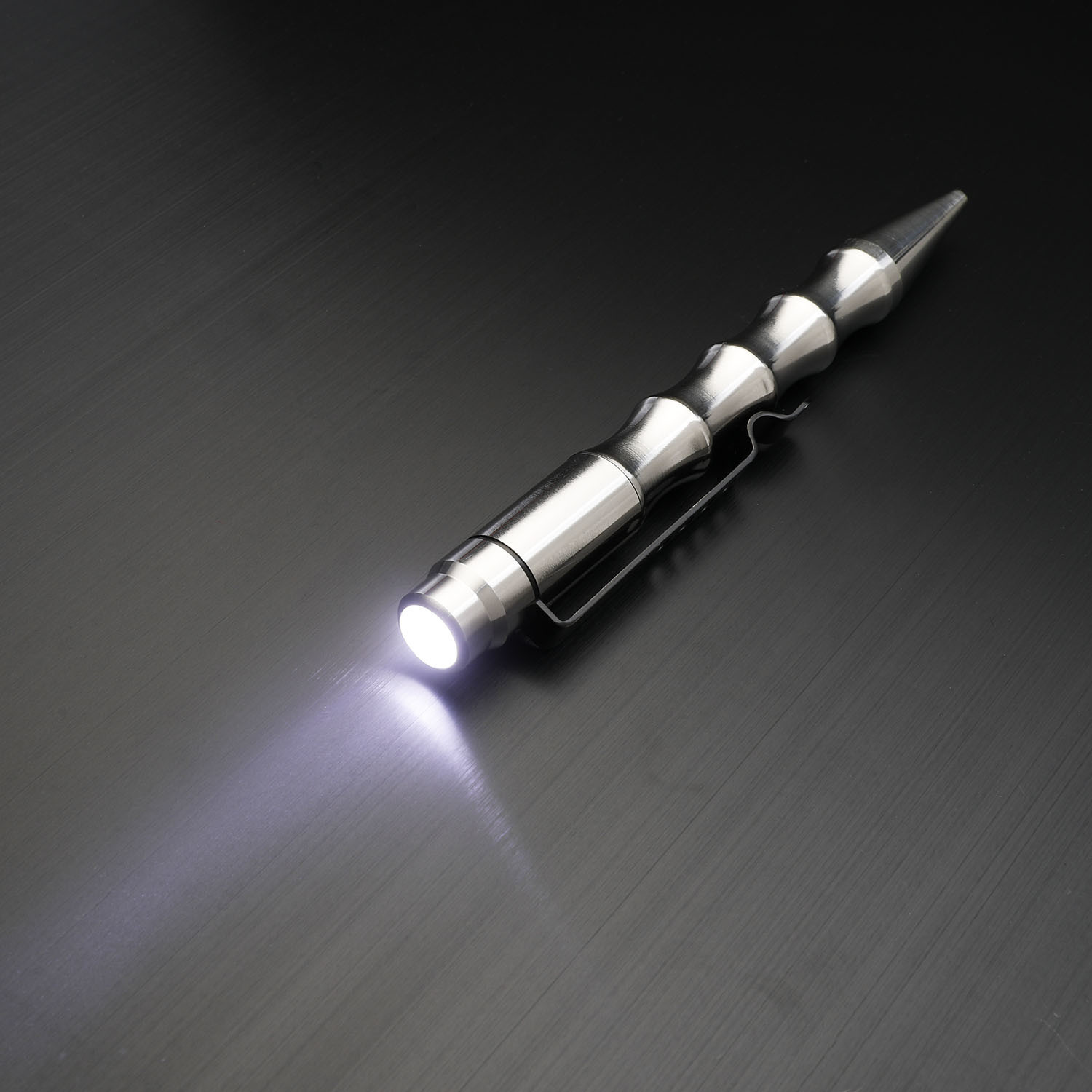 A must have for your everyday carry kit. This stylish tactical pen is durable and rugged made from impact resistant stainless steel. The beveled edge works equally well for self defense and for breaking glass if you are in a emergency situation. Not to be outdone with its ruggedness, the ink has an attractive black finish and a LED bulb that last a lifetime.