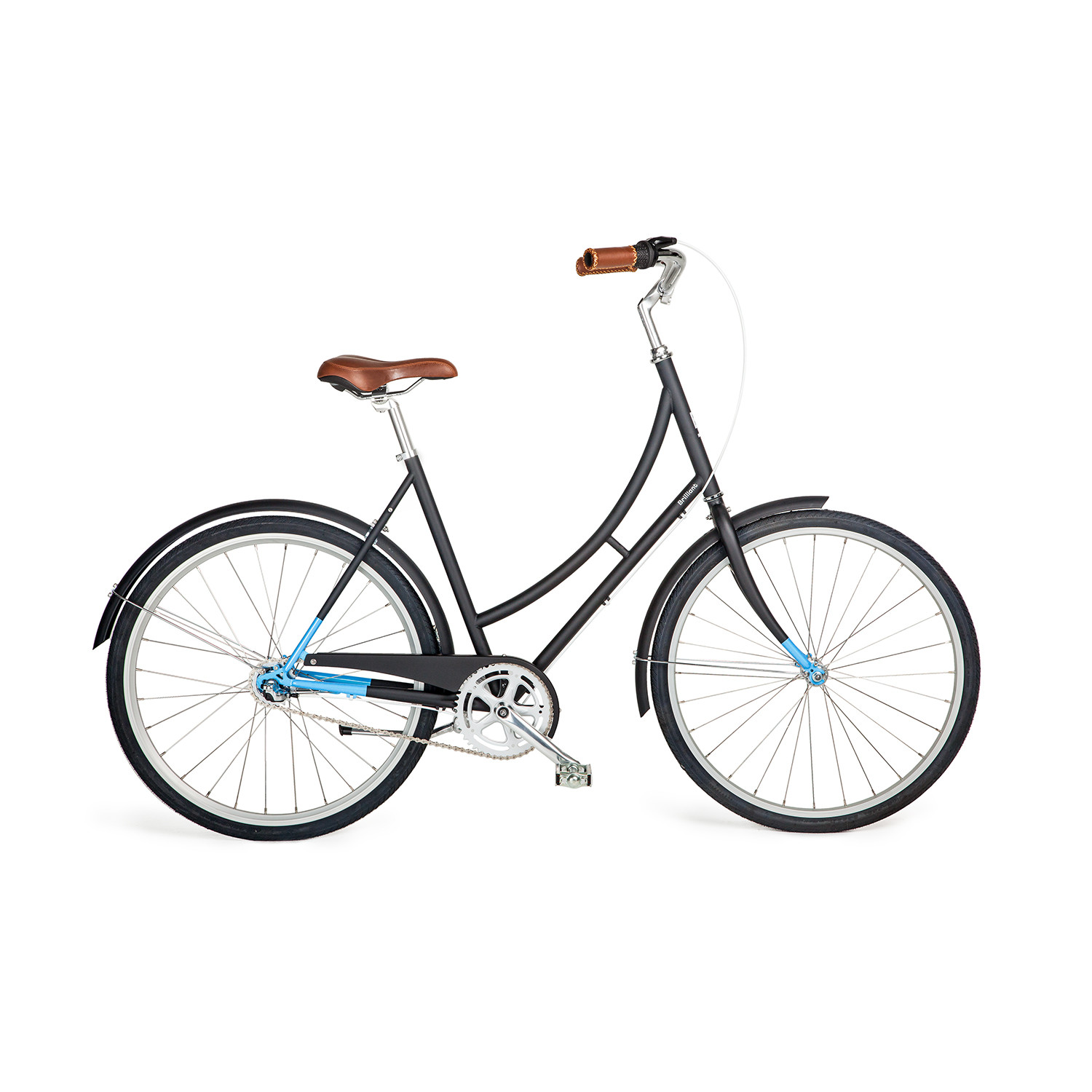 The Mayfair is a European-style town bicycle perfectly designed for city riding. The Mayfair's curved frame shape makes hopping on and off in jeans or a skirt as easy as riding the bicycle itself. Built with lightweight steel, super soft seat and grips, and top-of-the-line Shimano gears, the Mayfair is the most comfortable bike on the market. With a beautiful matte paint finish, the Mayfair looks great on the go, or doubling as art in your apartment.