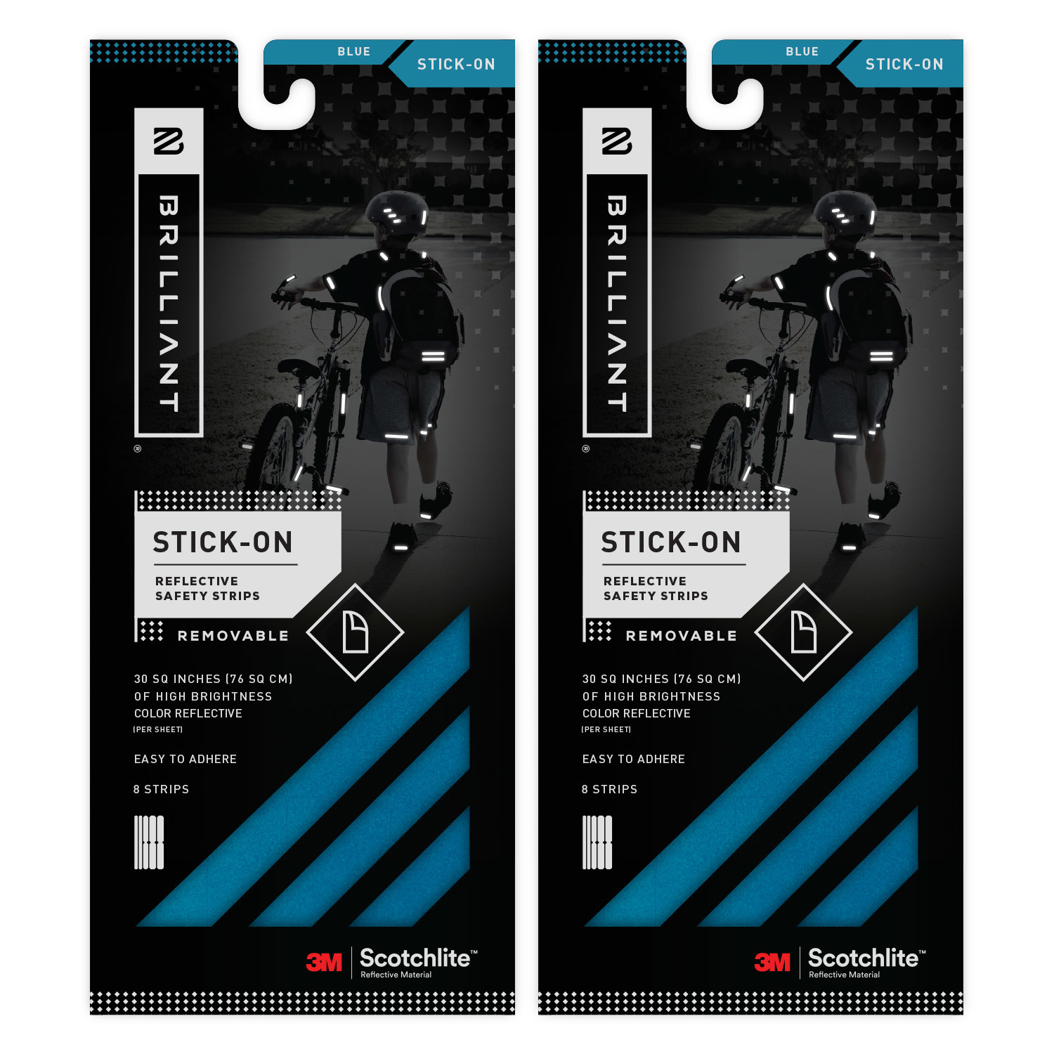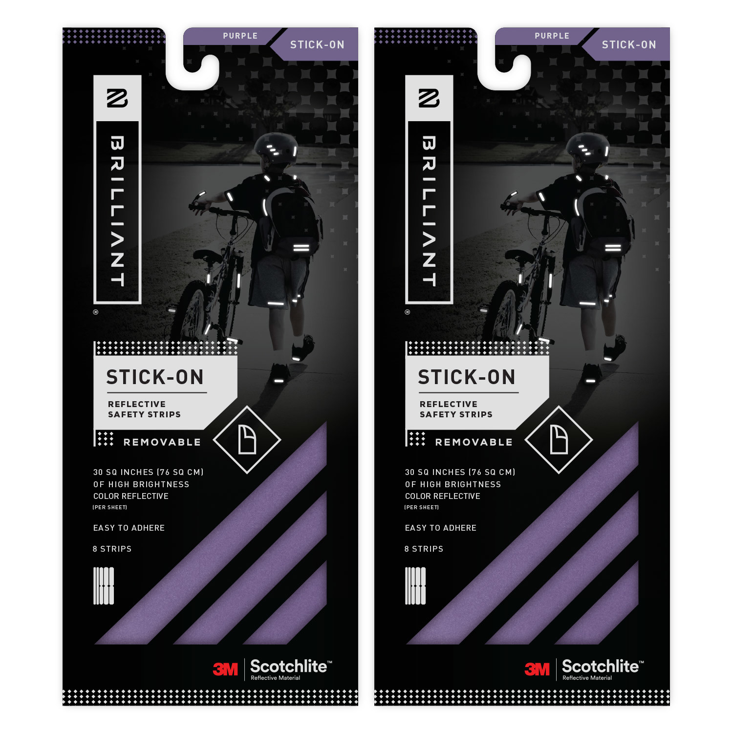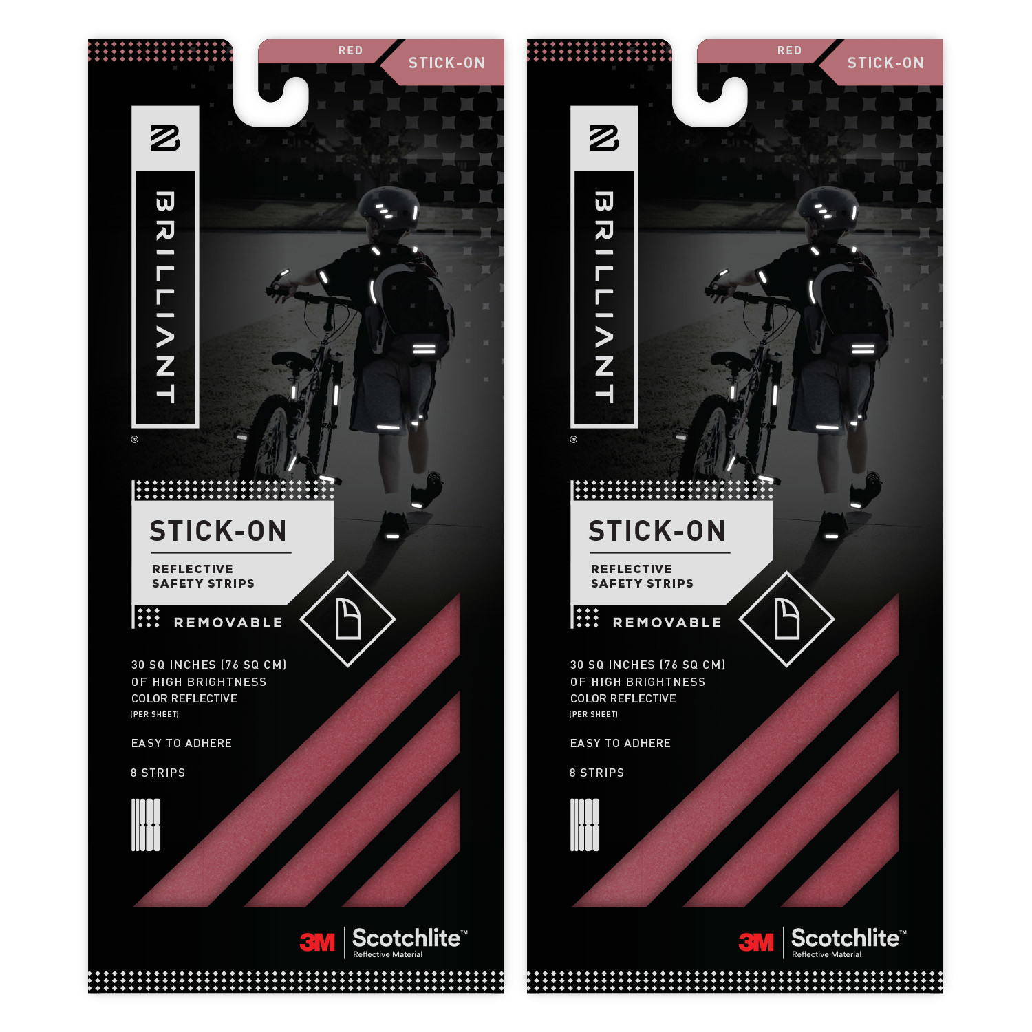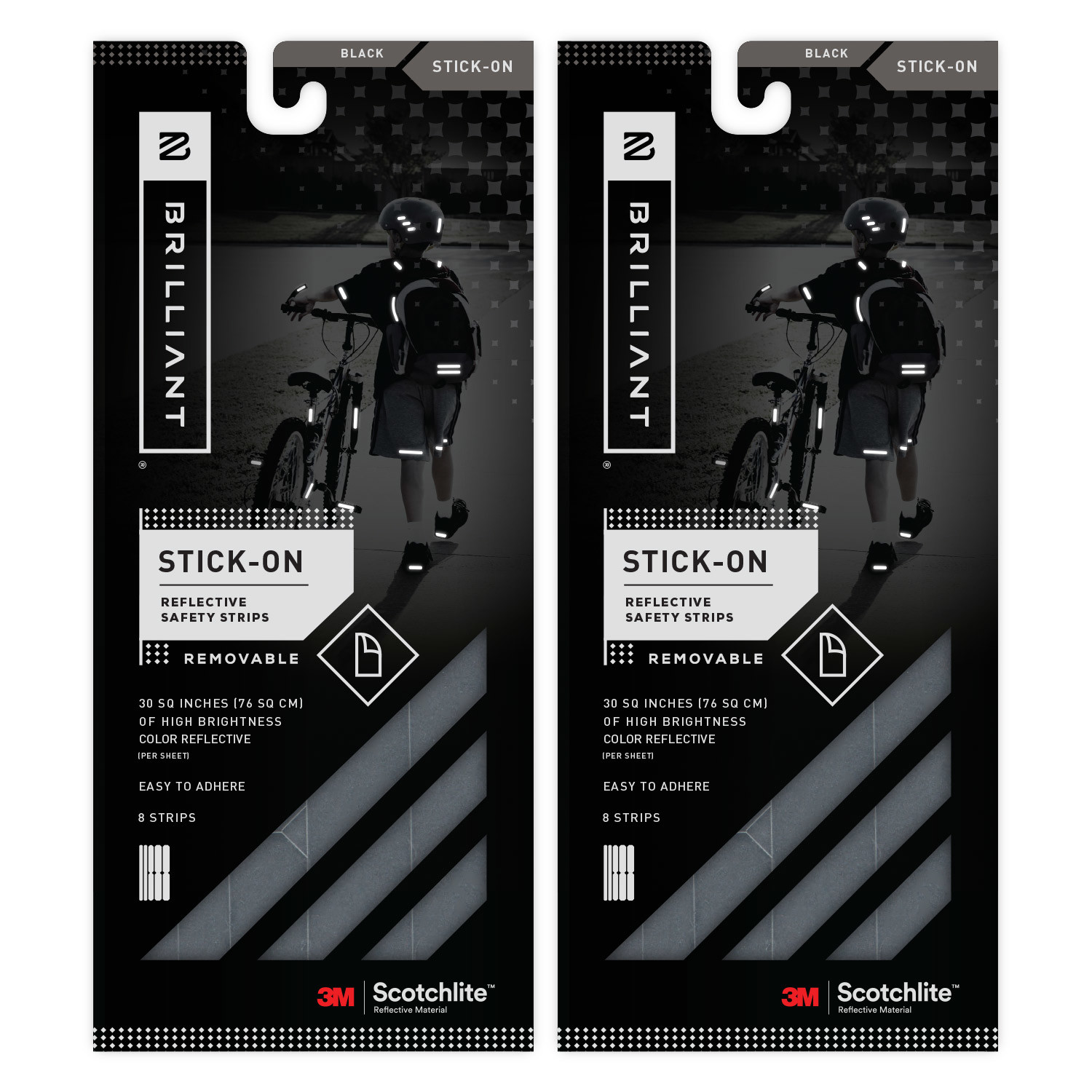 Simple, easy to apply, and extremely reflective, Brilliant Reflective Stick-On Strips are made with 3M Scotchlite reflective material tape which enhances your already-existing bike, helmet, dog leash and outdoor gear... no matter when you decide to go out.