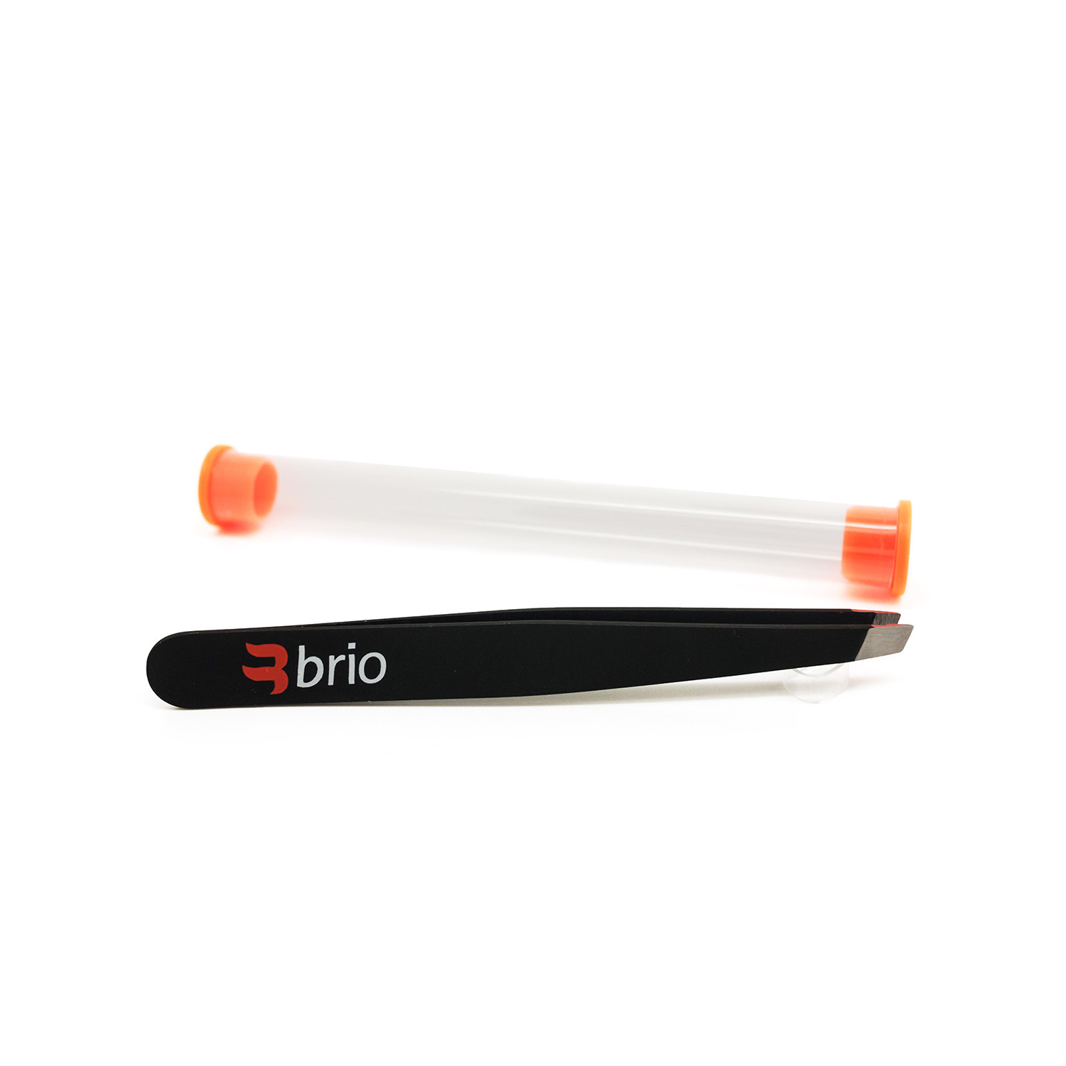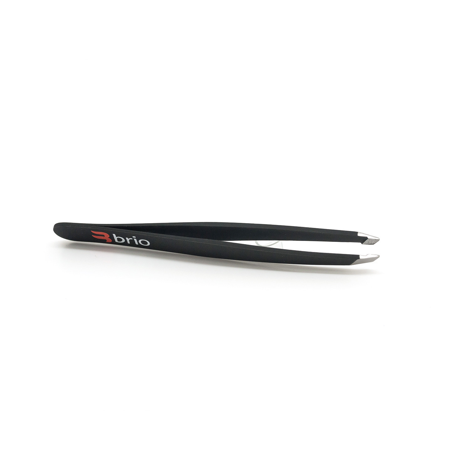 The Brio Vector Precision Tweezers have all the features of a precision beauty tool. The slant tip is hand-ground to ensure a perfect and tight closure. The tapered metal body balances optimal closure tension at the fulcrum with stability near the tip. The solid stainless steel construction is coated in a rubberized texture to improve grip and control, and the sharp slanted tips are designed to grab hairs without cutting them.