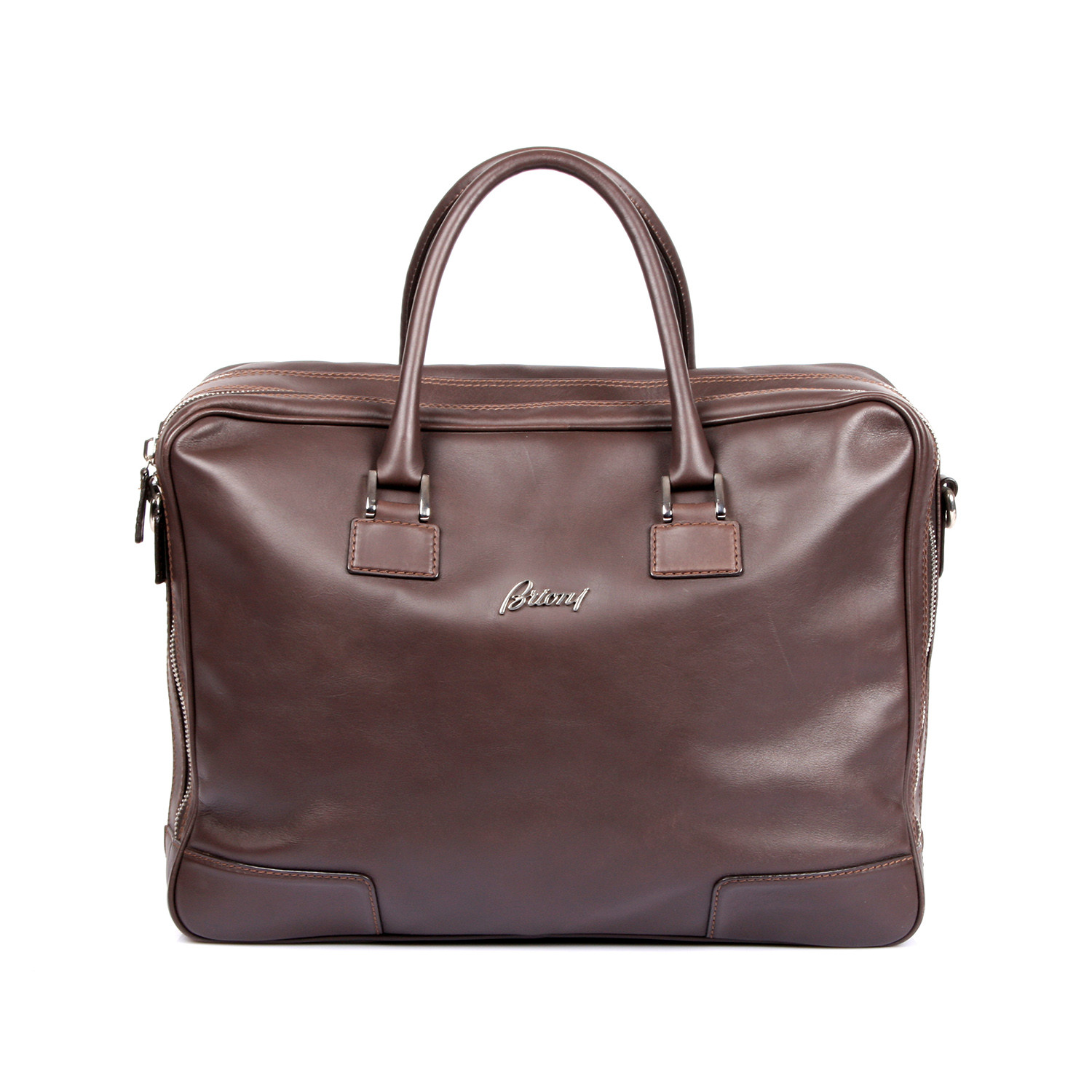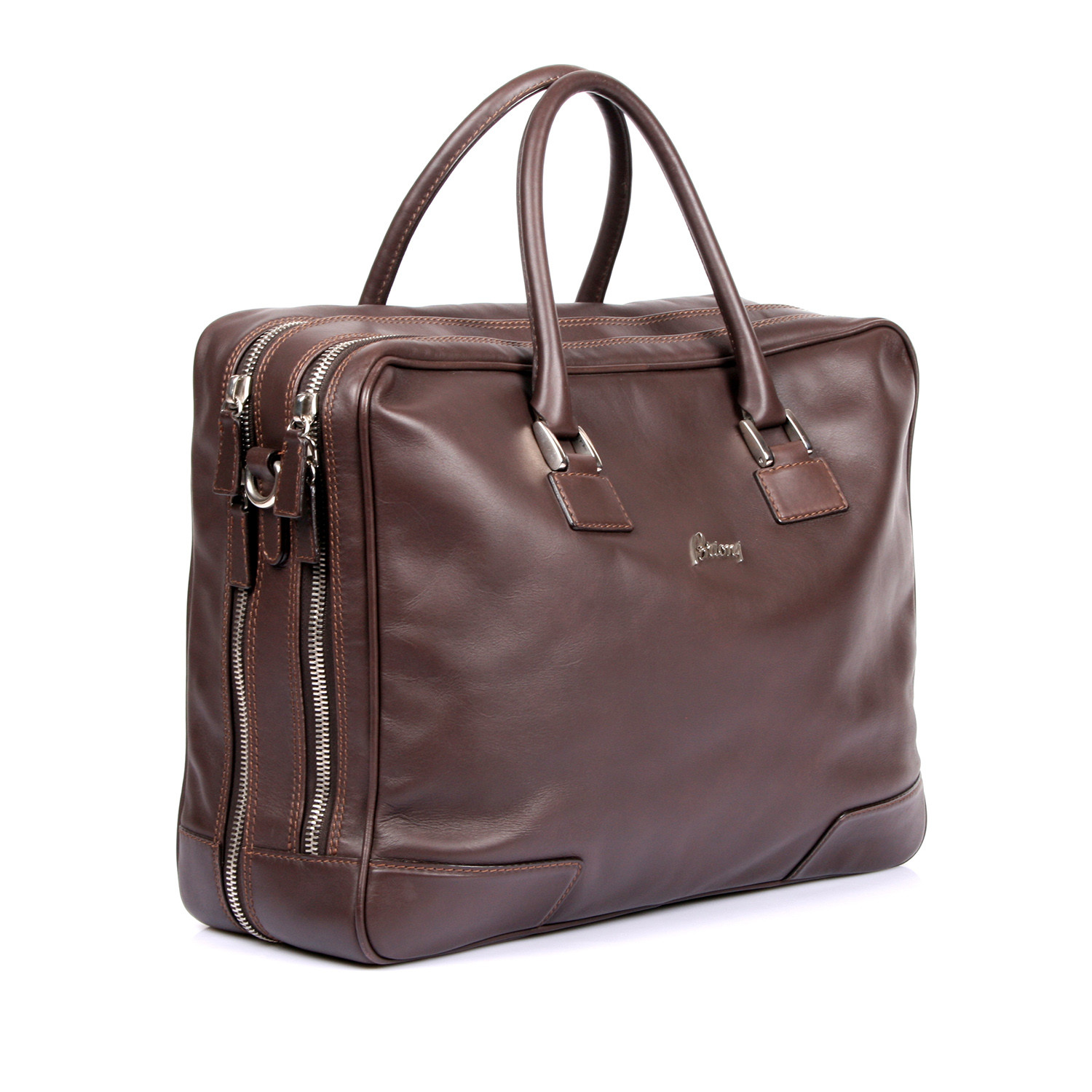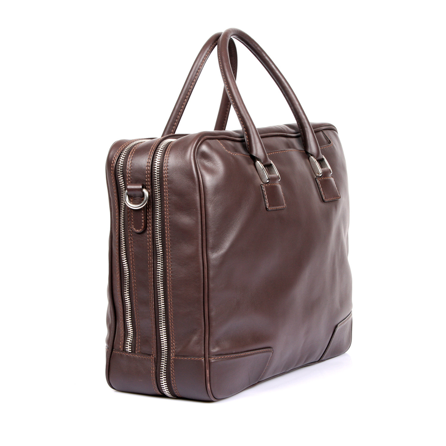 Leather Double Zipper Breifcase // Dark Brown