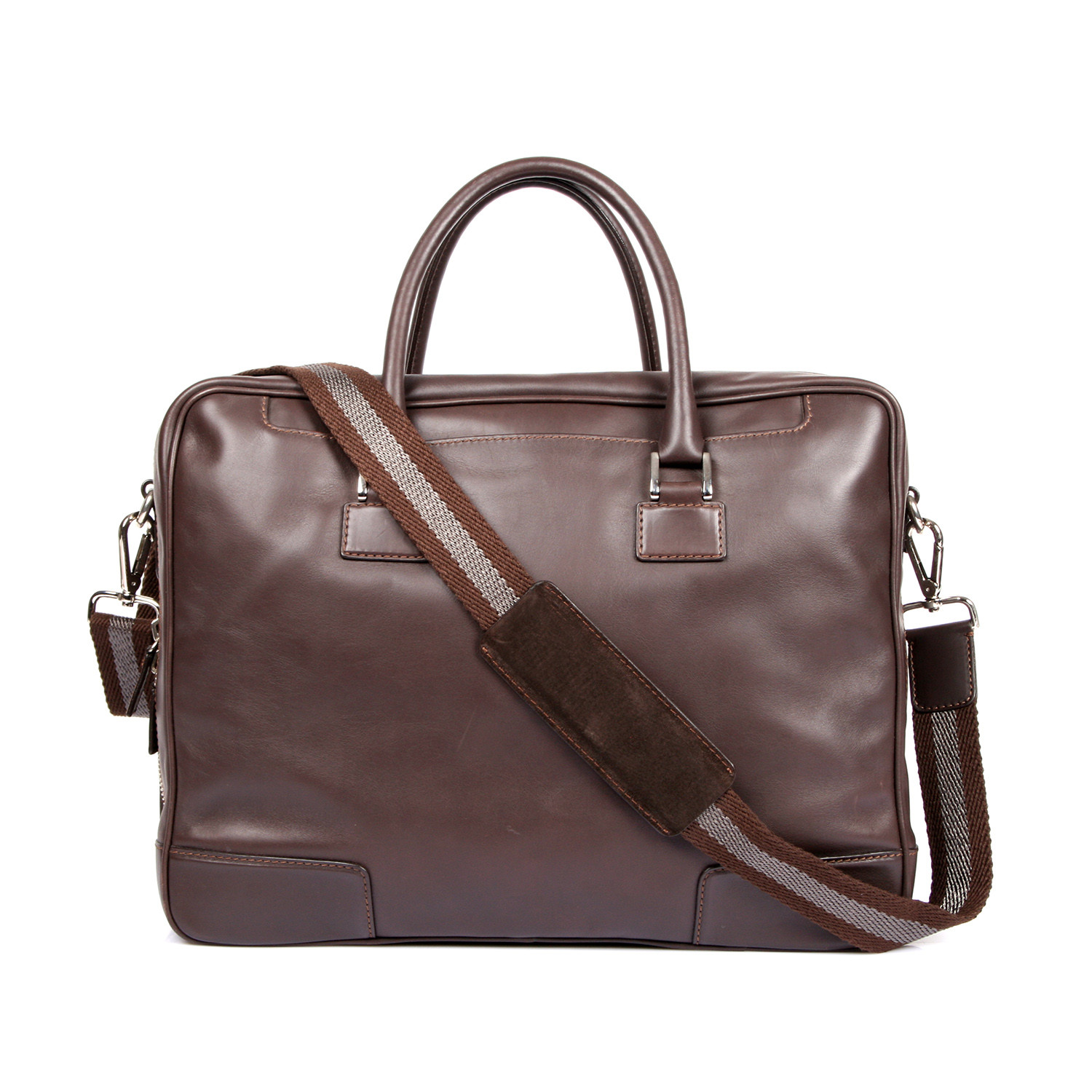 Simple, refined, and imbued with a suave sense of classic Italian style, this impressive briefcase from Brioni is an exquisite melding of form and function that never goes out of style. The rich, supple leather construction only gets better with age, while the timeless, vintage aesthetic provides a polished finish to any look— perfect for adding an undeniable sense of sophistication and luxury to your daily commute.