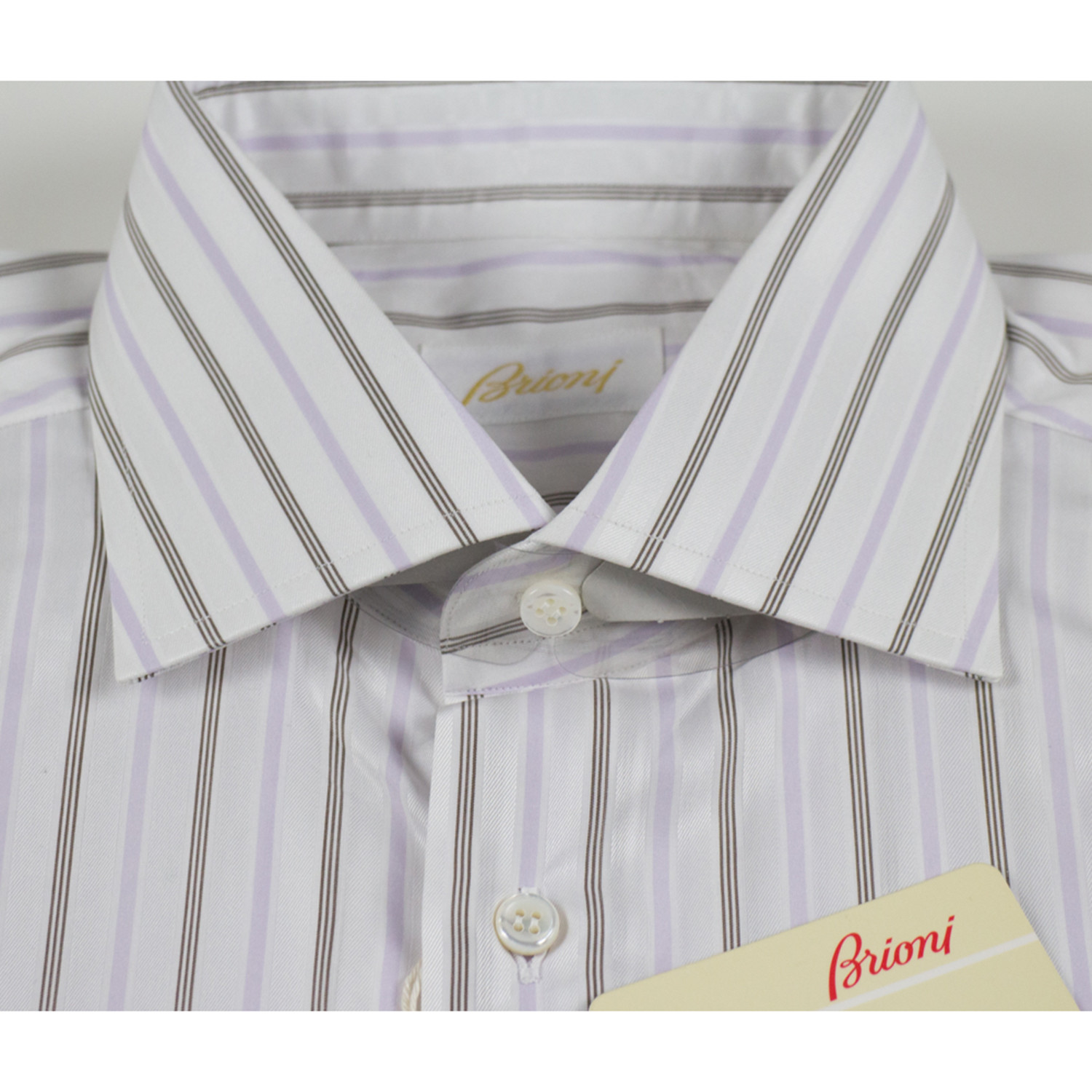 Brock Striped Cotton Slim Fit Dress Shirt // White