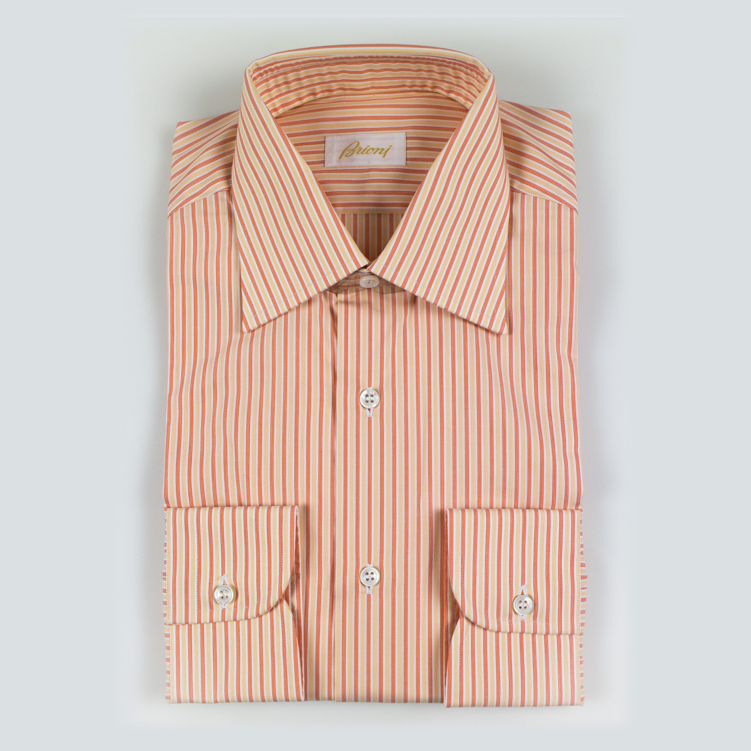 Rishi Striped Cotton Slim Fit Dress Shirt // Orange