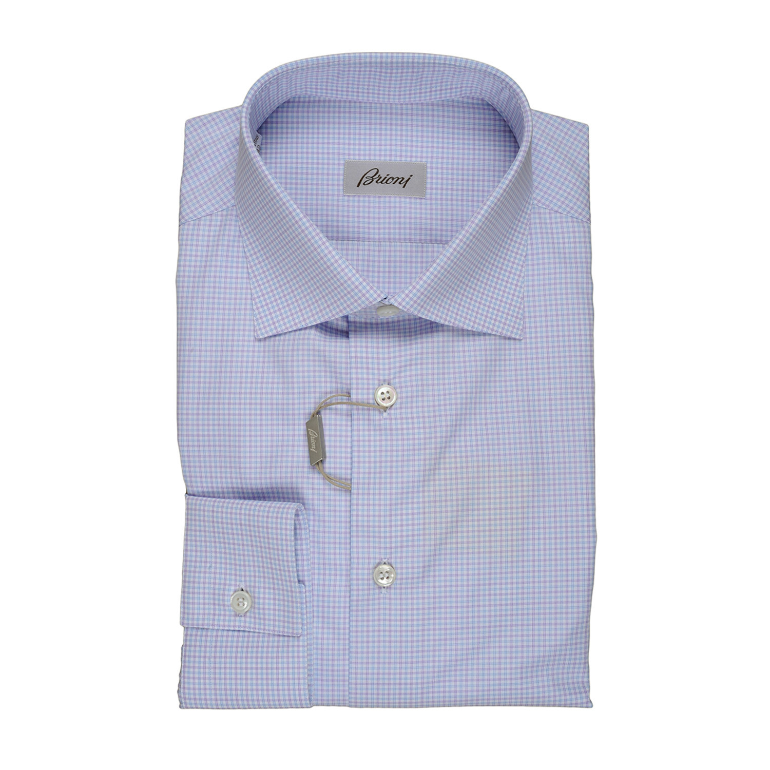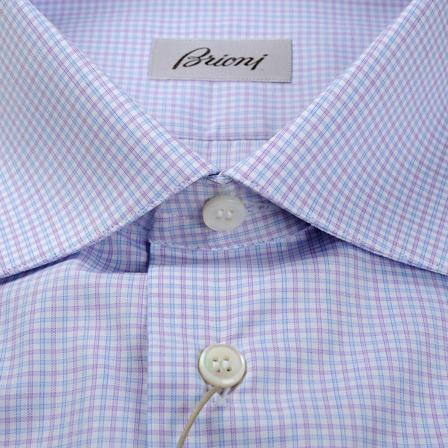 With its svelte tailoring and crisp appeal, this uncomplicated Brioni dress shirt exudes a classic style that transcends time and trend. Boasting contrast buttons, adjustable cuffs, and a spread collar, it's the clear-cut choice for office-wear and dressy occasions alike.
