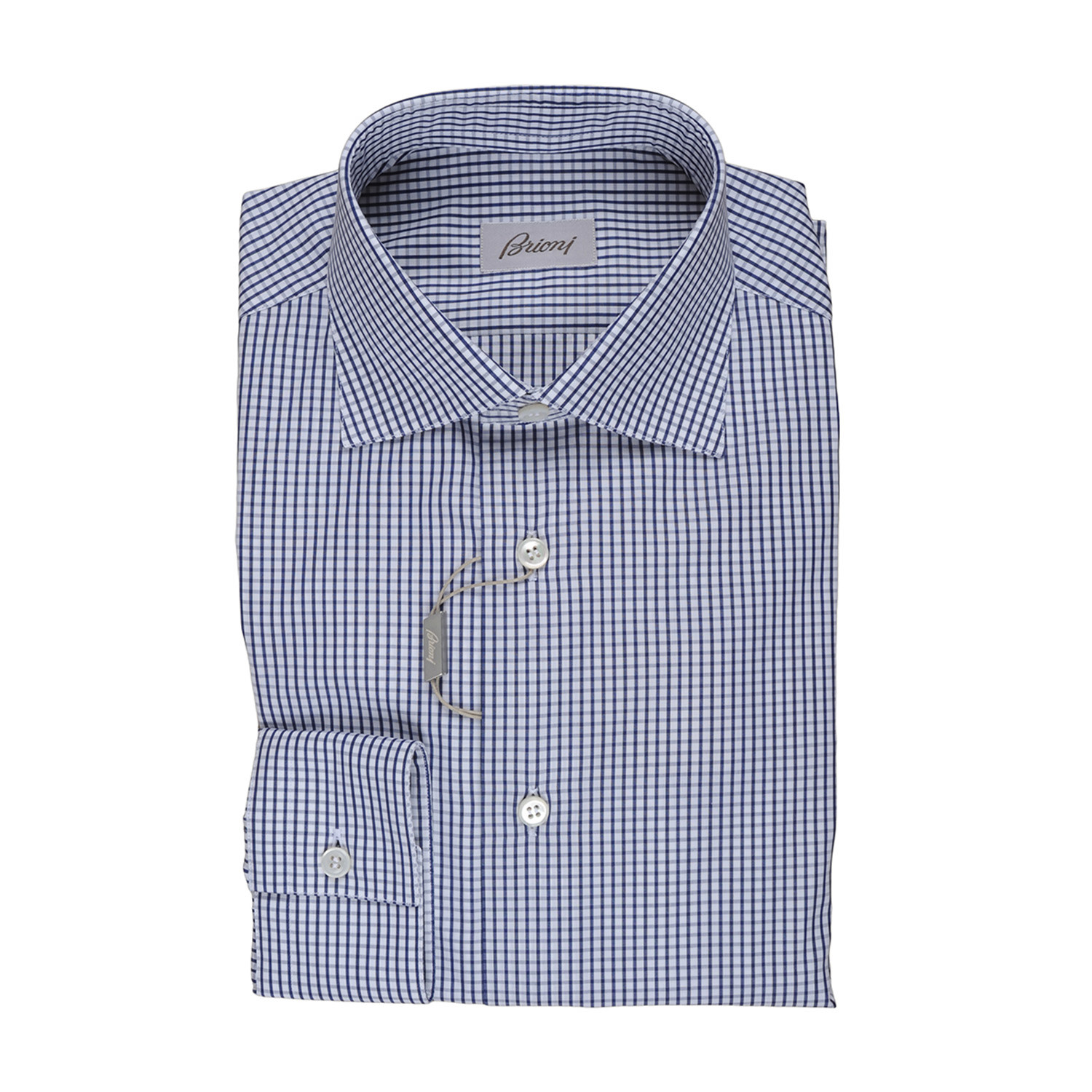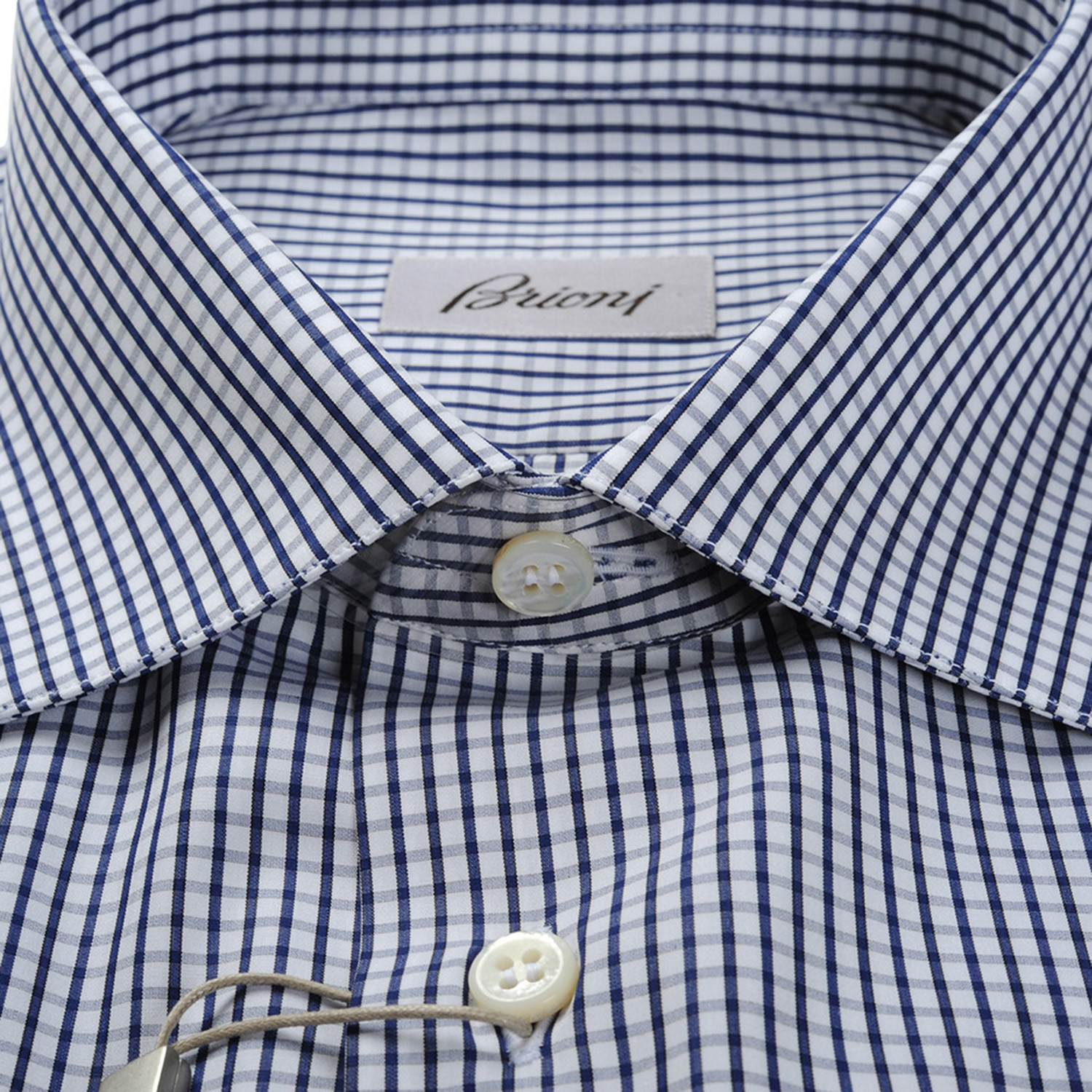With its svelte tailoring and crisp appeal, this uncomplicated Brioni dress shirt exudes a classic style that transcends time and trend. Boasting contrast buttons, adjustable cuffs, and a spread collar, it's the clear-cut choice for office-wear and dressy occasions alike.