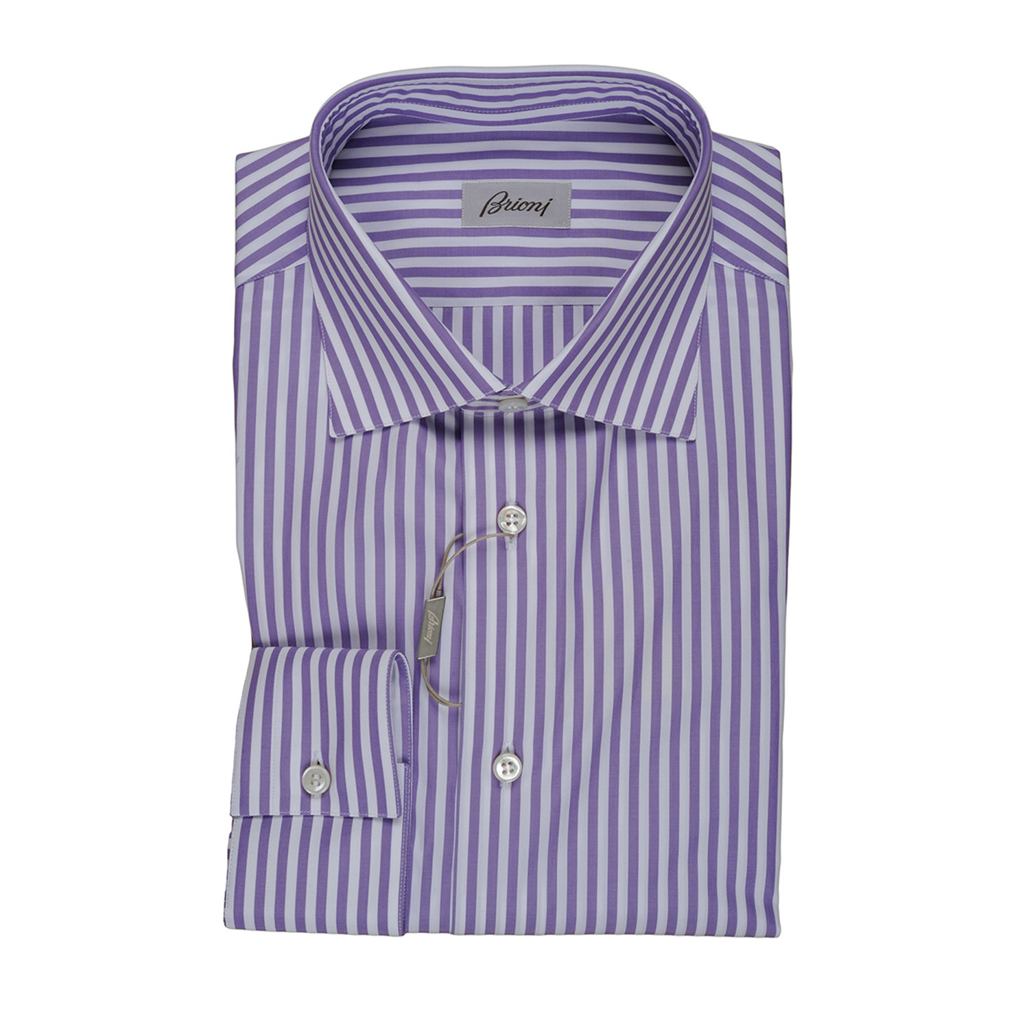 With its svelte tailoring and crisp appeal, this uncomplicated Brioni dress shirt exudes a classic style that transcends time and trend. Boasting contrast buttons, adjustable cuffs, and a spread collar, it's the clear-cut choice for office-wear and dressy occasions alike.