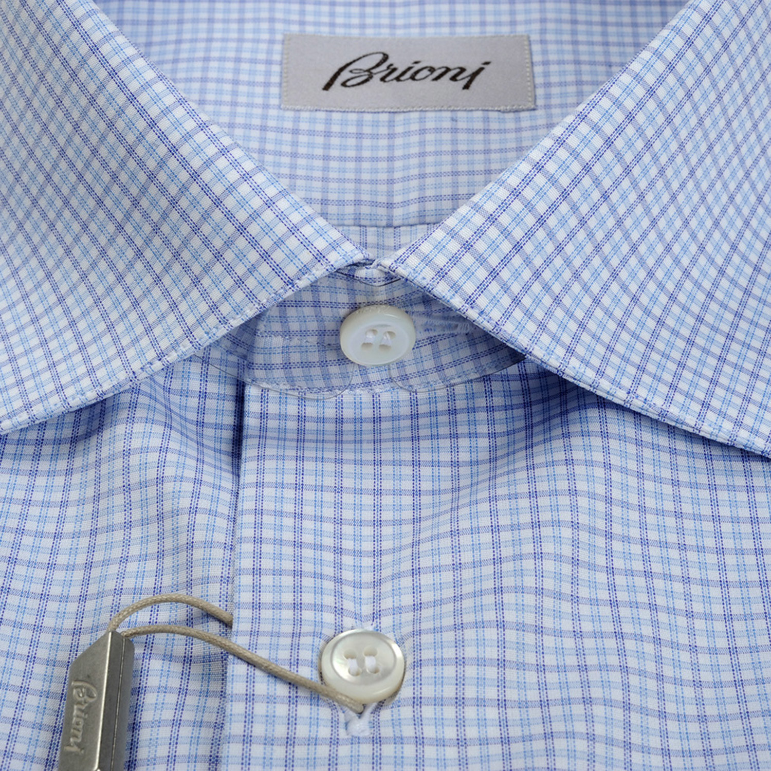 With its svelte tailoring and crisp appeal, this uncomplicated Brioni dress shirt exudes a classic style that transcends time and trend. Boasting contrast buttons, adjustable cuffs, and a spread collar, it's the clear-cut choice for office-wear and dressy occasions alike.
