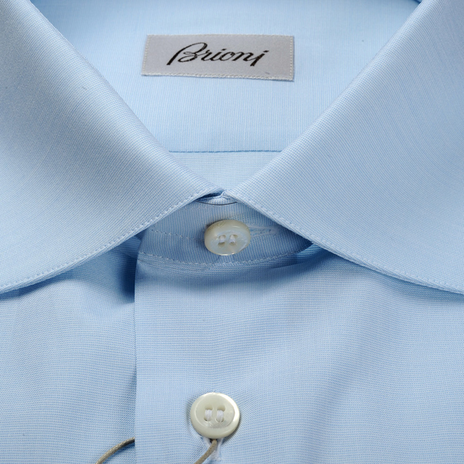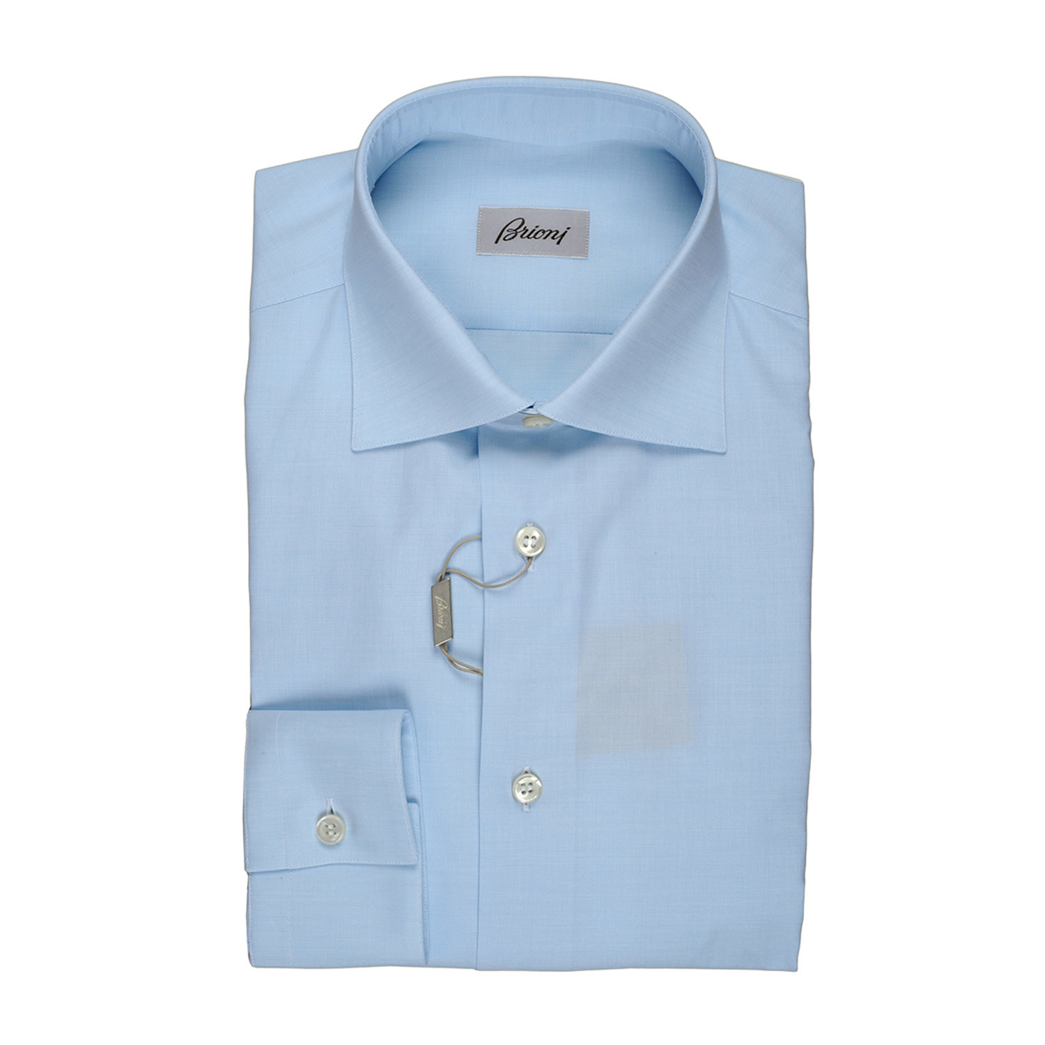 With its svelte tailoring and crisp appeal, this uncomplicated Brioni dress shirt exudes a classic style that transcends time and trend. Boasting contrast buttons, adjustable cuffs, and a spread collar, it's the clear-cut choice for office-wear and dressy occasions alike.