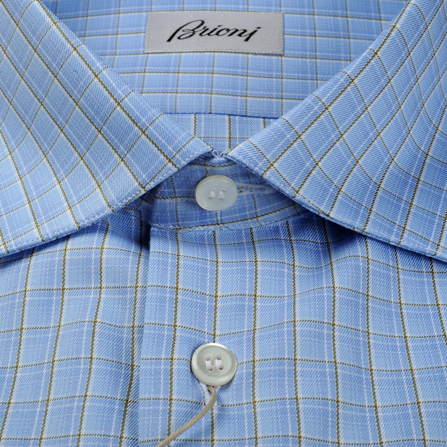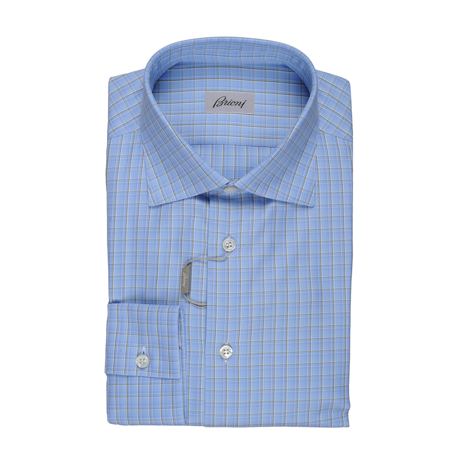 With its svelte tailoring and crisp appeal, this uncomplicated Brioni dress shirt exudes a classic style that transcends time and trend. Boasting contrast buttons, adjustable cuffs, and a spread collar, it's the clear-cut choice for office-wear and dressy occasions alike.
