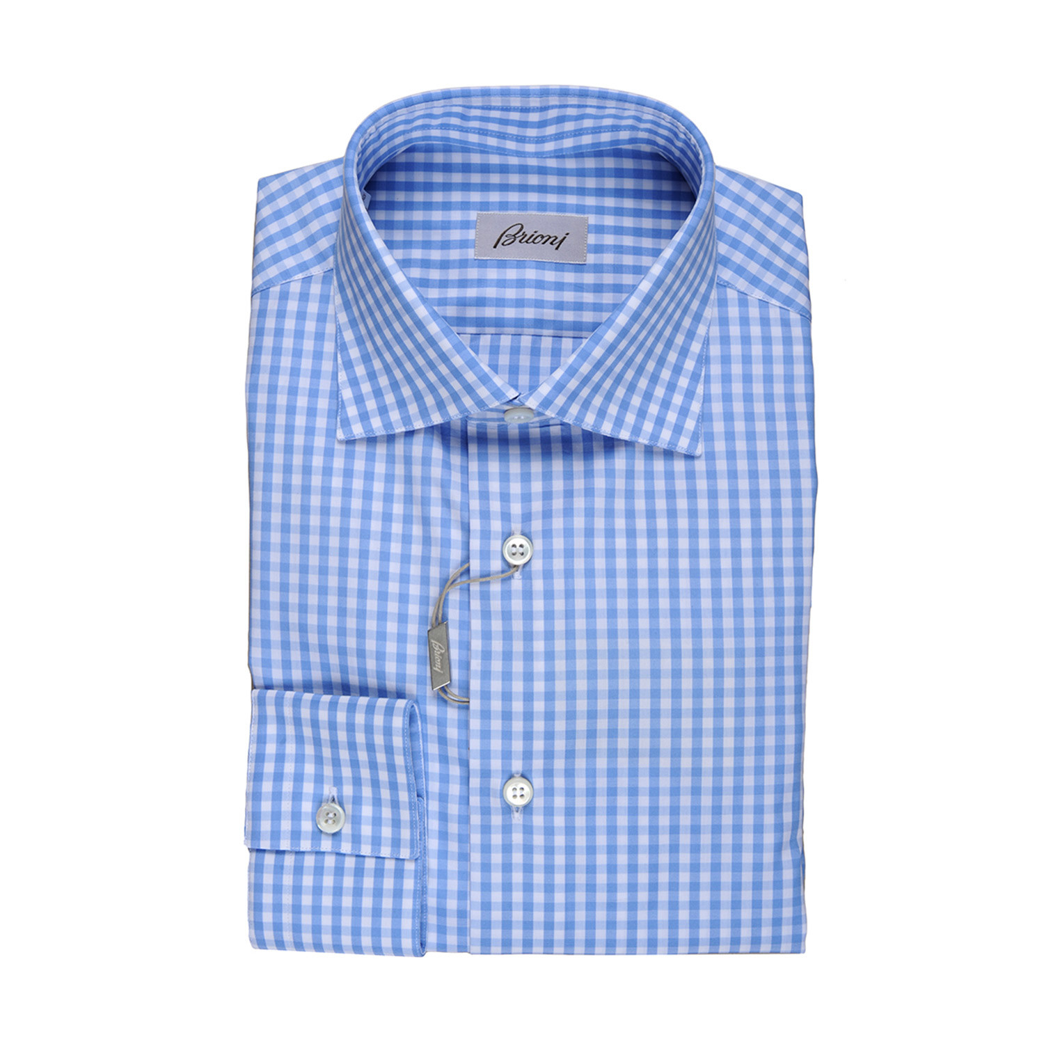 With its svelte tailoring and crisp appeal, this uncomplicated Brioni dress shirt exudes a classic style that transcends time and trend. Boasting contrast buttons, adjustable cuffs, and a spread collar, it's the clear-cut choice for office-wear and dressy occasions alike.