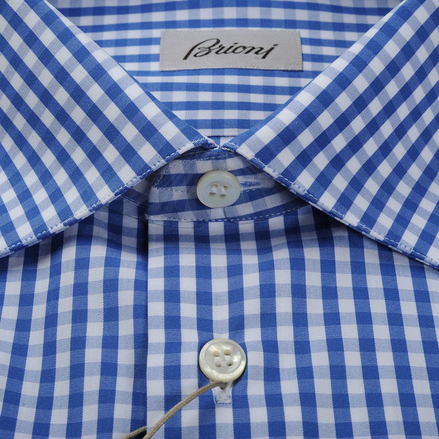 With its svelte tailoring and crisp appeal, this uncomplicated Brioni dress shirt exudes a classic style that transcends time and trend. Boasting contrast buttons, adjustable cuffs, and a spread collar, it's the clear-cut choice for office-wear and dressy occasions alike.