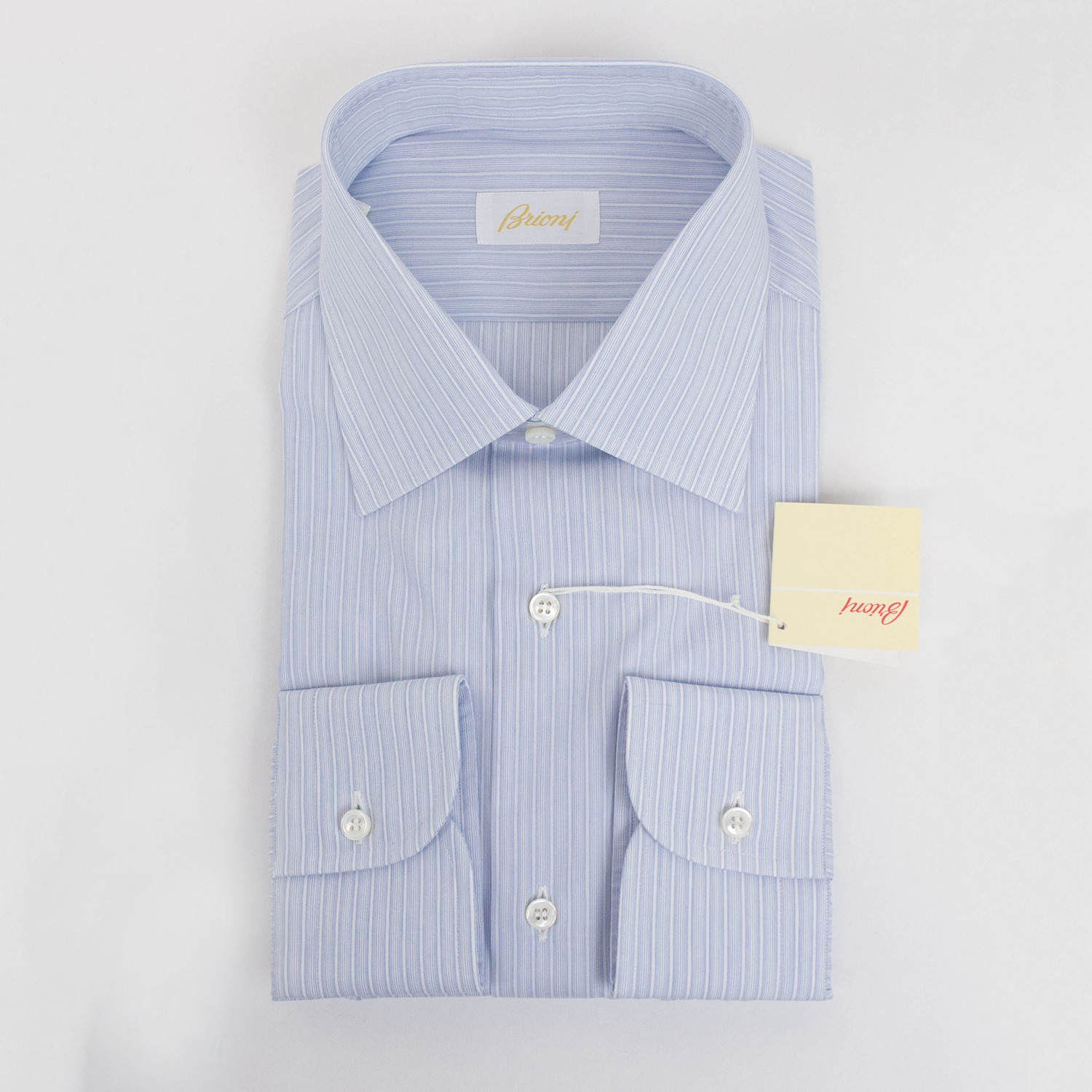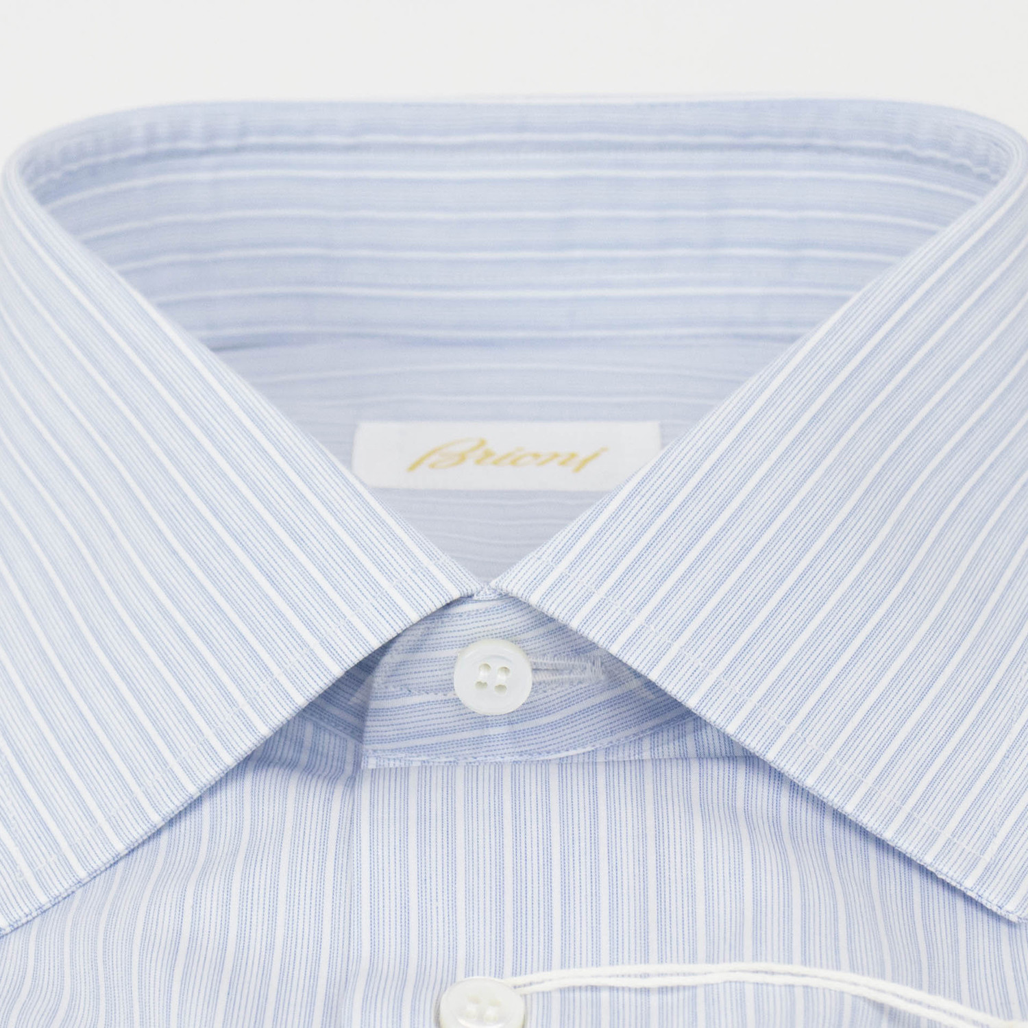Striped Cotton Slim Fit Dress Shirt // Blue