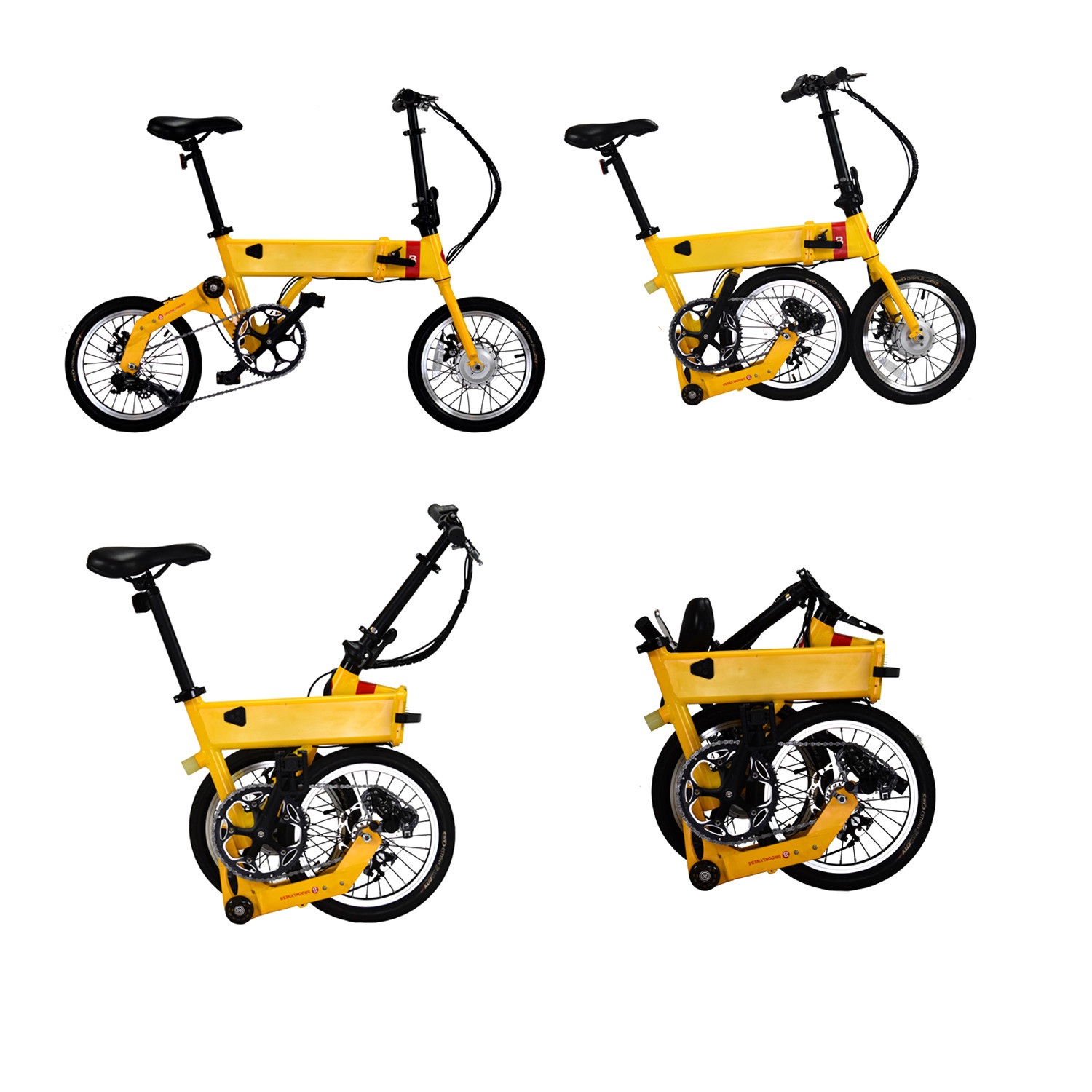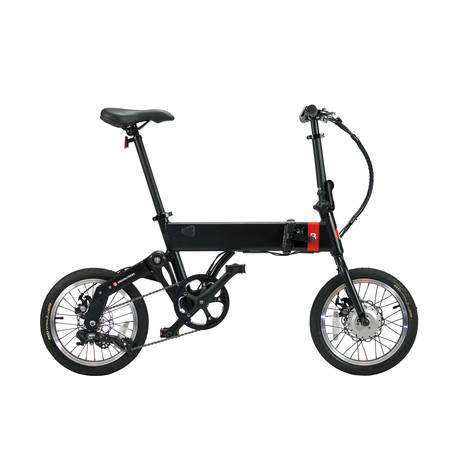 The powerful 250 watt motor will help you climb steep hills and easily and cruise along with less effort. Once you start to pedal, you feel an amazing force help you move forward, the motor kicks in you go faster and farther without breaking a sweat. This bike is defined as a "pedalec," which means that it assists while pedaling (there is no throttle) and max speed for the electric motor is restricted to 15.5 mph or 25km/h. Coming in at only 26 lbs.(12Kg), the CMYK 4.0 is very easy to transport. The handlebars fold down in one motion, and the seat easily lowers, making the bike a compact package to take on the train, put in your car or stash under your desk.