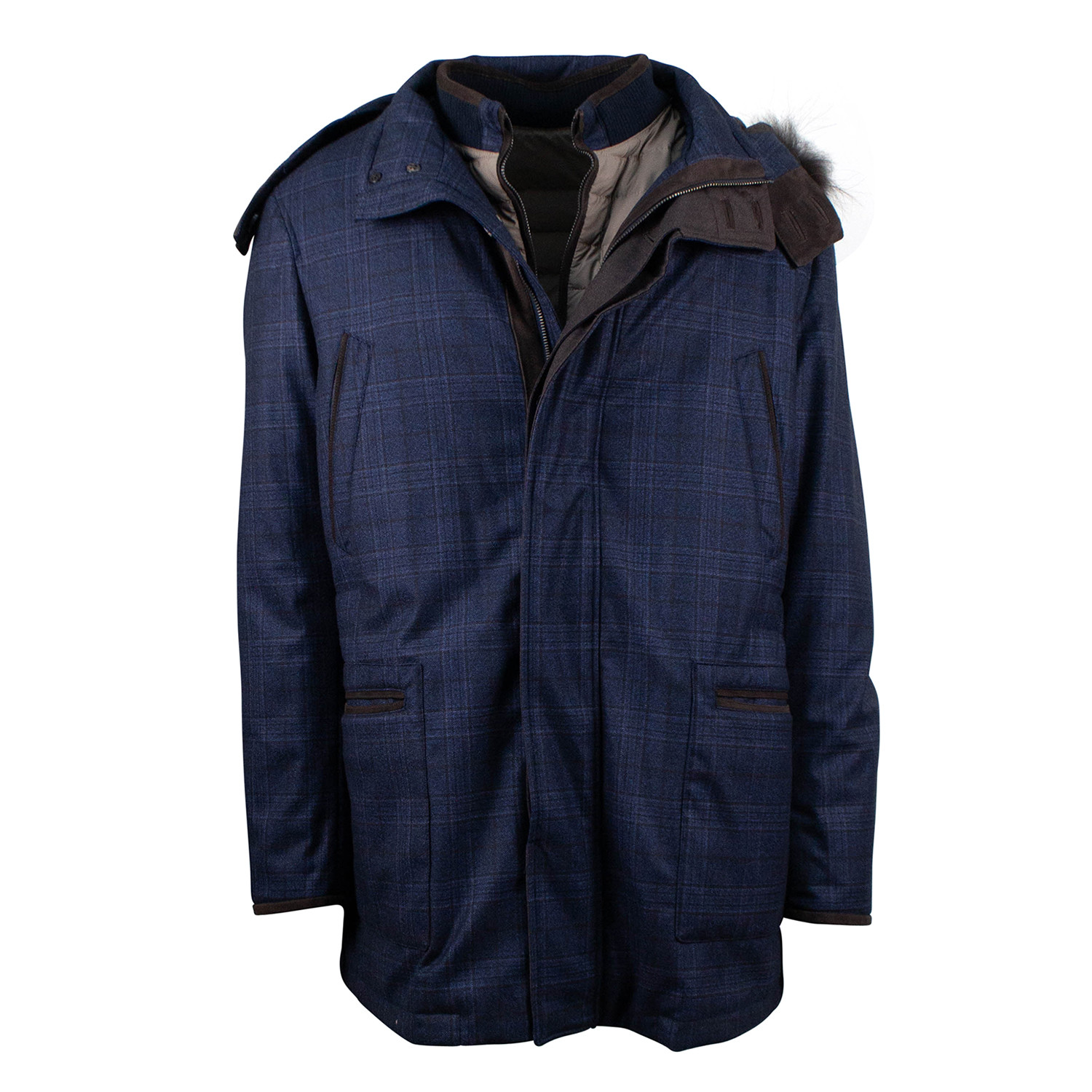 Pal Zileri // Plaid Wool Parka Coat Jacket + Vest // Blue