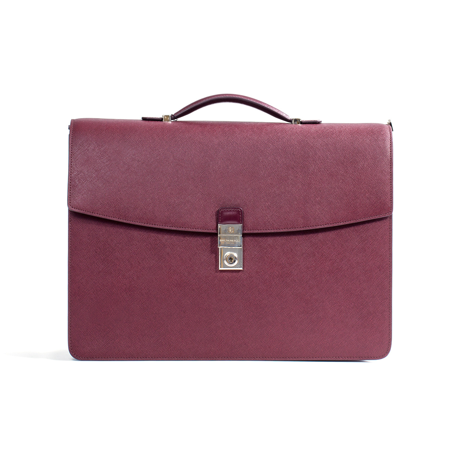 This Bruno Magli document case is a sleek piece to add to your collection. It has the ability to fit everything from a tablet to work files with its spacious pockets and pouches. It is offered in a variety of colors with brass hardware to complete the look.