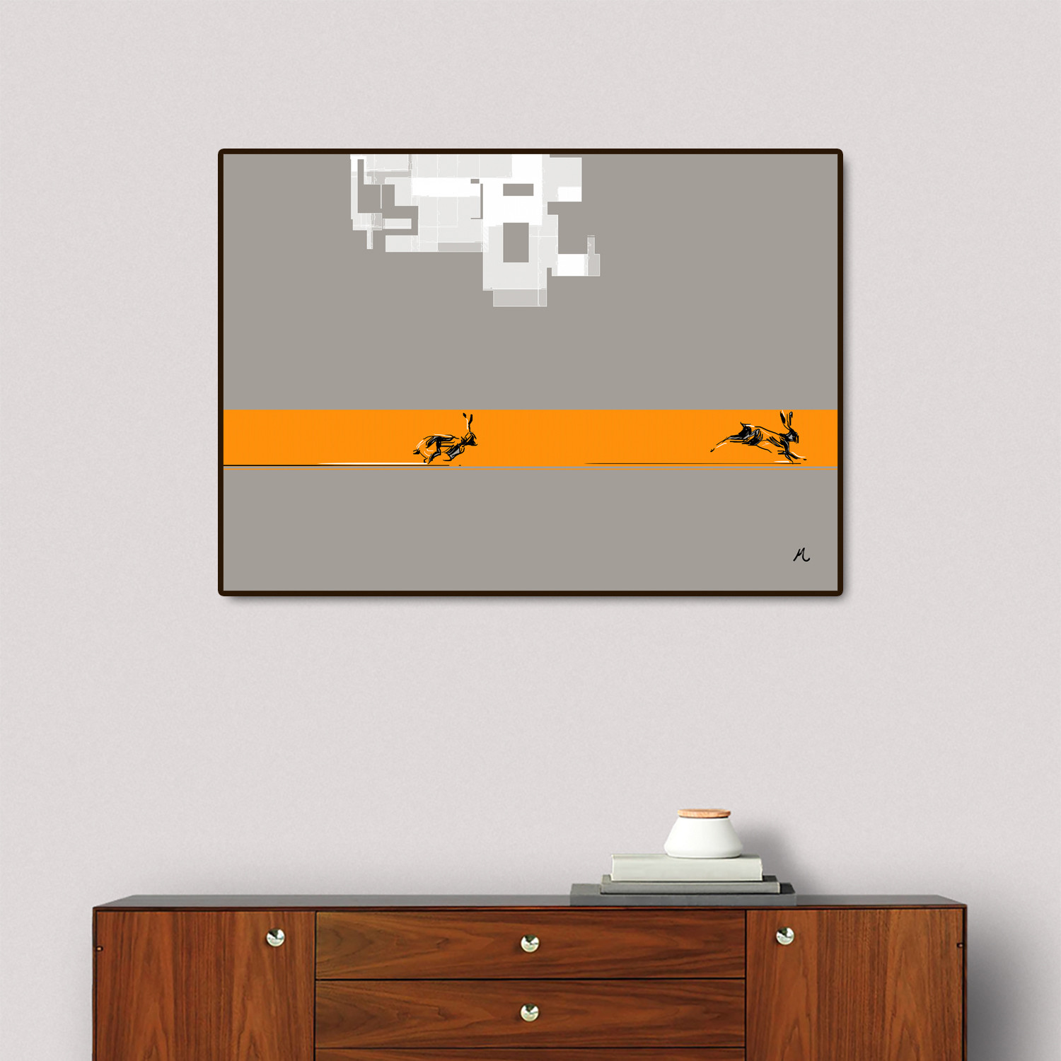 This contemporary art blocks was made from an archival giclee print and mounted to 3/8" inch masonite board, with a ready to hang, low profile modern wooden frame. It's numbered and signed by the artist, which further helps Runni stand out from the competition.