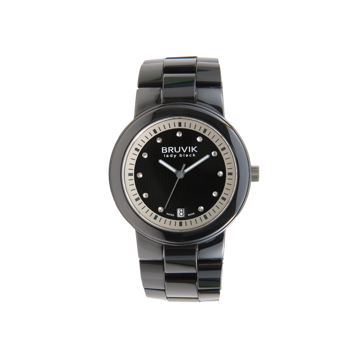 The Bruvik Black & White Collection is inspired by the beauty of the arctic, the white polar snow and the majestic glow of northern lights. As the Bruvik designers describe it, "the Black & White Collection brings Norwegian nature into urban life." Encased and held together in by a high-tech ceramic case and bracelet, this time piece features 11 genuine diamonds on the dial (indicating hours), high quality Swiss-made movement and a clean, polished look. It's classic and sharp, but most of all—it's a distinctly Norwegian time piece.