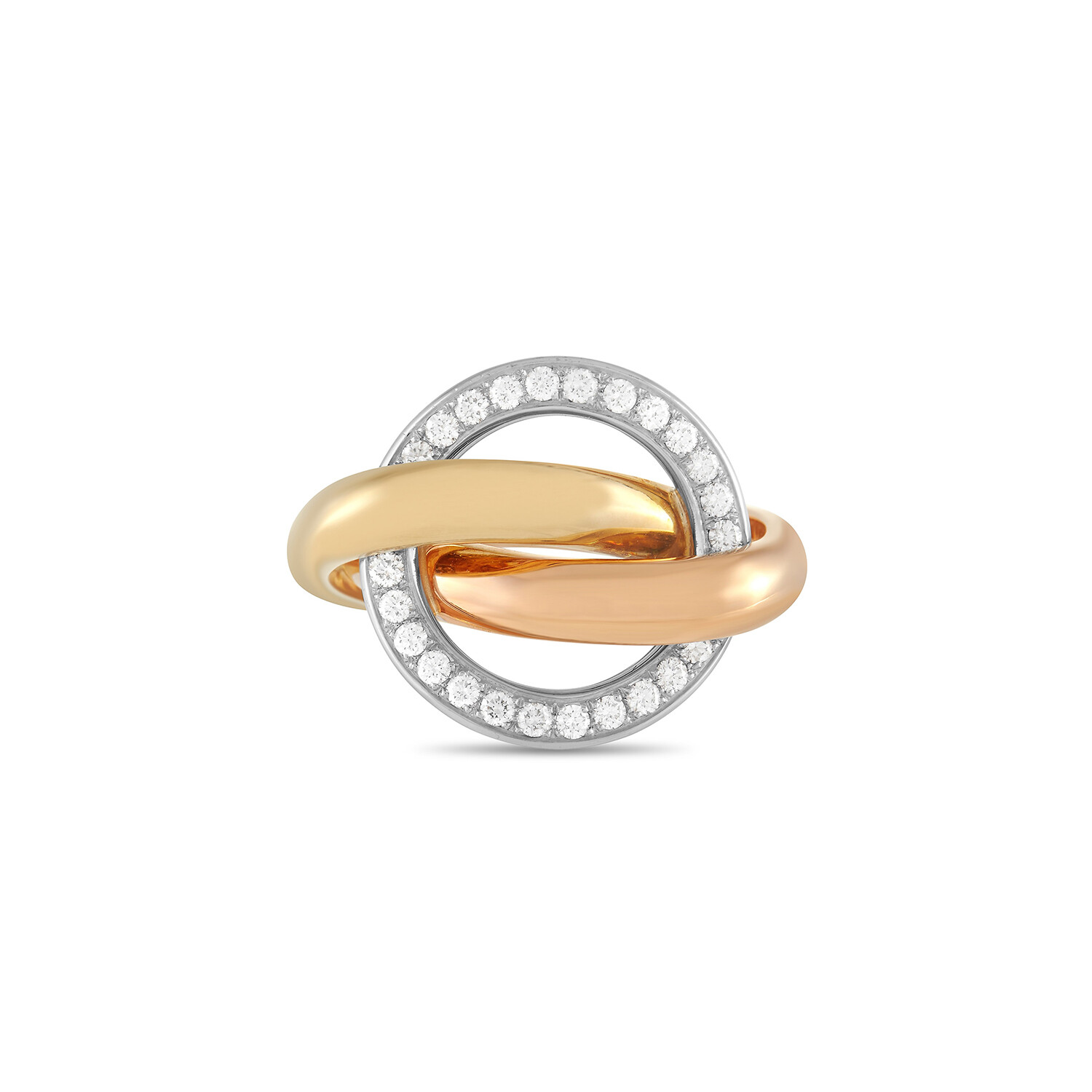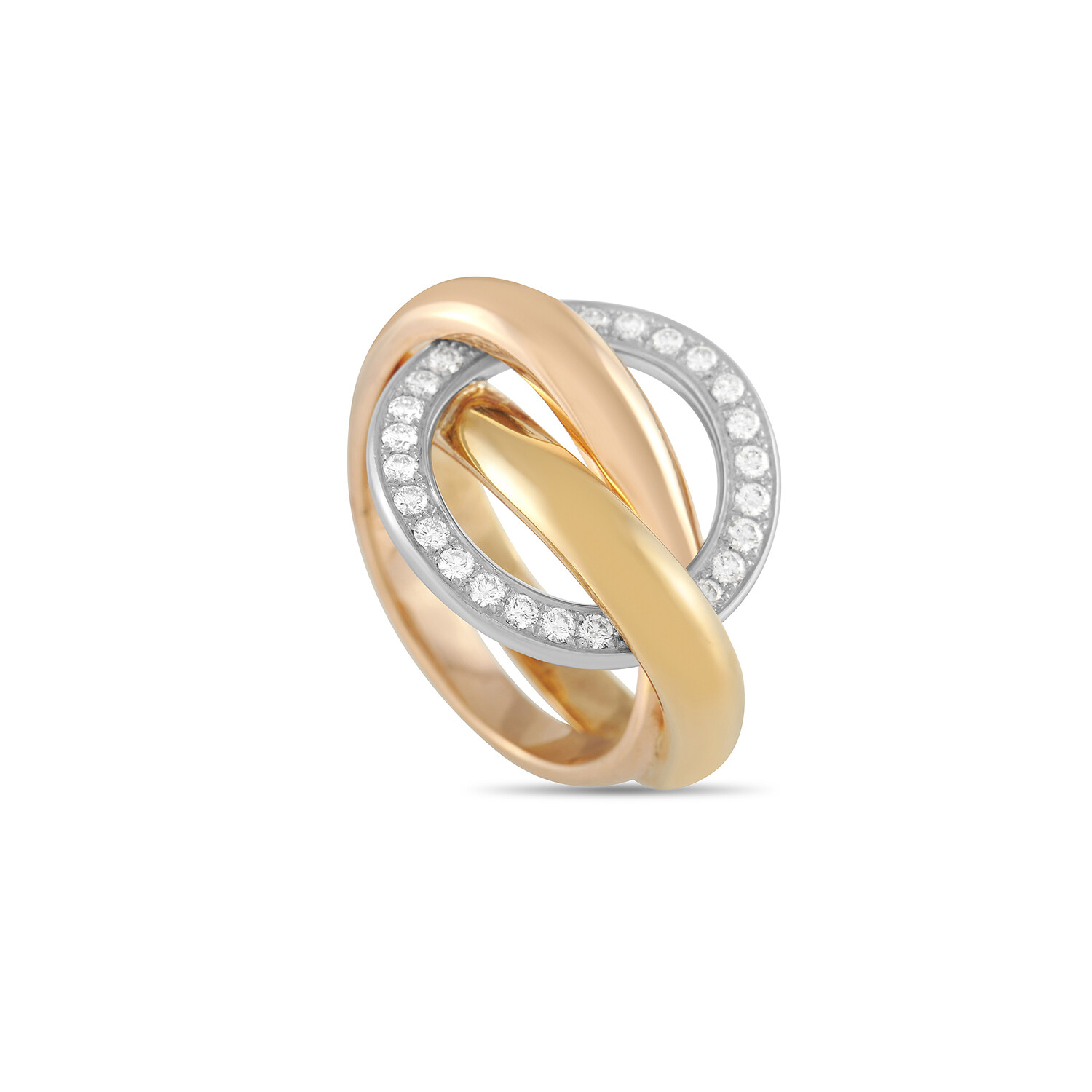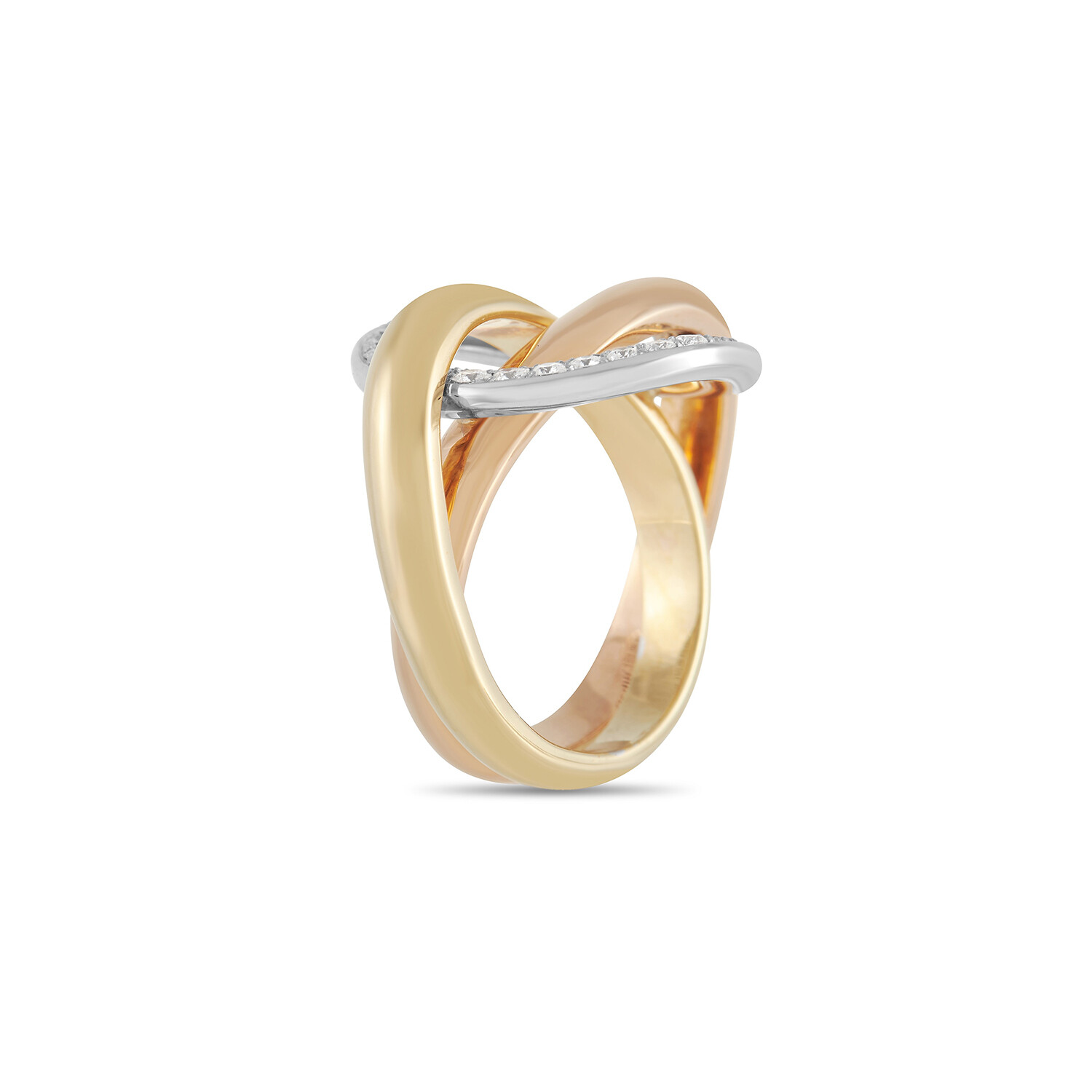 Cartier // Trinity Crash 18K Yellow Gold + 18K White Gold + 18K Rose Gold Diamond Ring // Ring Size: 5.5 // Estate