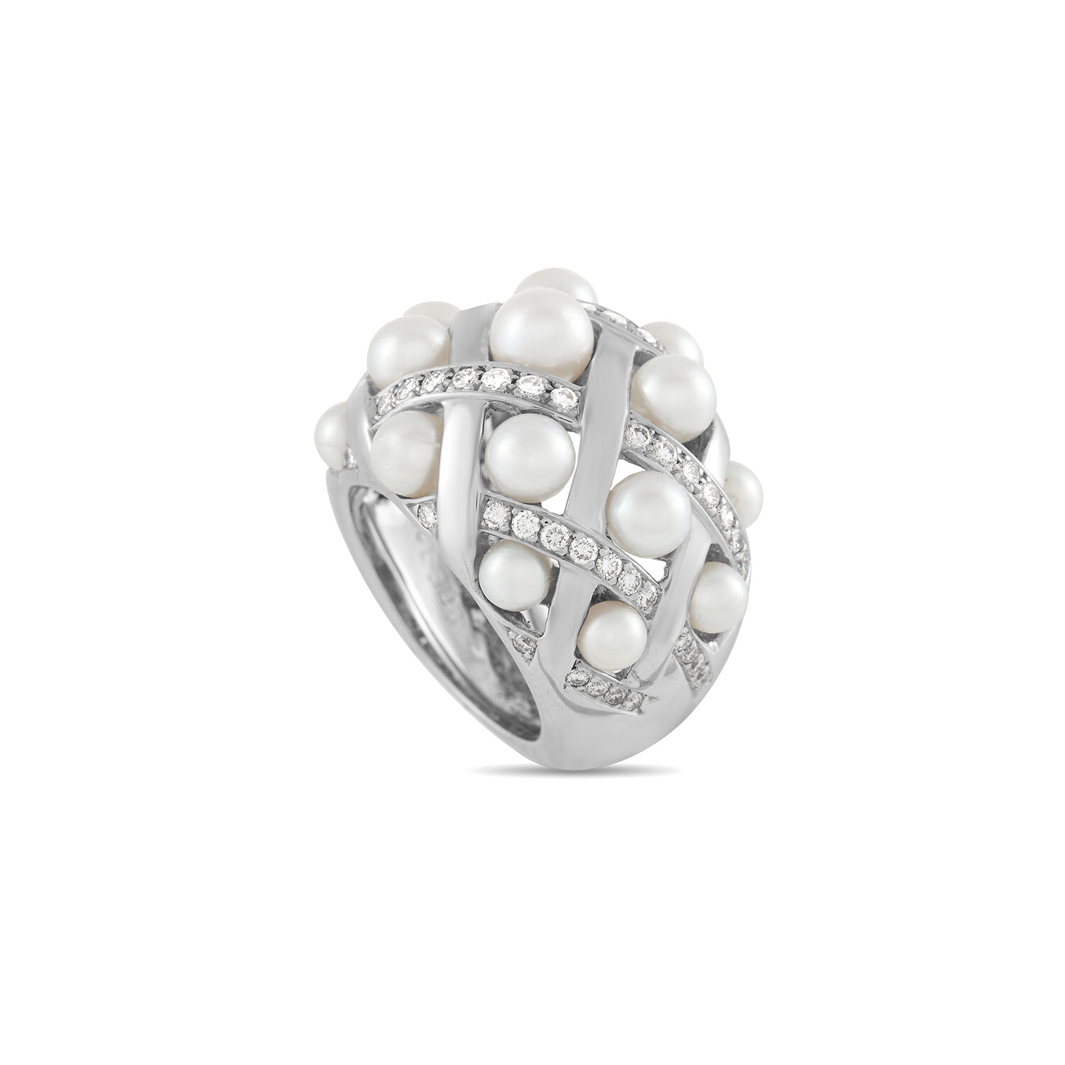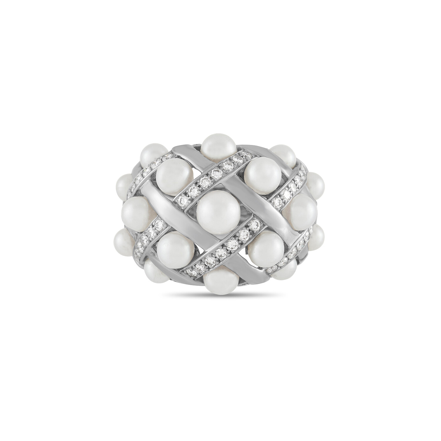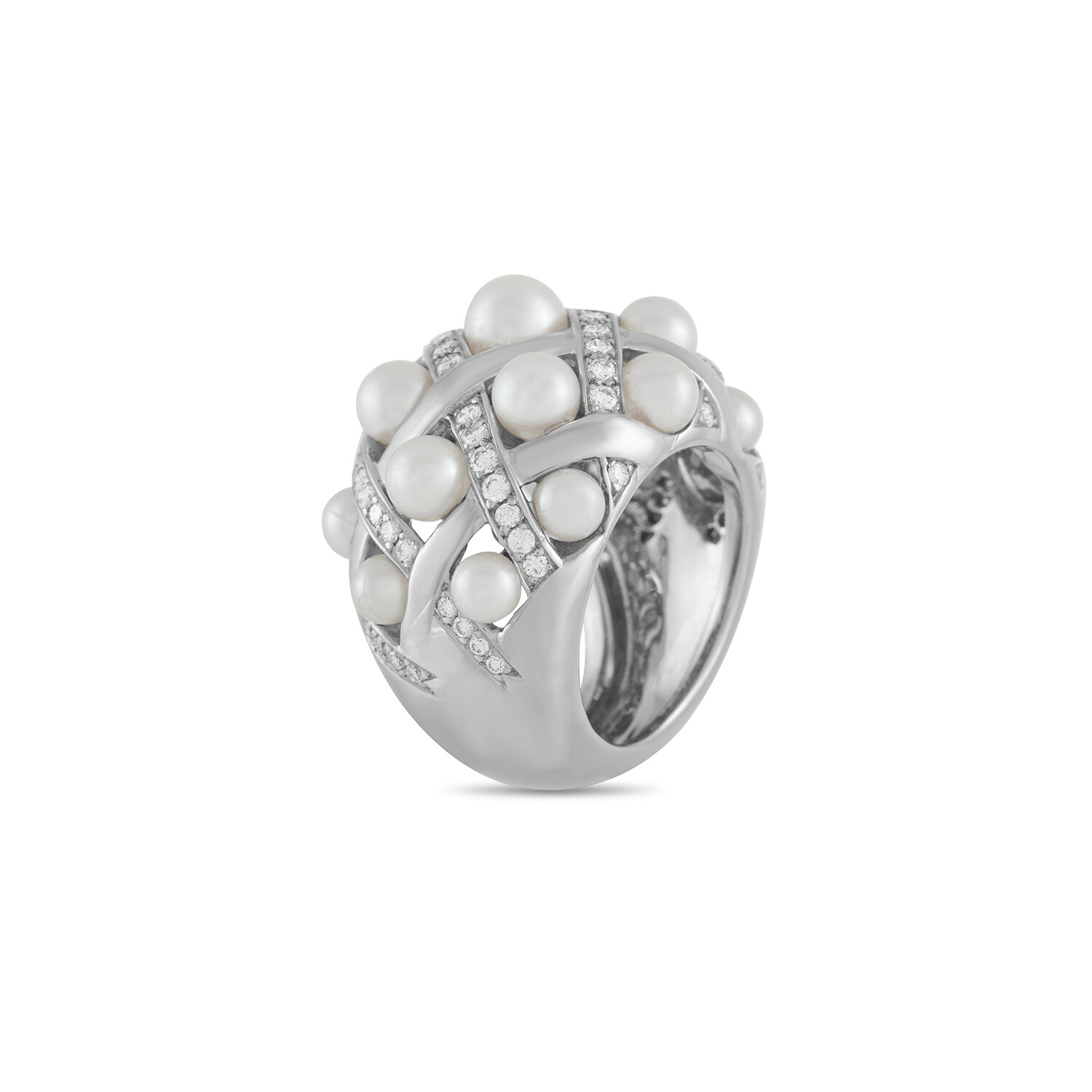 Chanel // Matelasse Baroque 18K White Gold Diamond + Pearl Ring // Ring Size: 5.25 // Estate