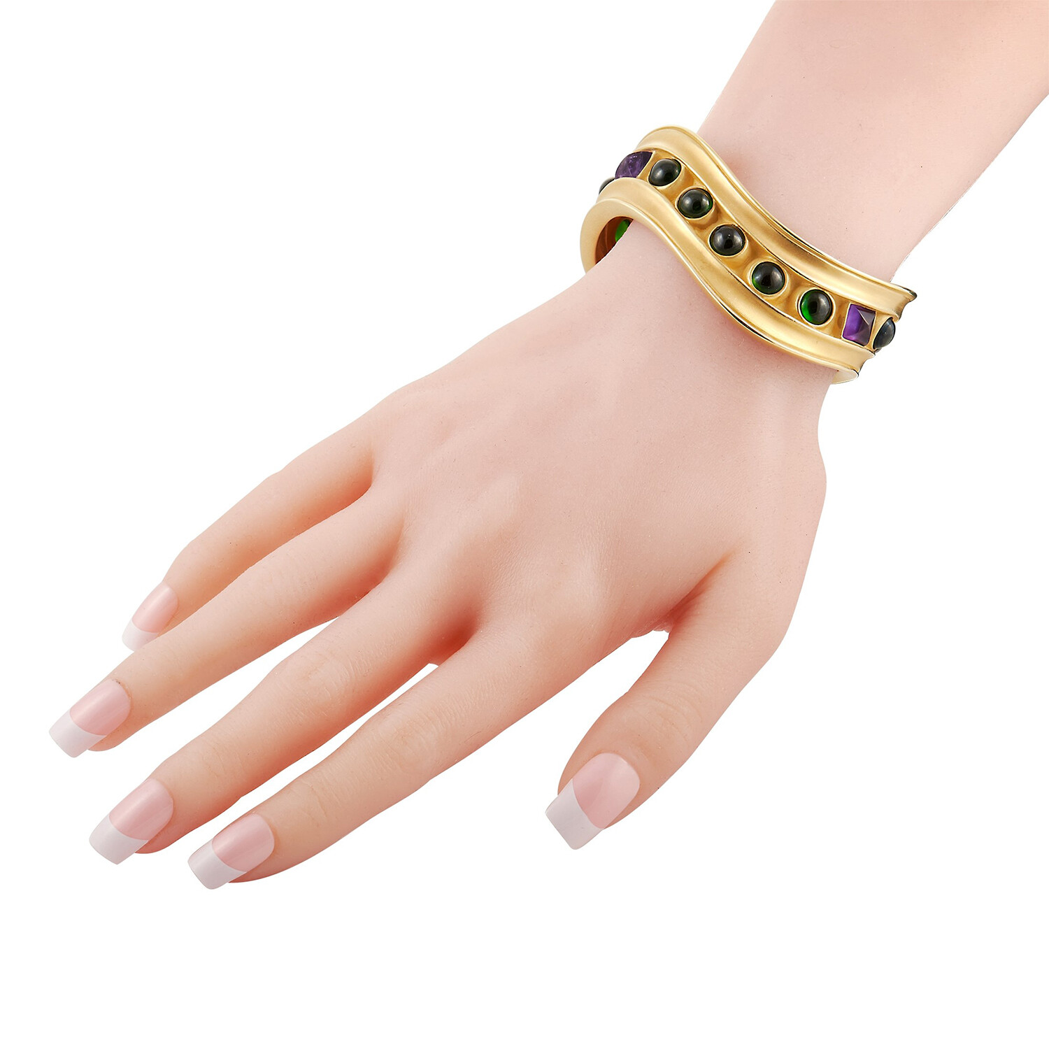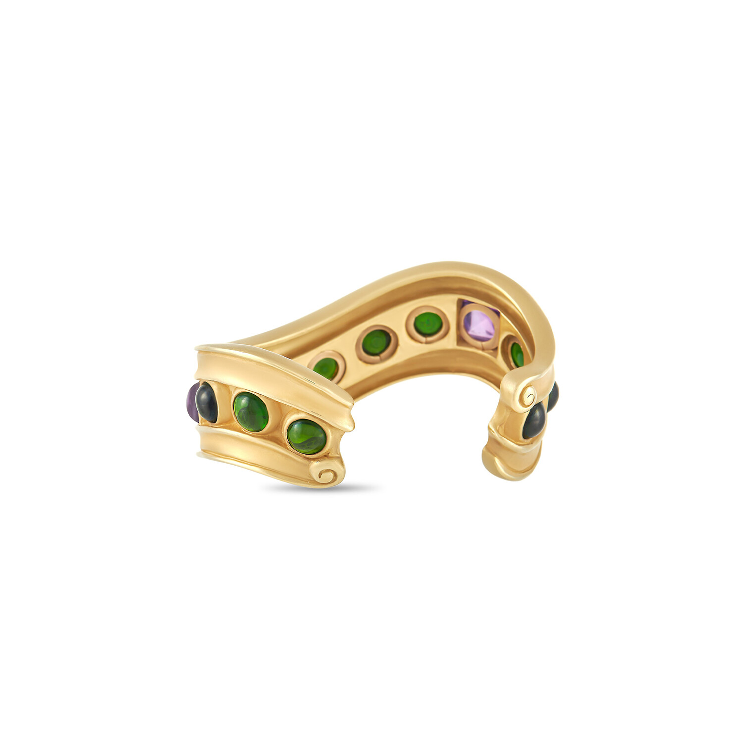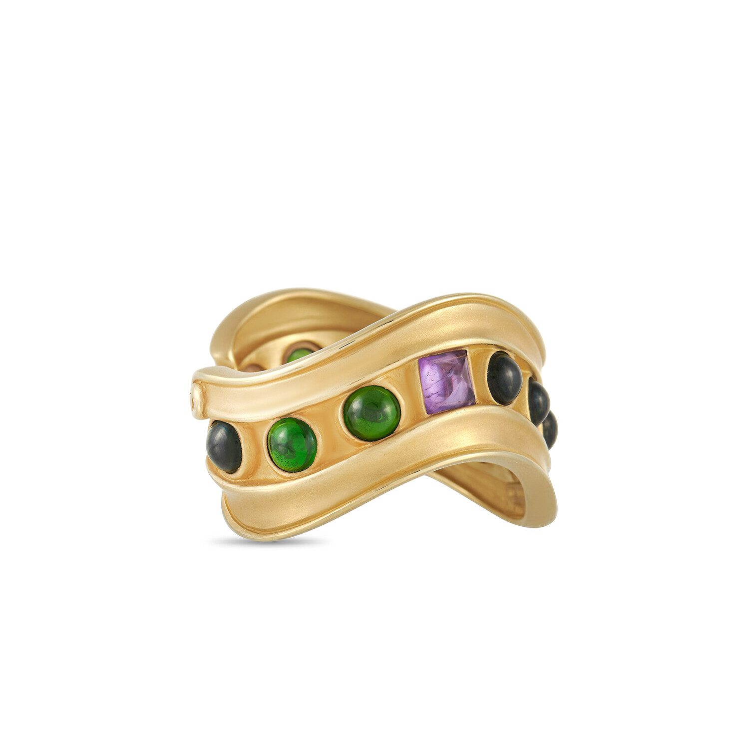 Kieselstein-Cord // 18K Yellow Gold Tourmaline + Amethyst Open Bangle Bracelet // 6.3" // Estate