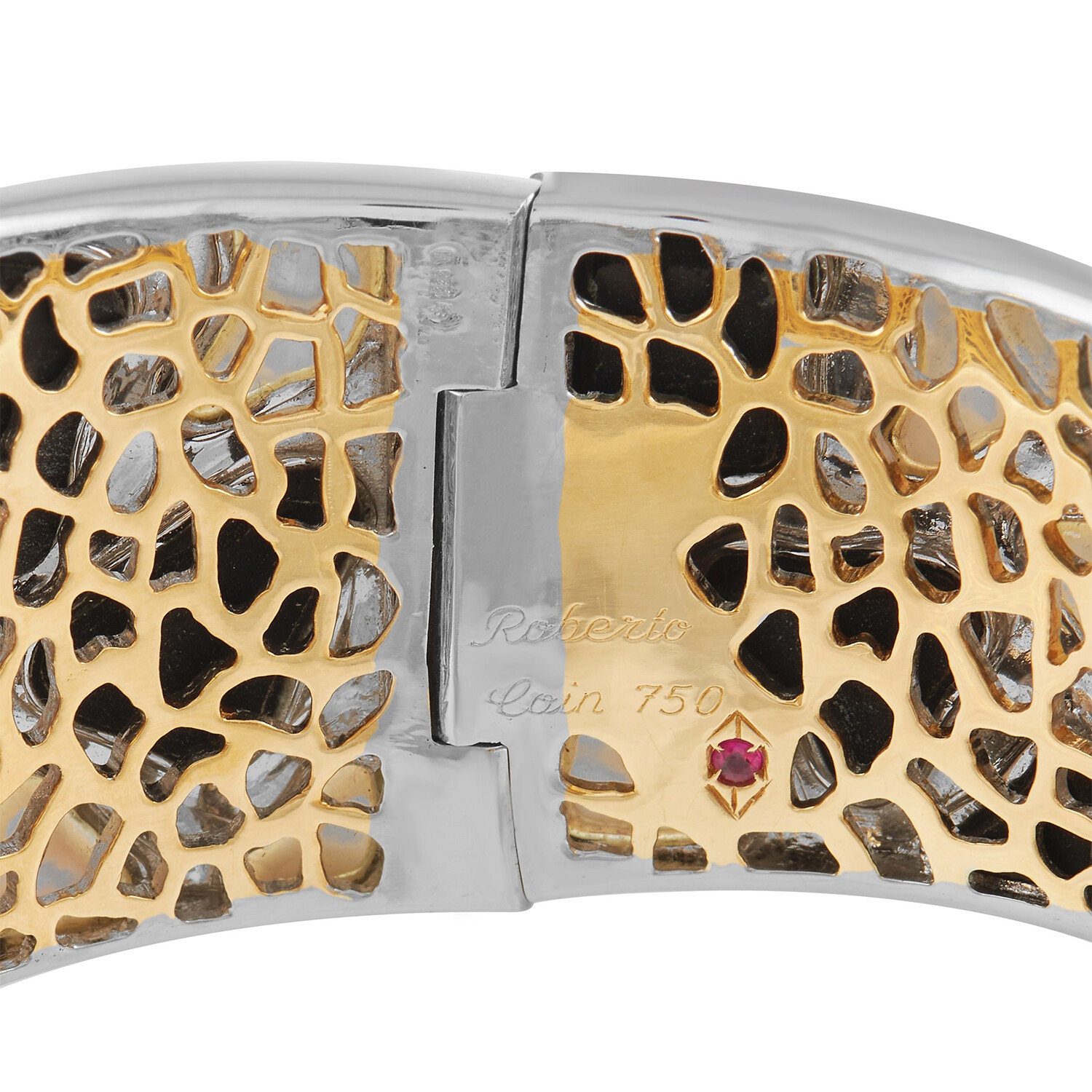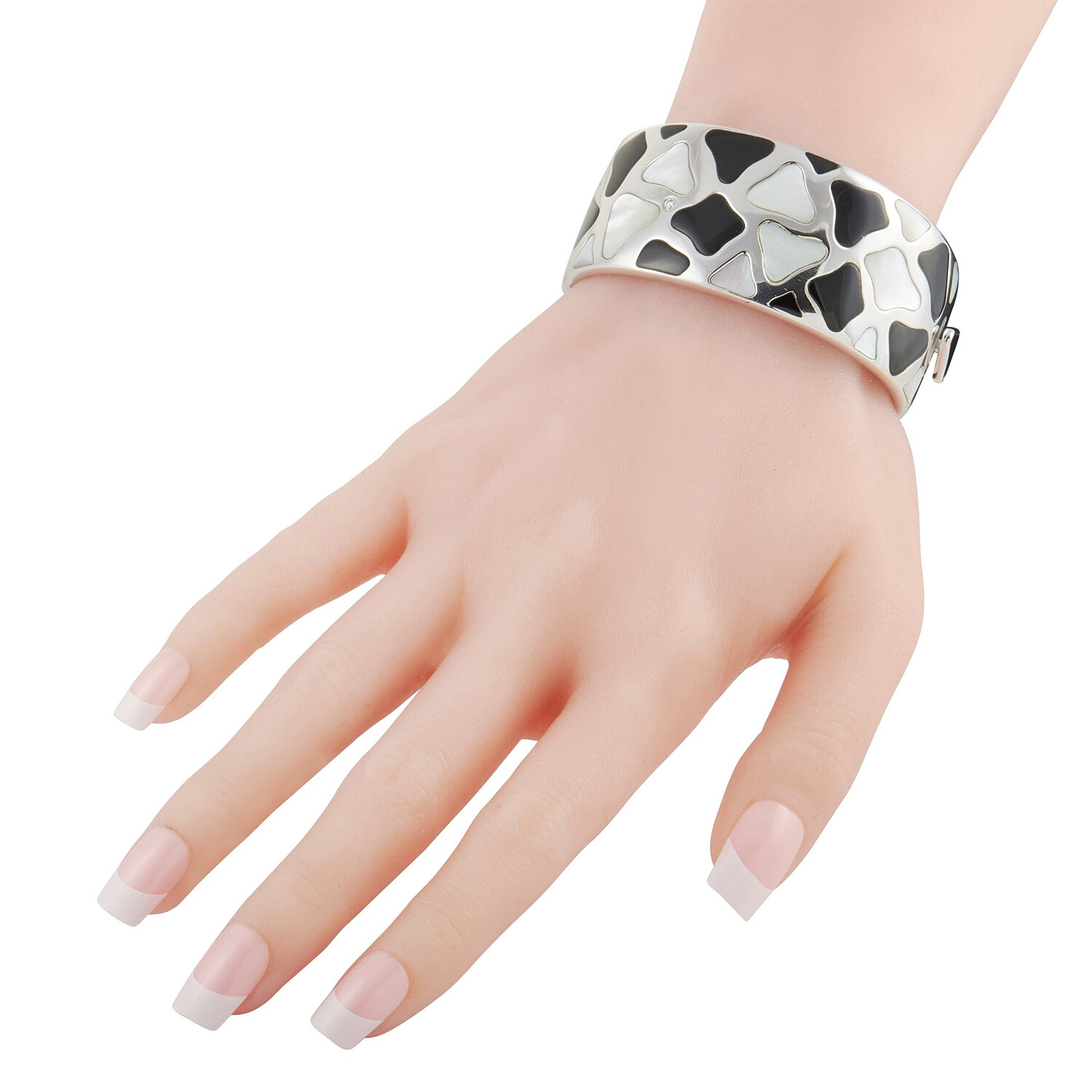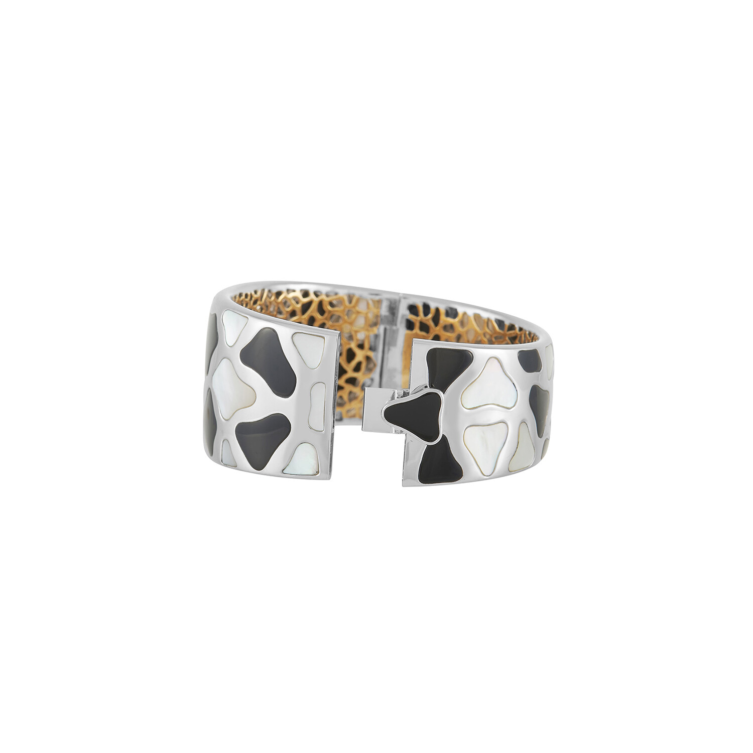 Roberto Coin // 18K Yellow Gold + 18K White Gold Mother of Pearl + Onyx Giraffe Bangle Bracelet // 6.7" // Estate
