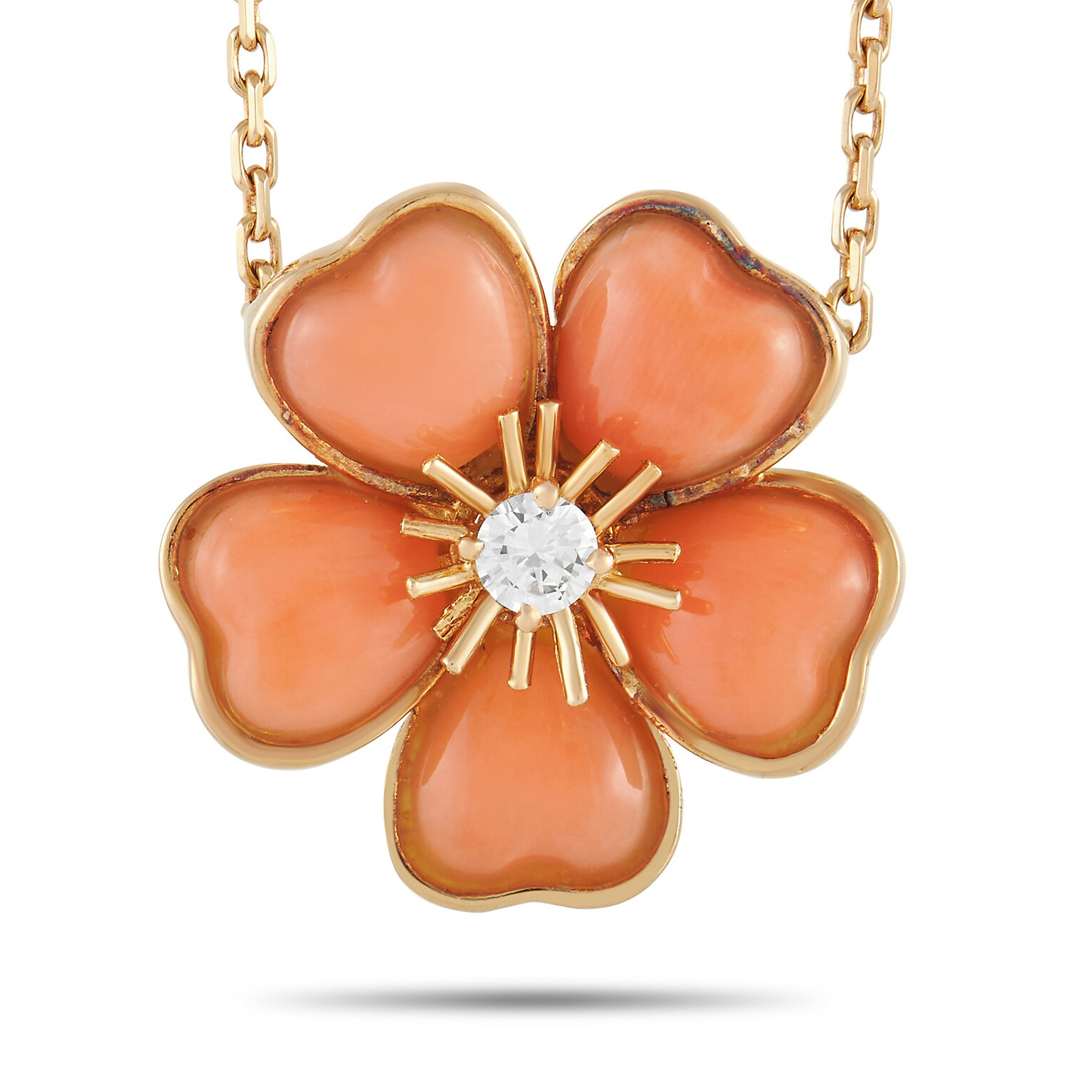 Van Cleef & Arpels // 18K Yellow Gold Diamond + Coral Flower Necklace // 16" //Estate