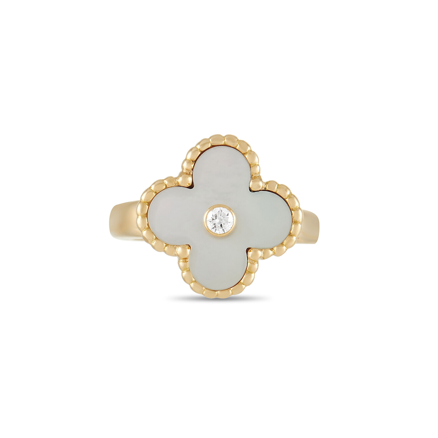 Van Cleef & Arpels // Alhambra 18K Yellow Gold Diamond + Mother of Pearl Ring // Ring Size: 4.25 // Estate