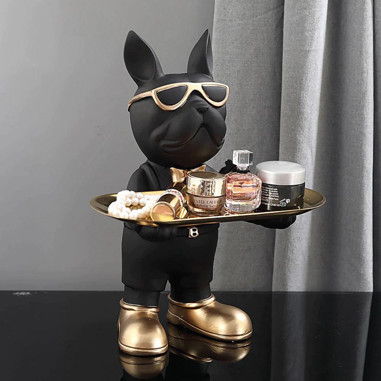 Fun, quirky, and absolutely over the top – these bulldog catchall trays set a peppy mood in the entryway, add to the pizzazz of your coffee table, and remind you to relax at the dressing table. Made from resin in a combination of black and gold, the bulldogs are also an eye-catching gift for a dog lover or anyone who appreciates accessories with a sense of humor.