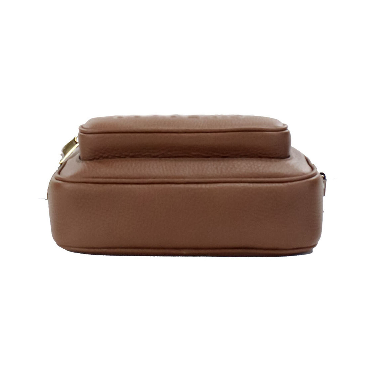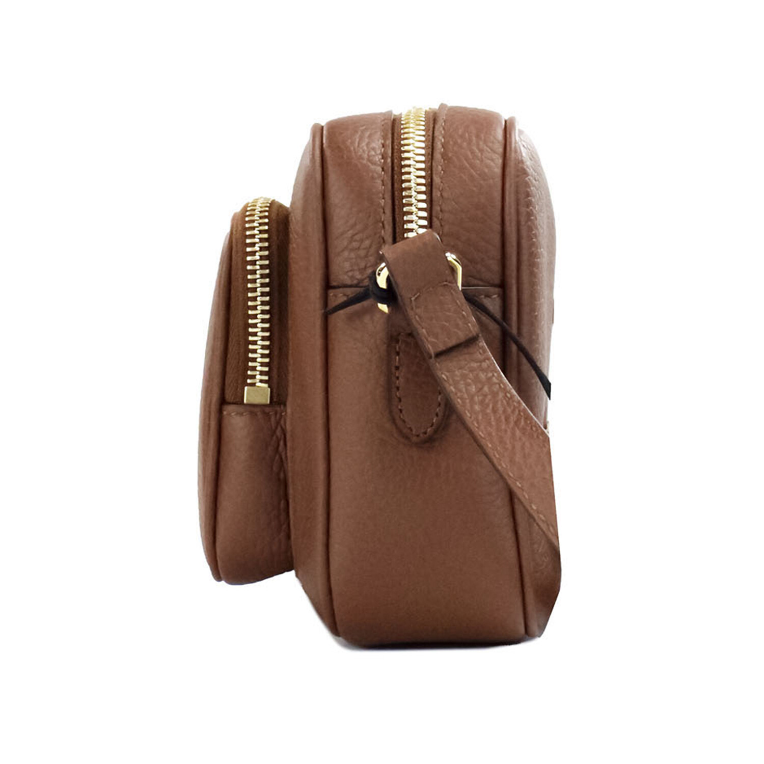 Small Branded Tan Brown Grainy Leather Camera Crossbody Handbag