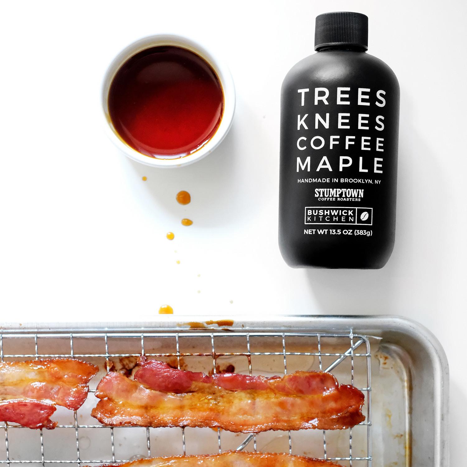 Trees Knees Coffee Maple Syrup is made with rich maple syrup from the Catskill Mountains infused with Stumptown Coffee Roasters Hair Bender Blend, creating multidimensional tasting notes of dark chocolate, cherry, toffee, and fudge. Pour it over a bowl of chocolate ice cream, in your favorite cocktail, or on a fluffy stack of pancakes.